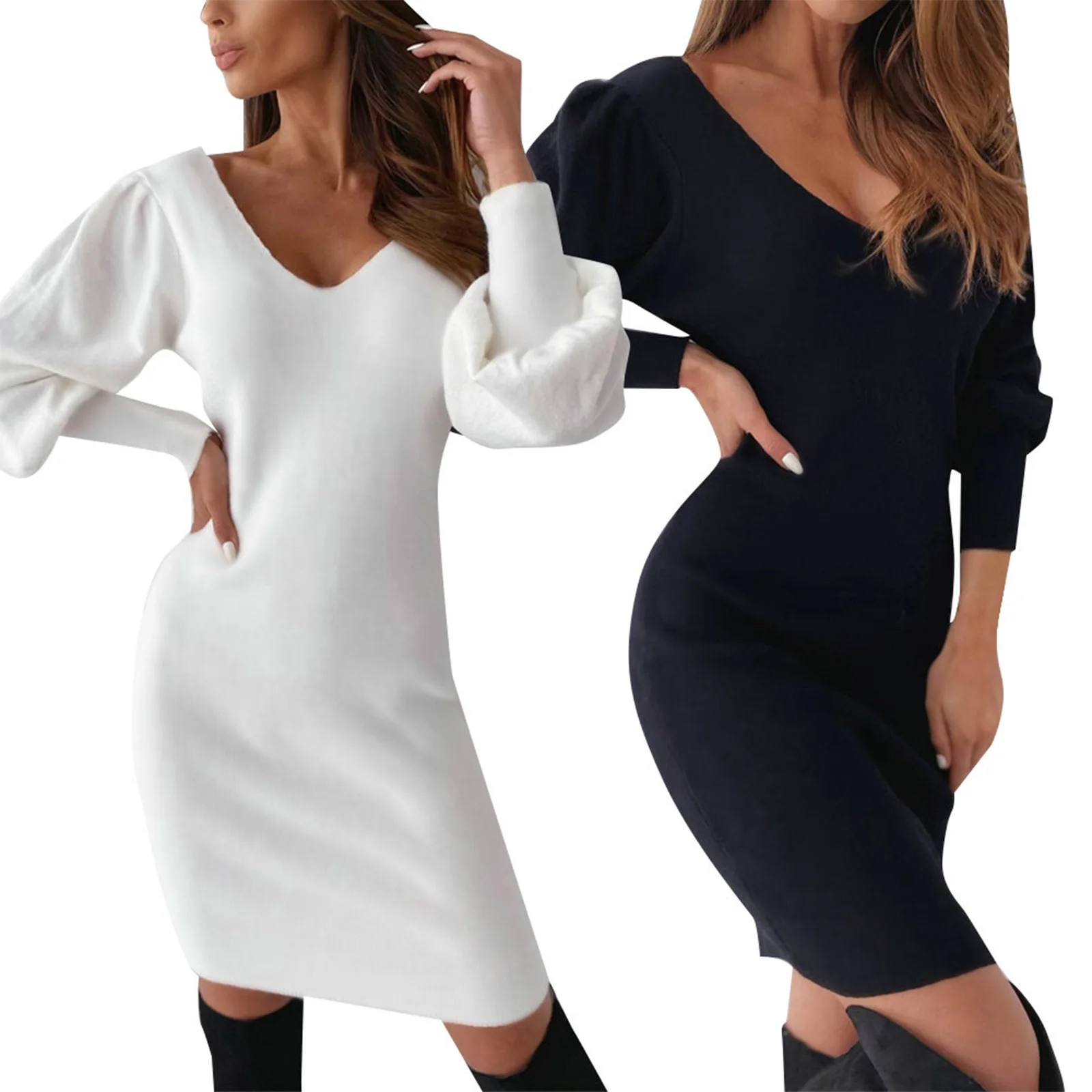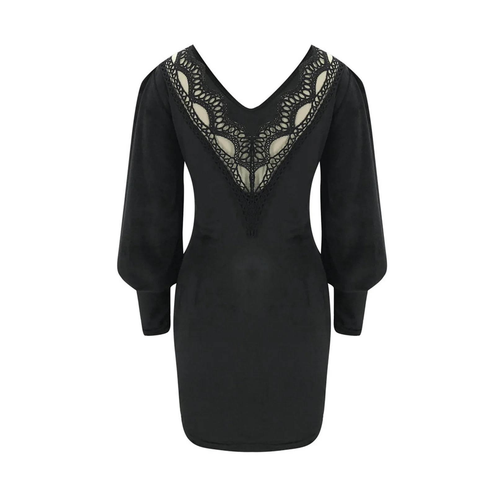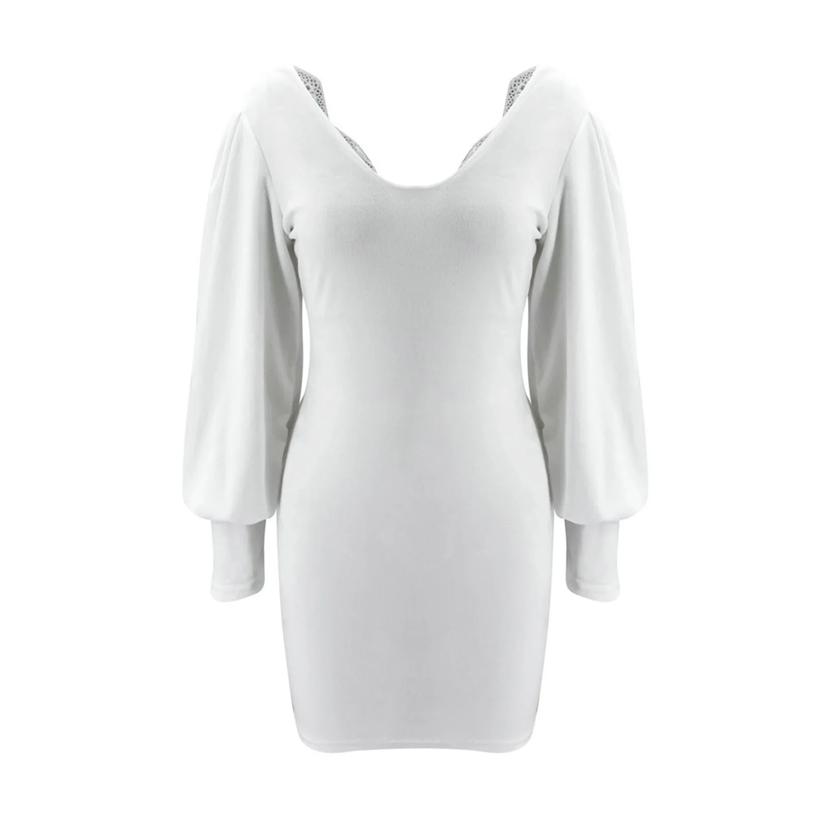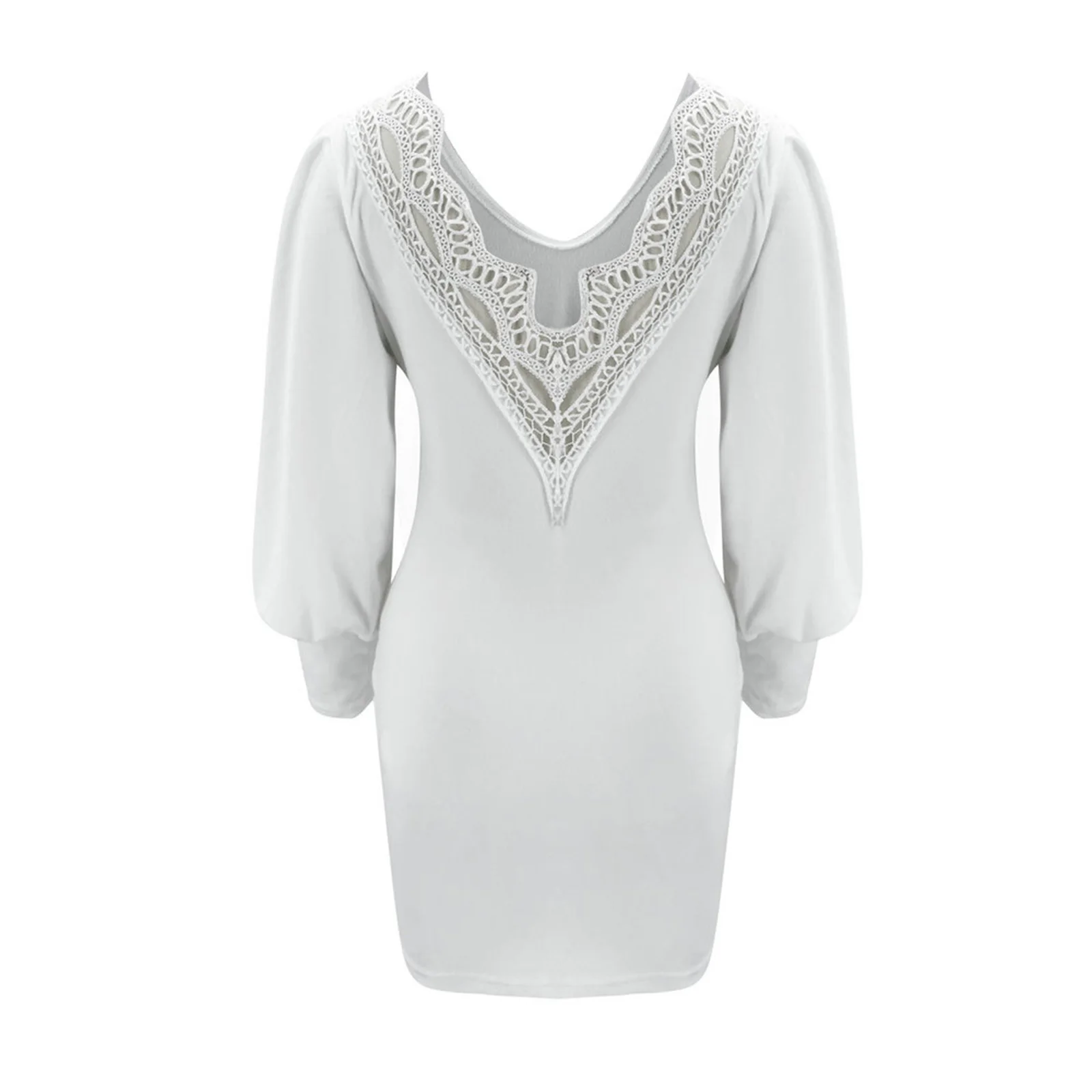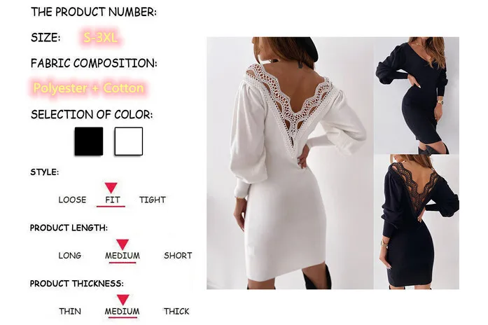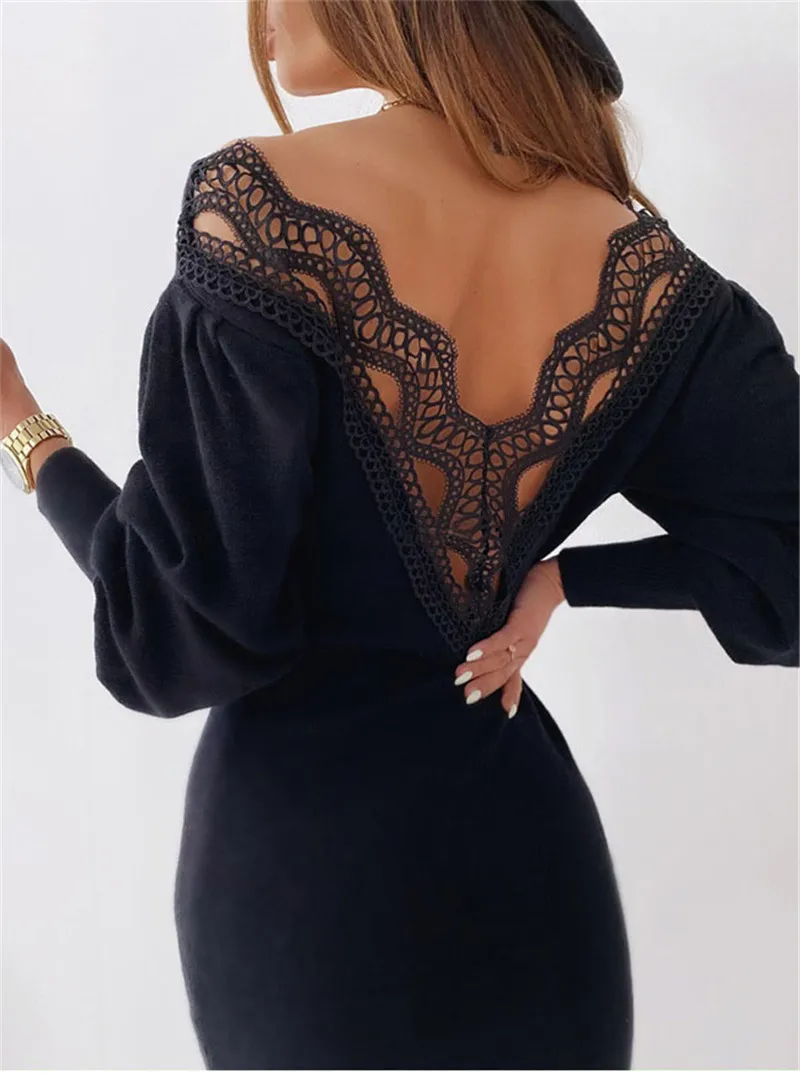 Knitted Short Mini Dress Women Spring Lace Backless Lantern Sleeve Casual Dress