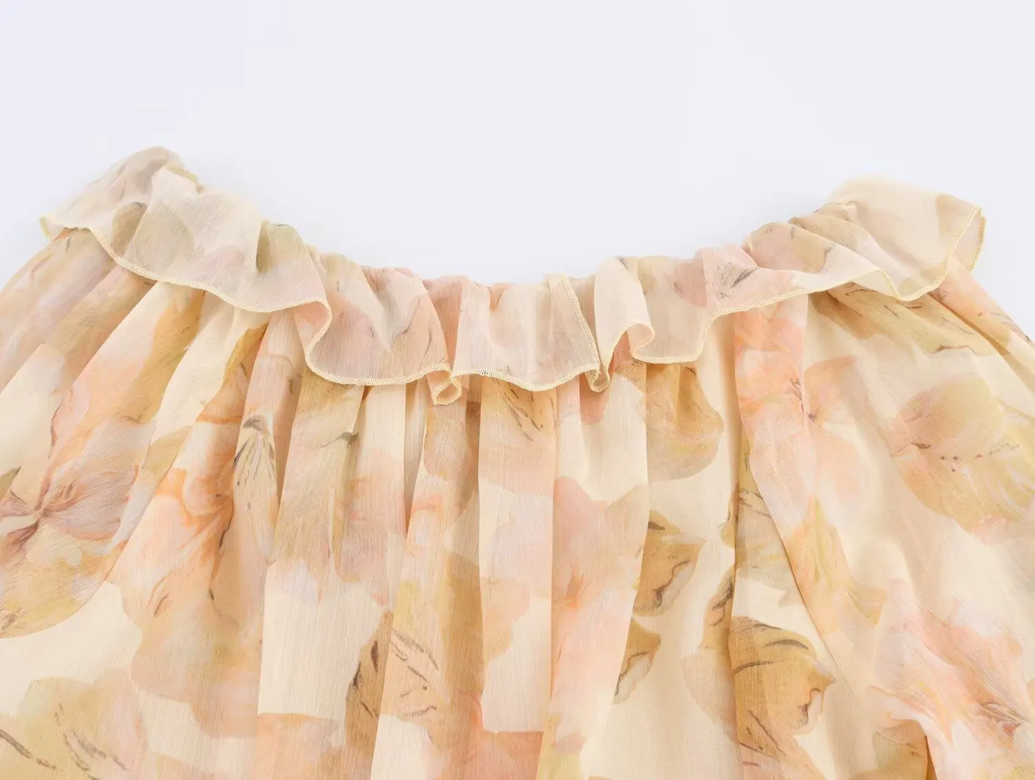 KONDALA Vintage Holiday Flower Print Women Dress Long Sleeve V Neck Ruffle Mini Dress Fashion 2025 Spring Summer Elegant Vestido