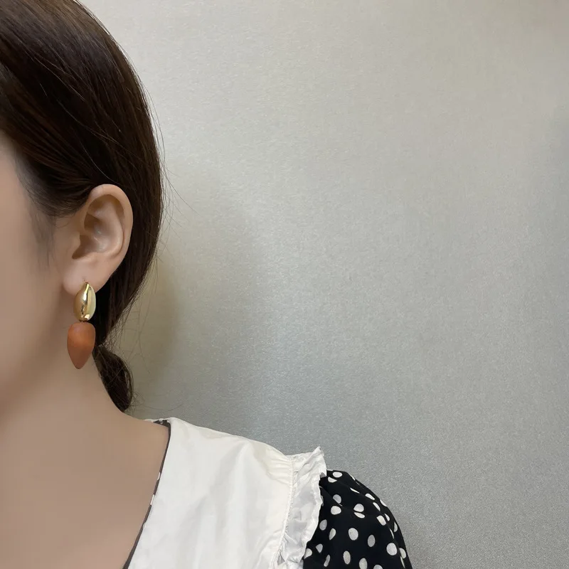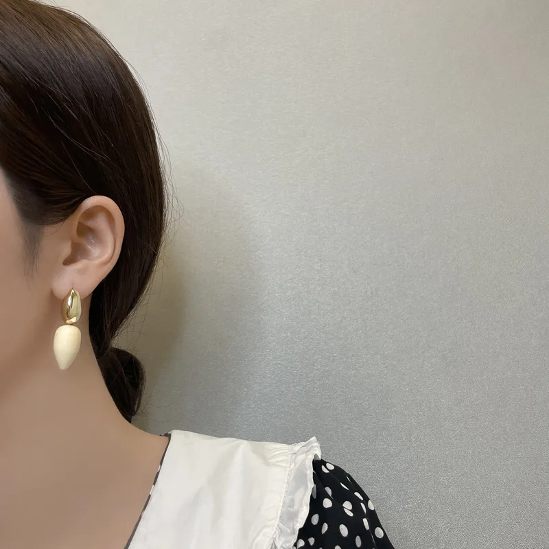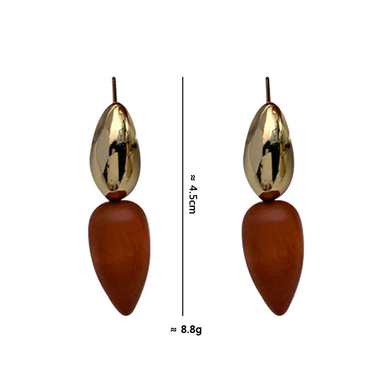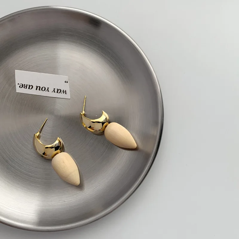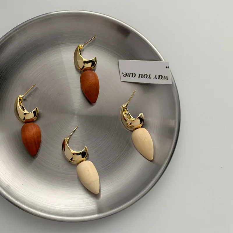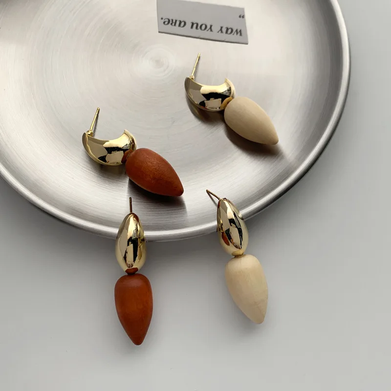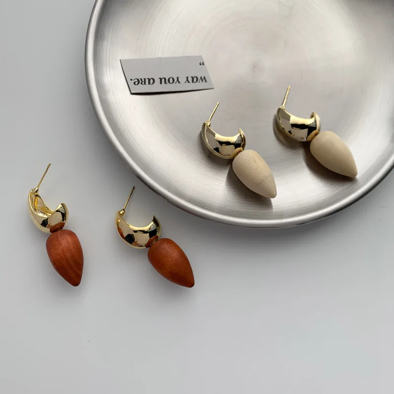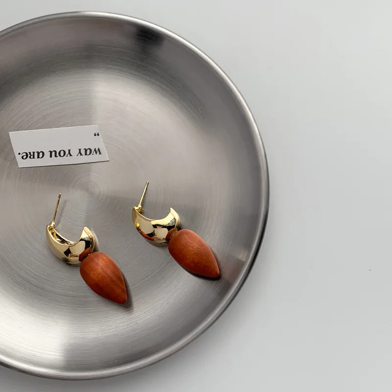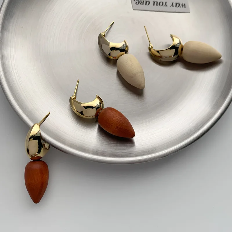 Korean Designer Geometric Earring Jewelry Women Trendy Metal C-shaped Cone Wooden Earrings