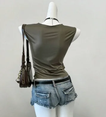 Korean summer new hot girl style 90s retro print niche y2k versatile design rock punk splicing mesh slim sleeveless T-shirt
