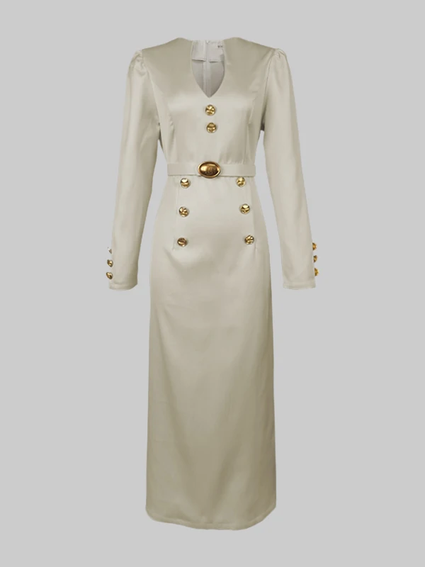 Krisstar 2025 Wedding Evening Banquet Dresses for Women Clothing Formal Original Creation Buttoned Long Sleeve Dress for Ladies