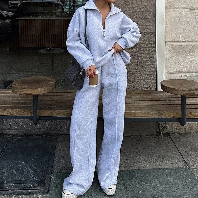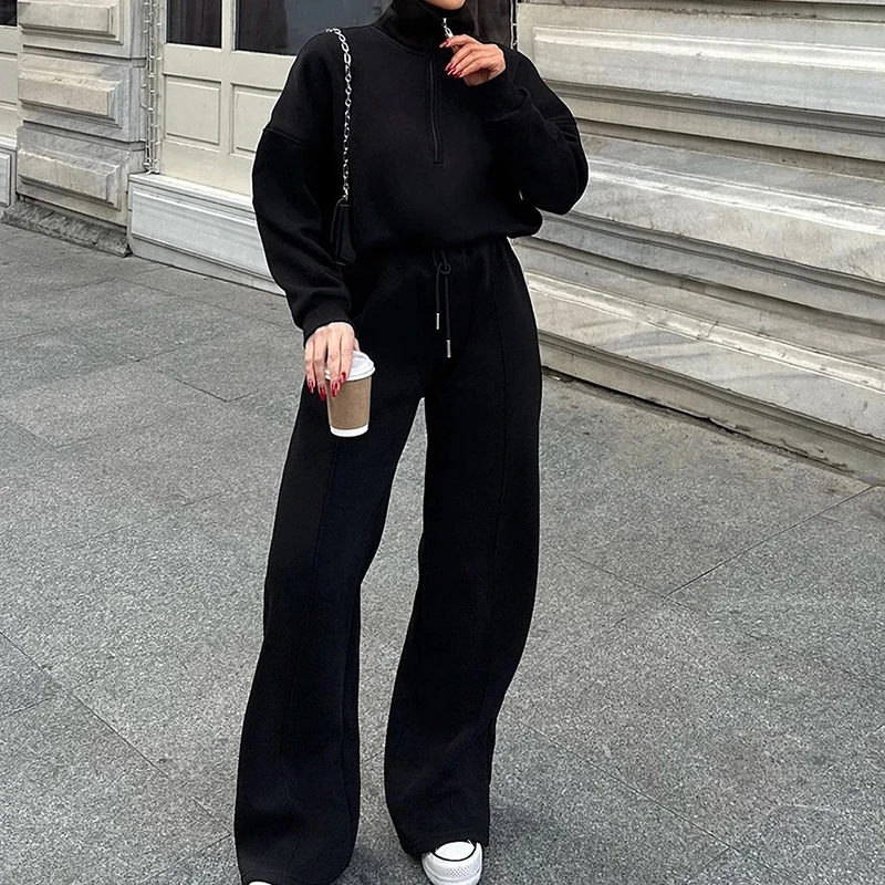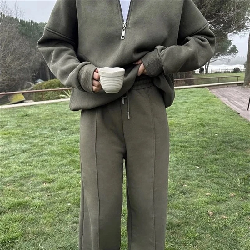 KUCLUT 2025 Autumn Fashion Sport Style Two-pieces Set For Women Half-Zip Pullover Sweatshirt Drawstring Long Casual Pants 1A1109
