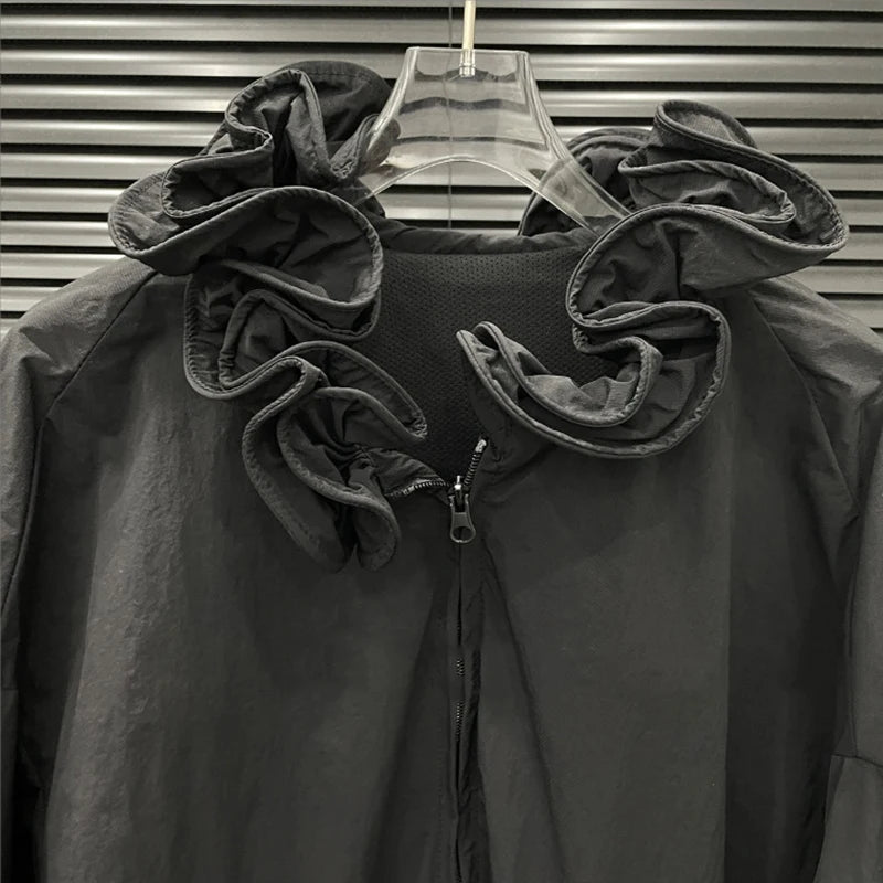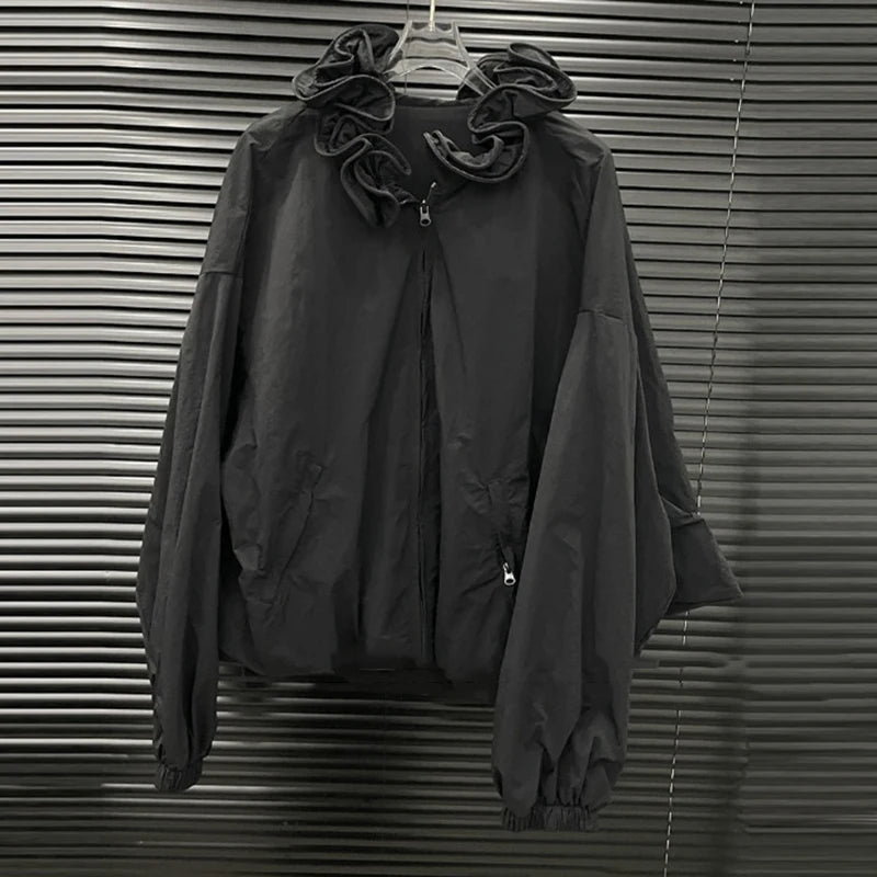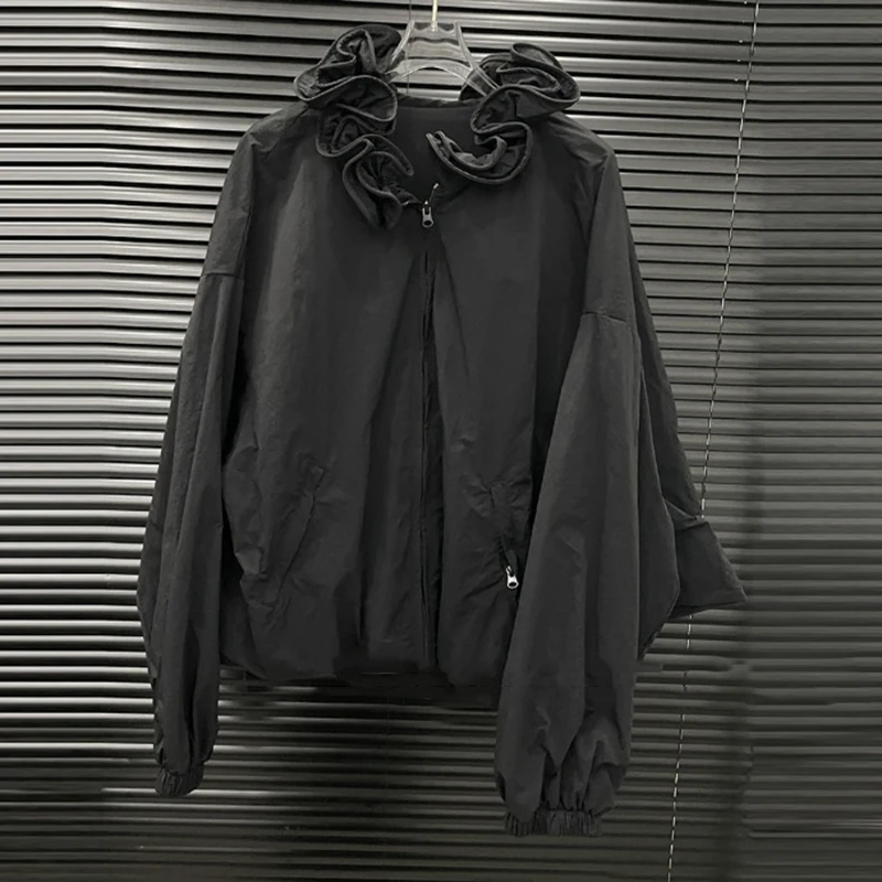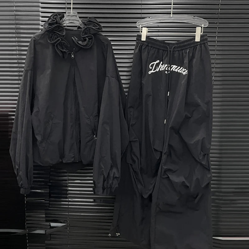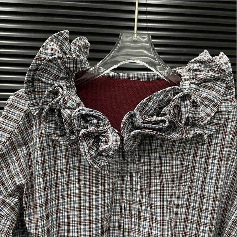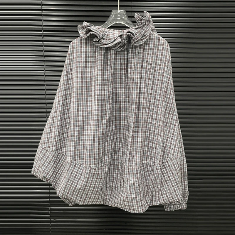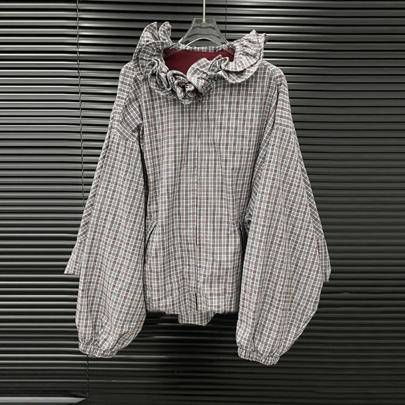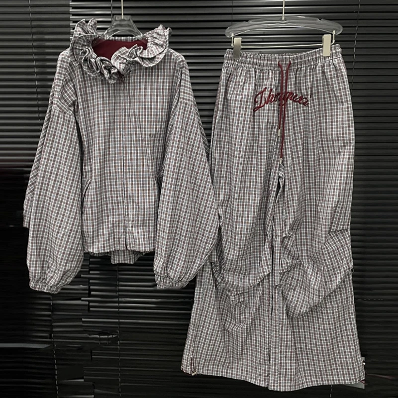 KUCLUT 2025 Autumn New Fashion Ruffle Plaid Batwing Sleeve Zipper Loose Jacket For Casual Elastic Waist Wide-Leg Pants 1A621