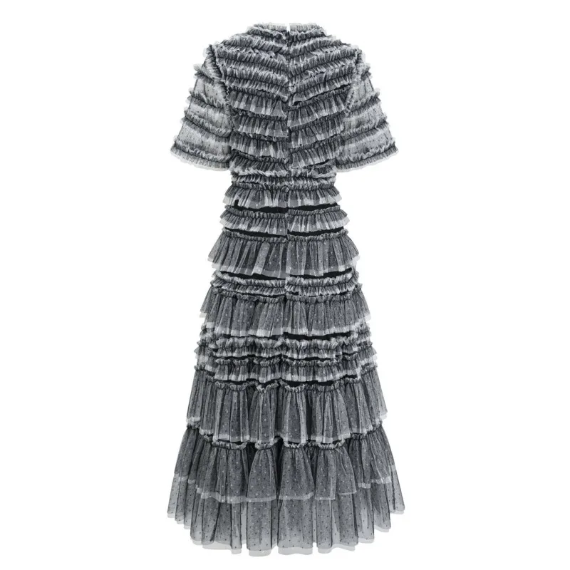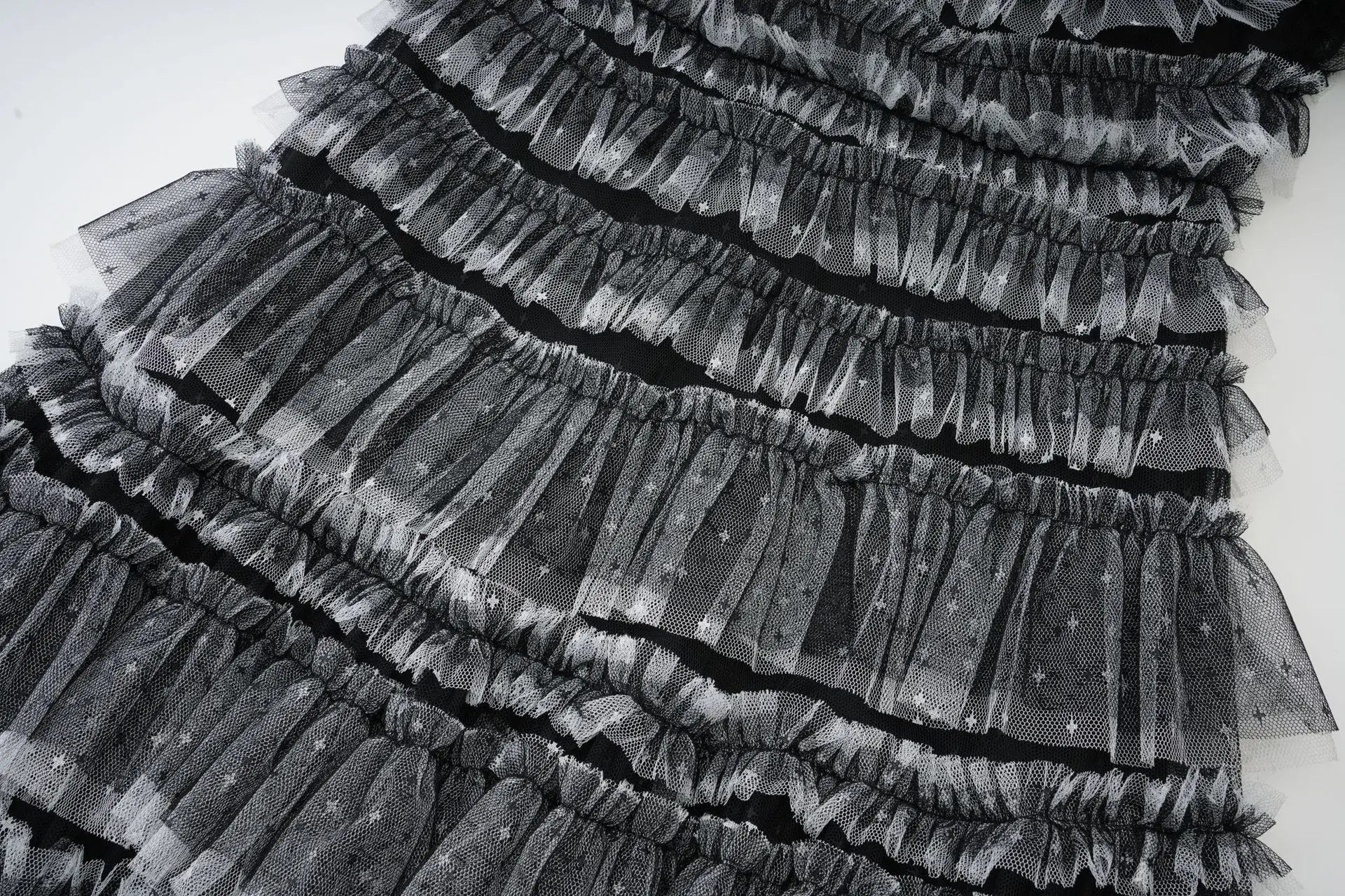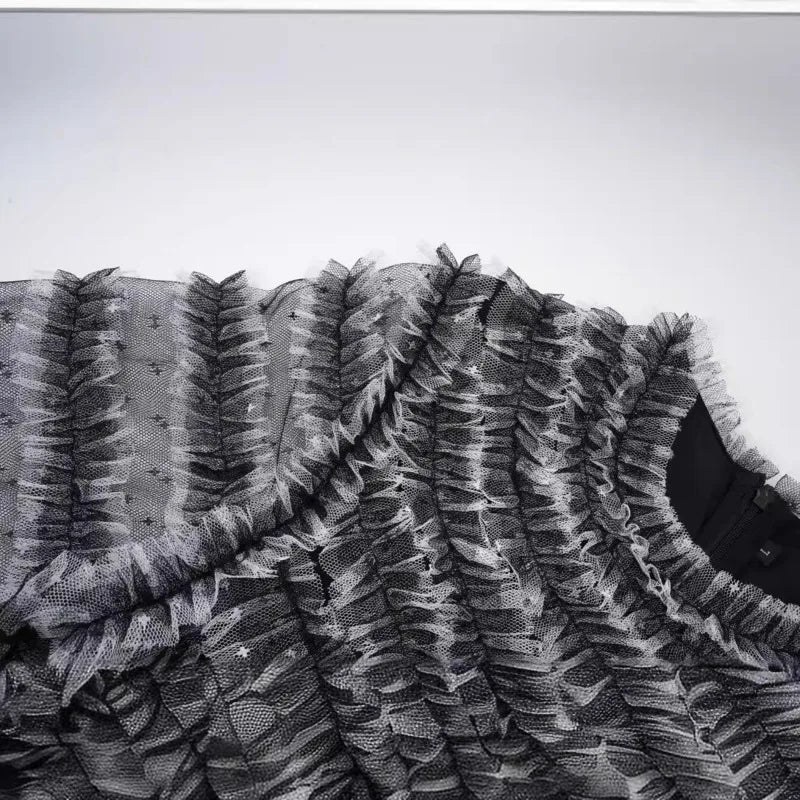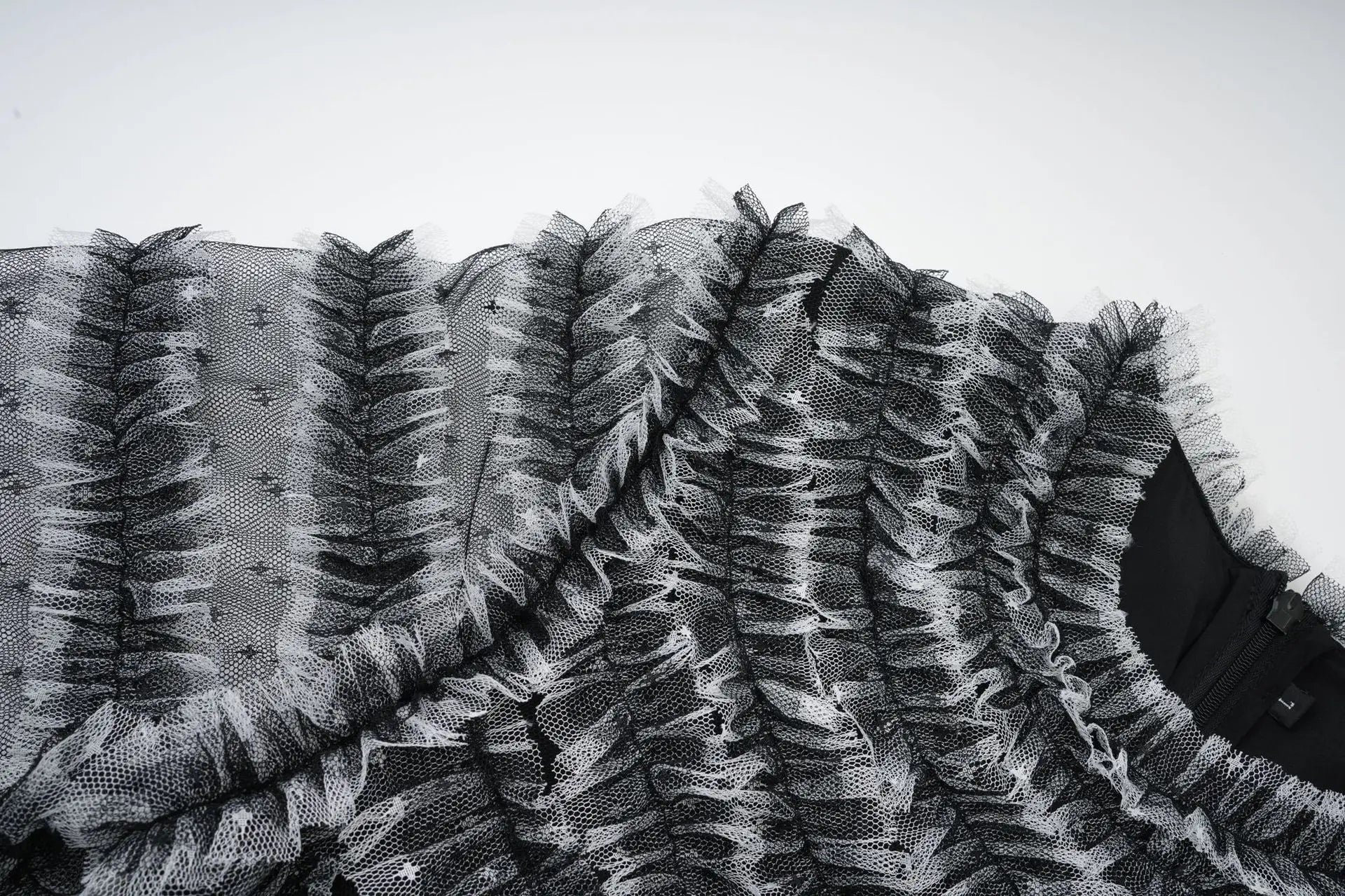 KUCLUT Fashion Women's Multi Layer Mesh Patchwork Dress Elegant Heavy Industry Evening Party Ruffled Short Sleeve Dresses YZJ28
