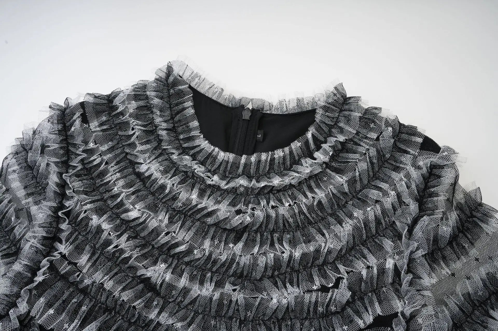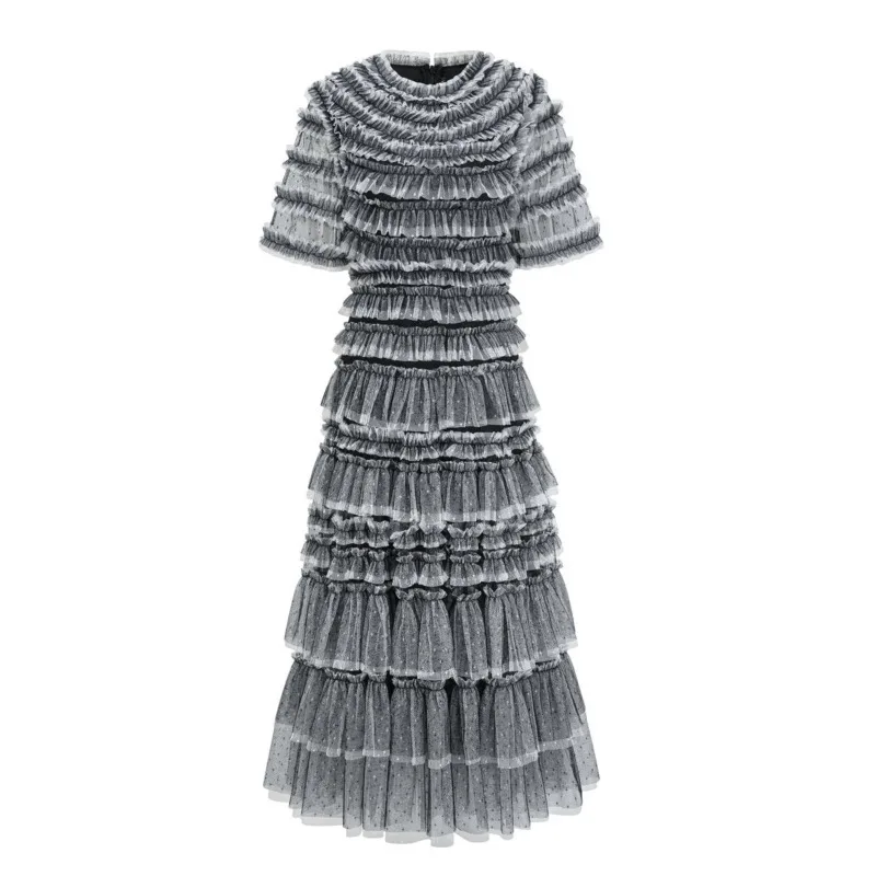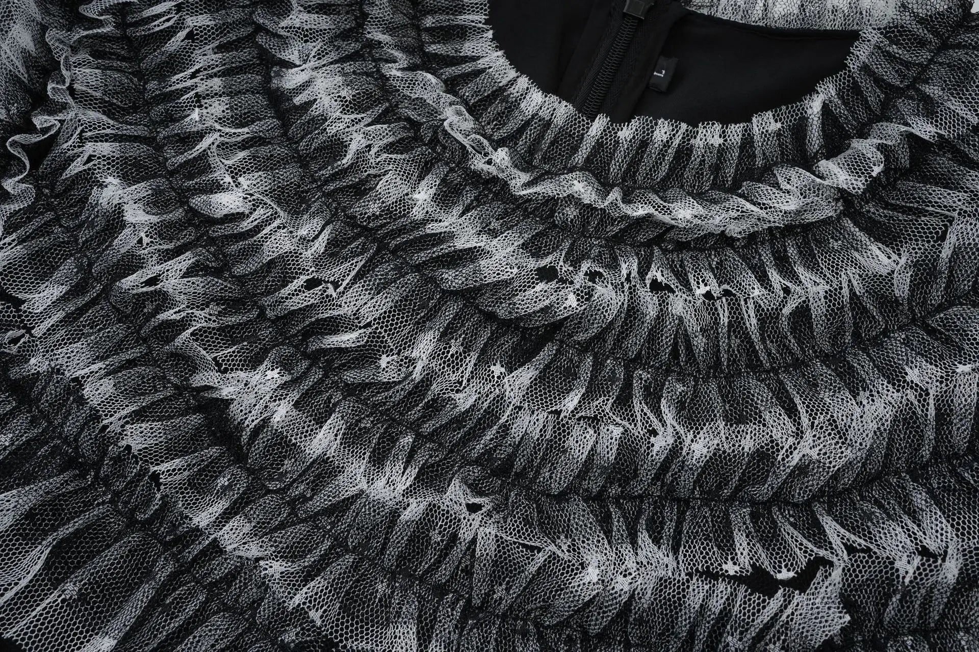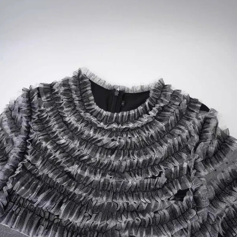 KUCLUT Fashion Women's Multi Layer Mesh Patchwork Dress Elegant Heavy Industry Evening Party Ruffled Short Sleeve Dresses YZJ28