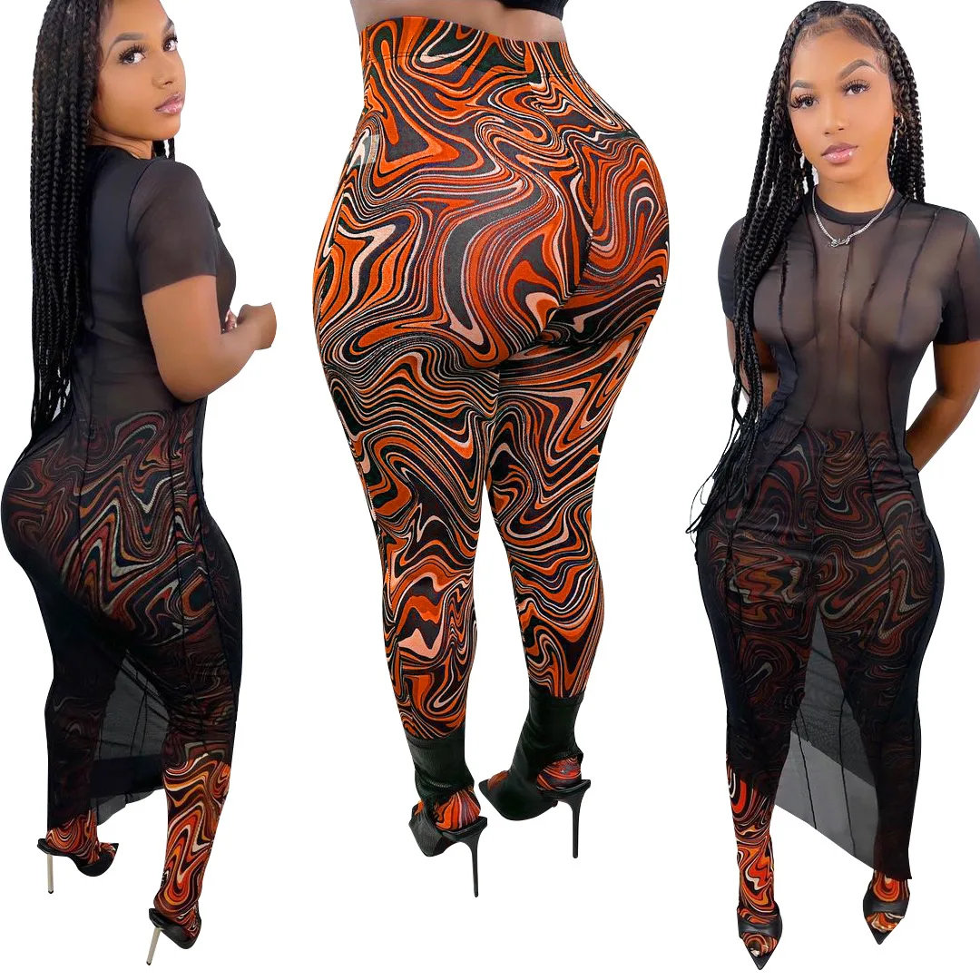 KZH1013 spring 2022 women s clothing fashion pattern printing sexy high waist casual slim fitting pants leggings