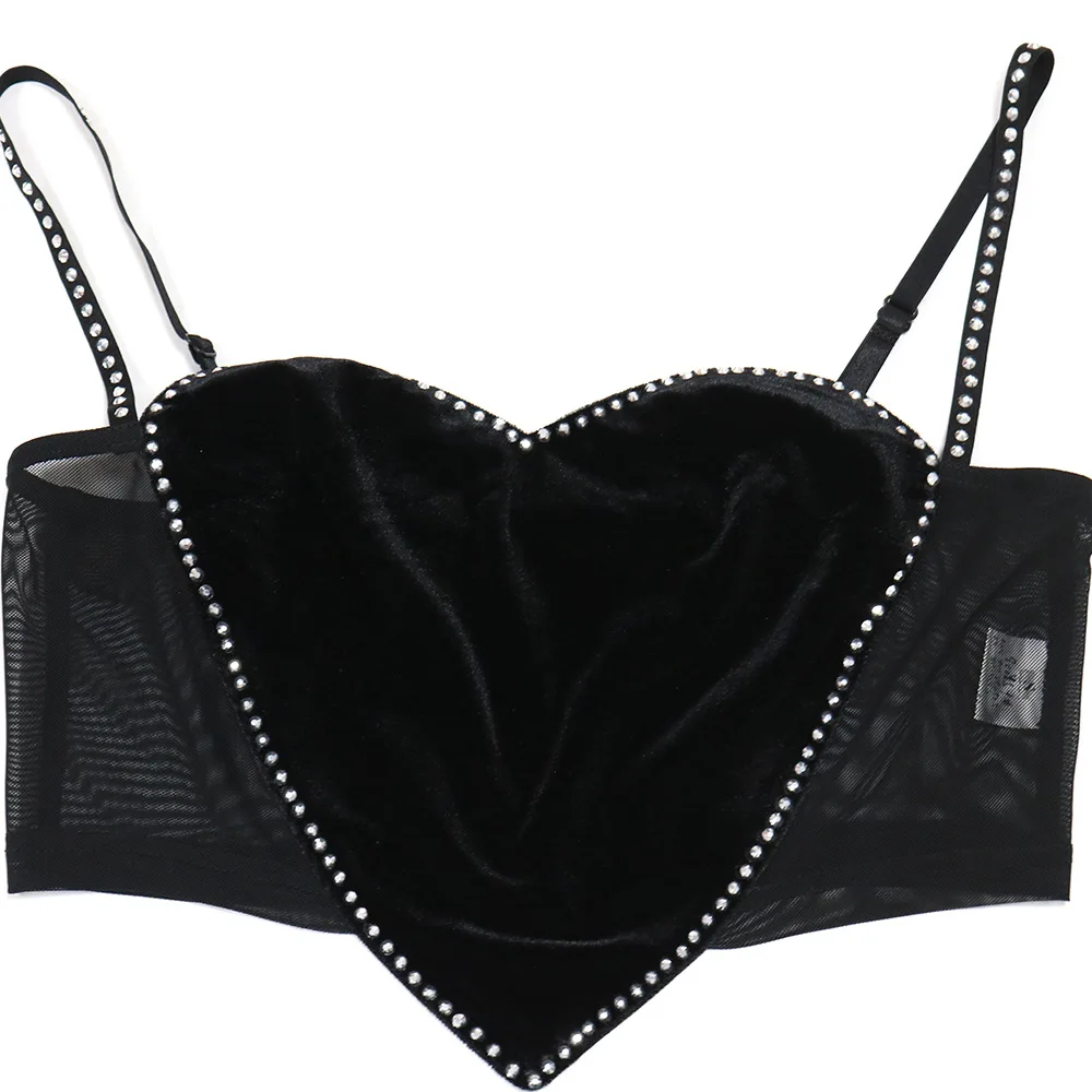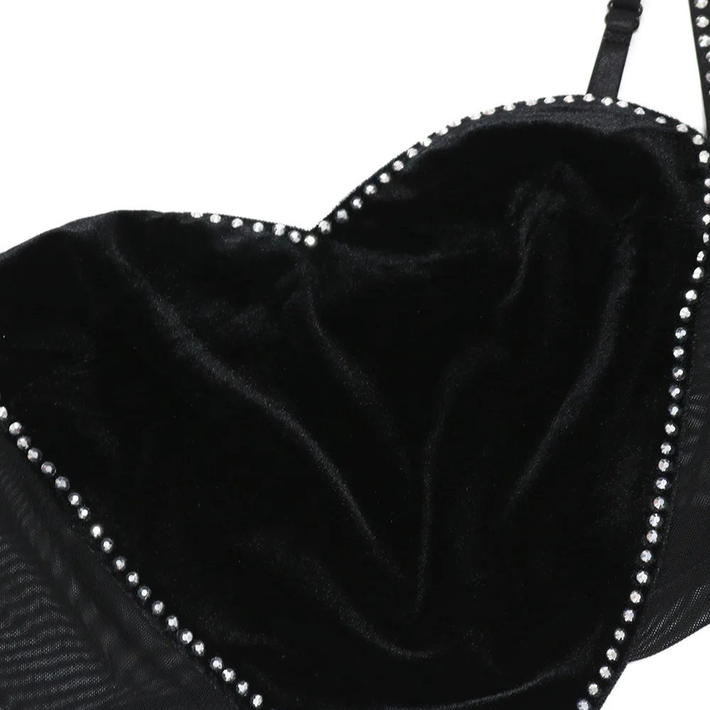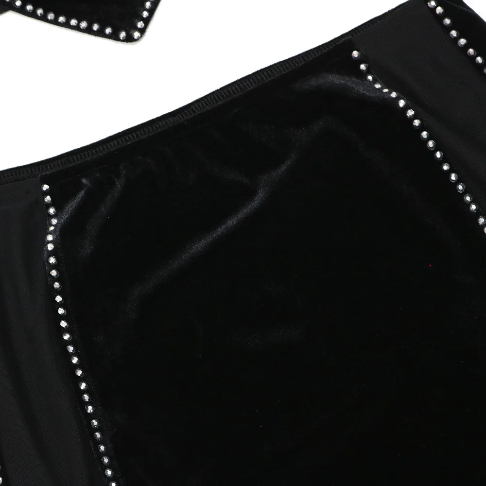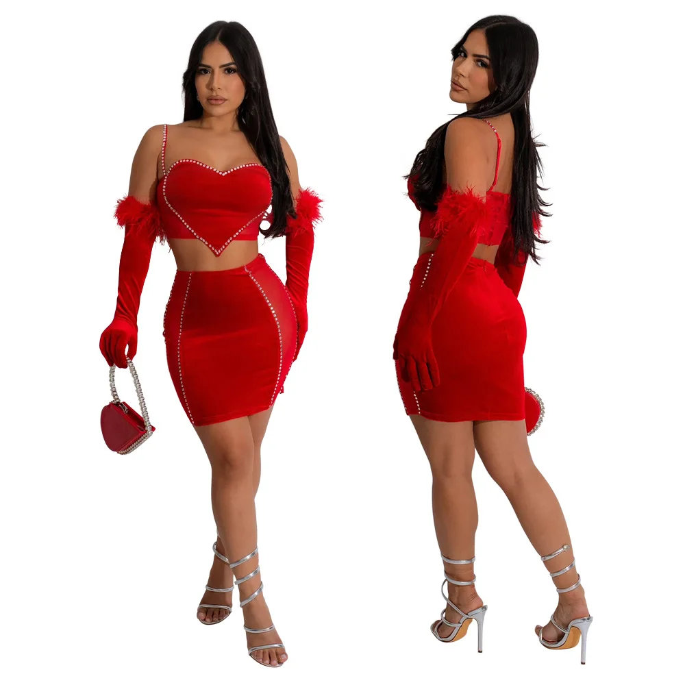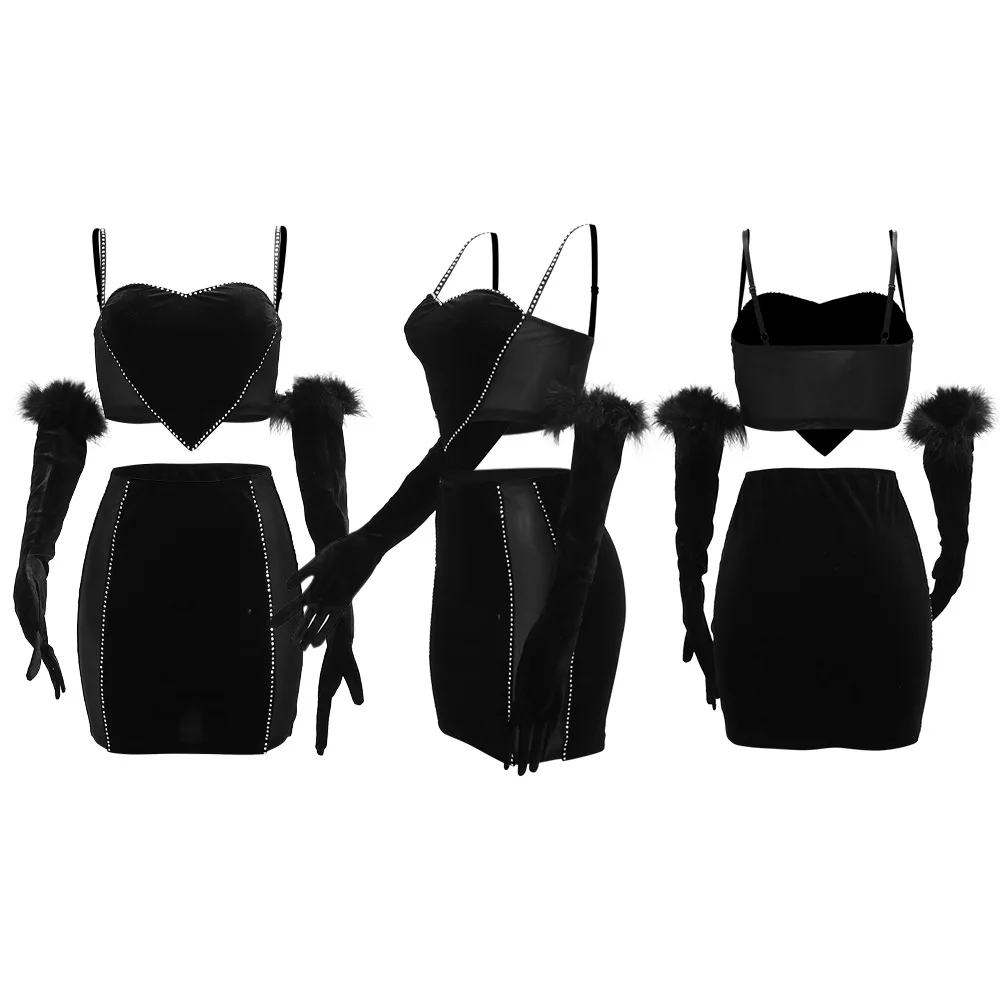 L2222 Hot Diamond Straps Cropped Top A-line Short Skirt with Gloves