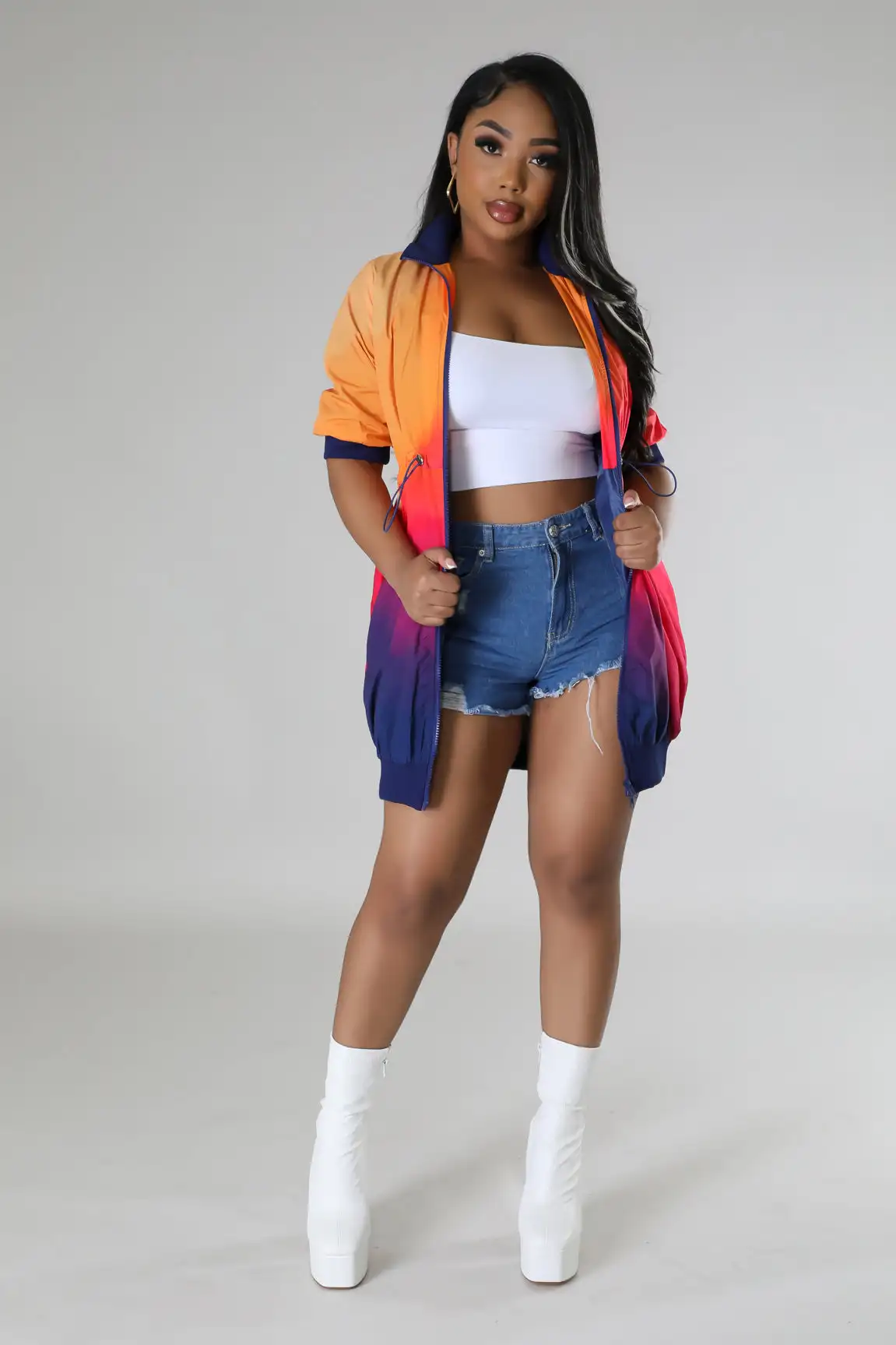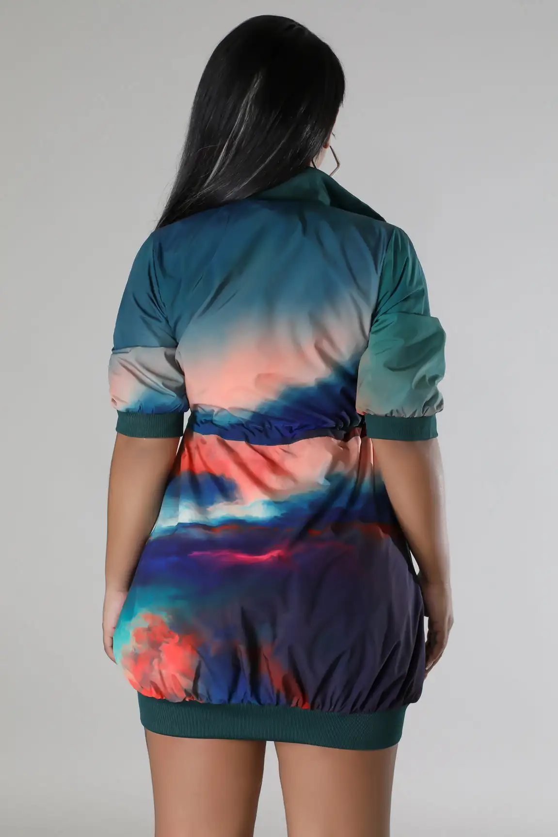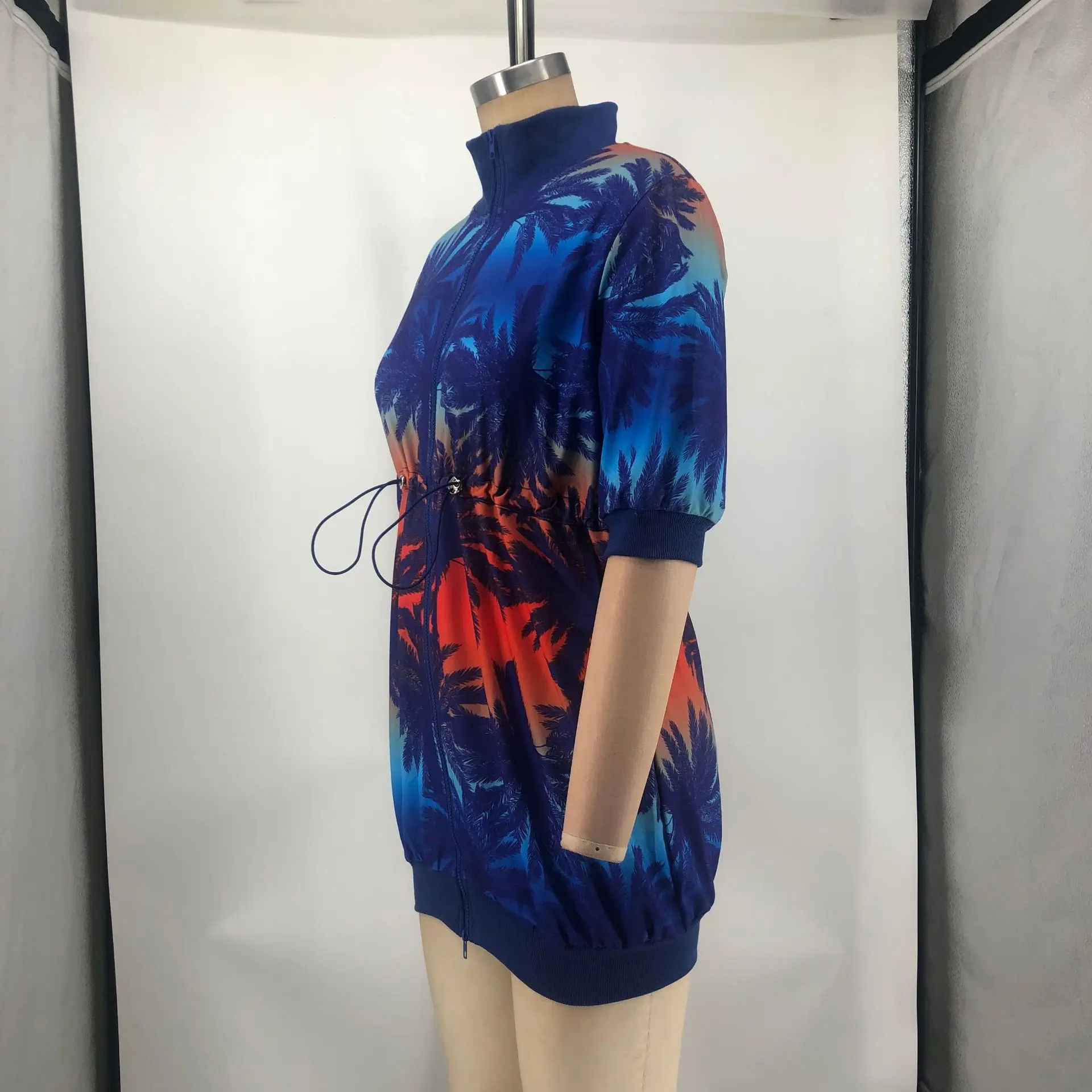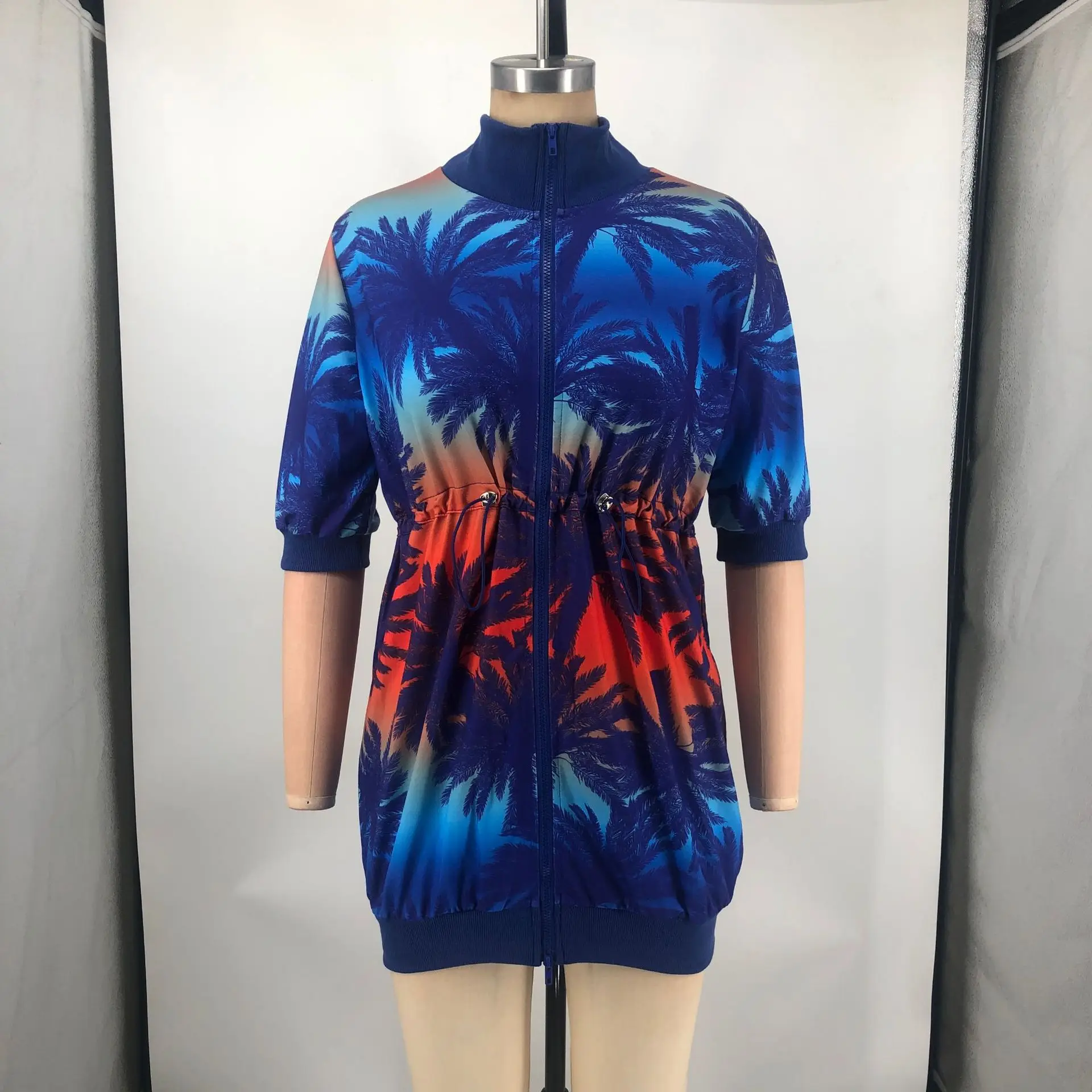 L28644 Women's Jacket Baseball Uniform Long Sleeve Stand Collar Gradient Printing Sweatshirt Dresses