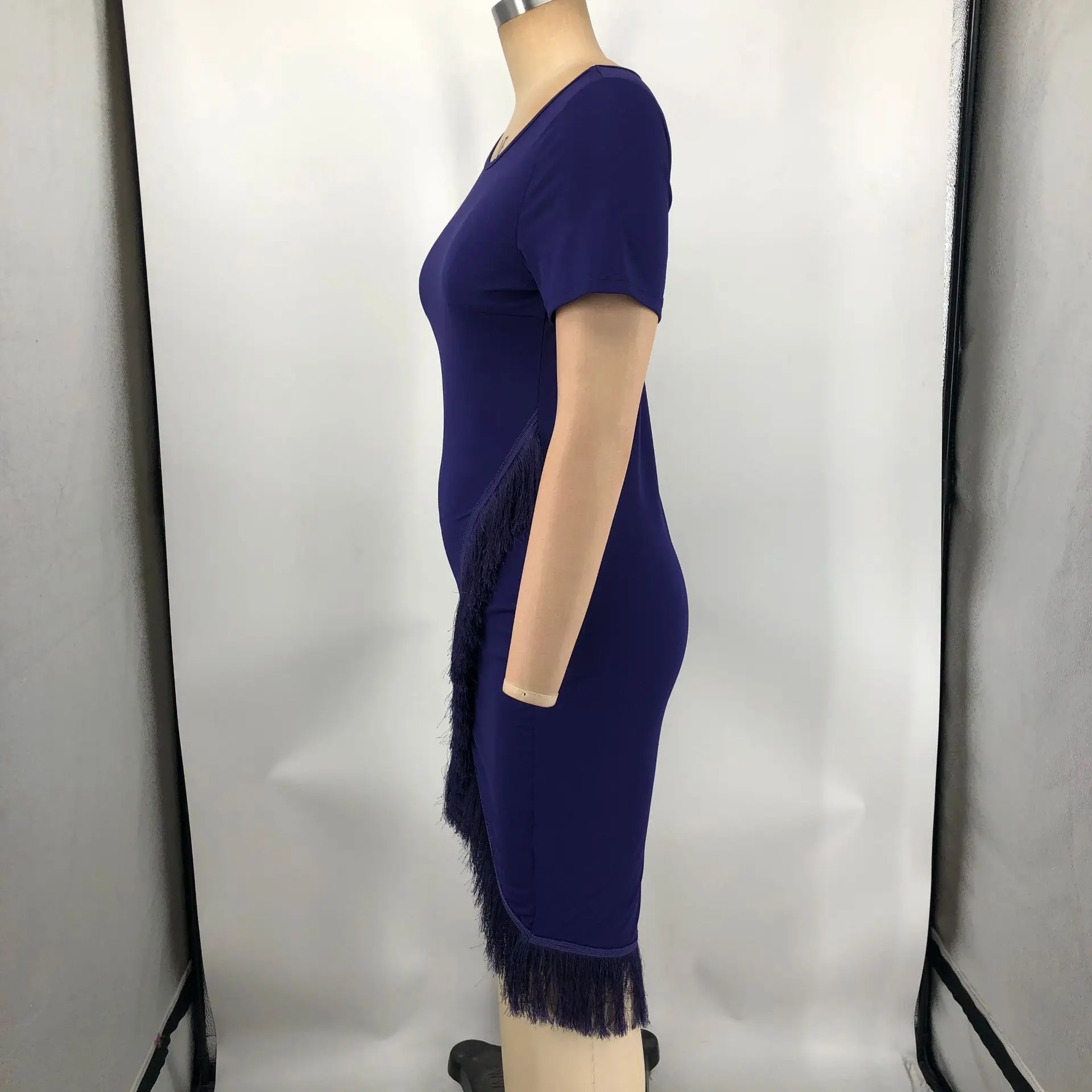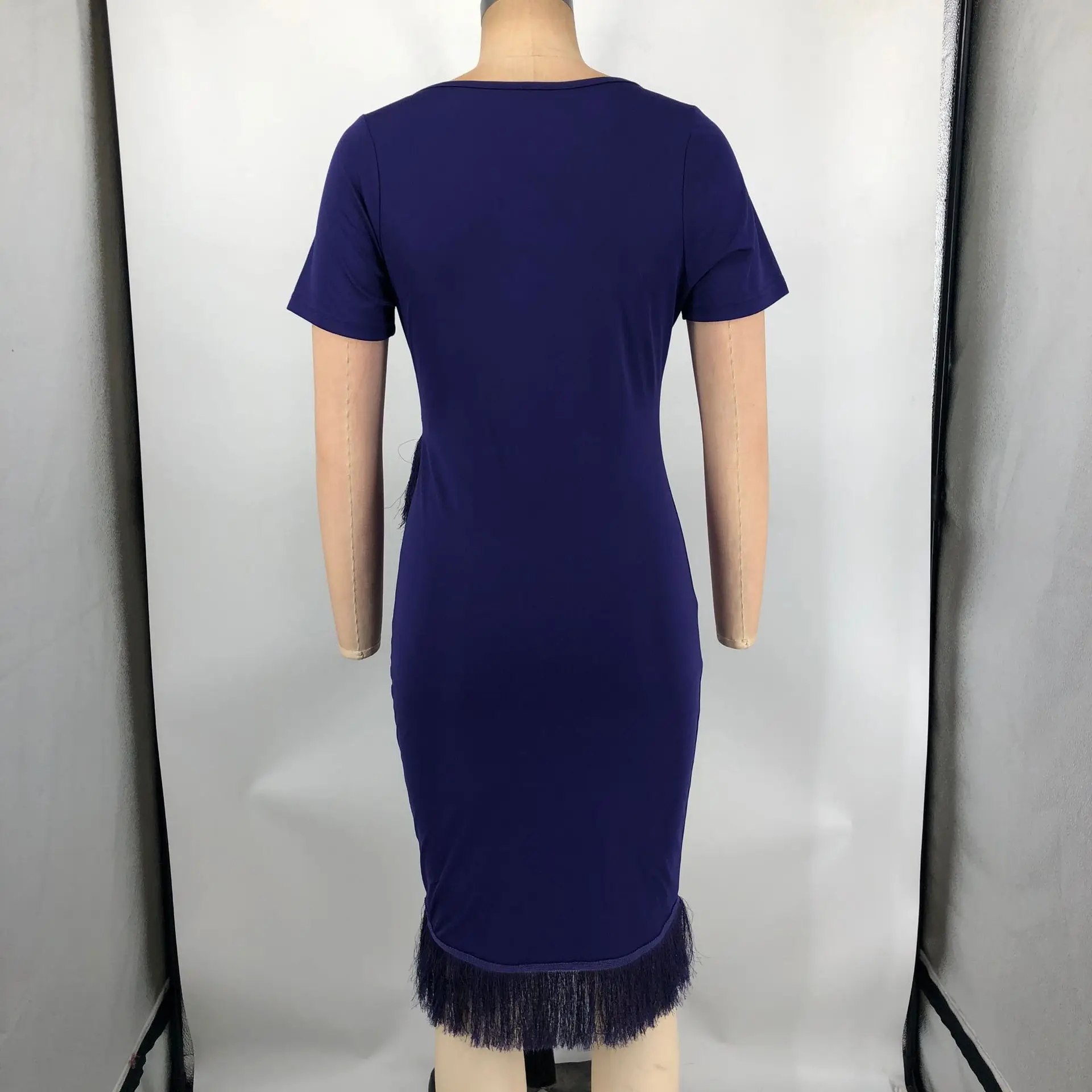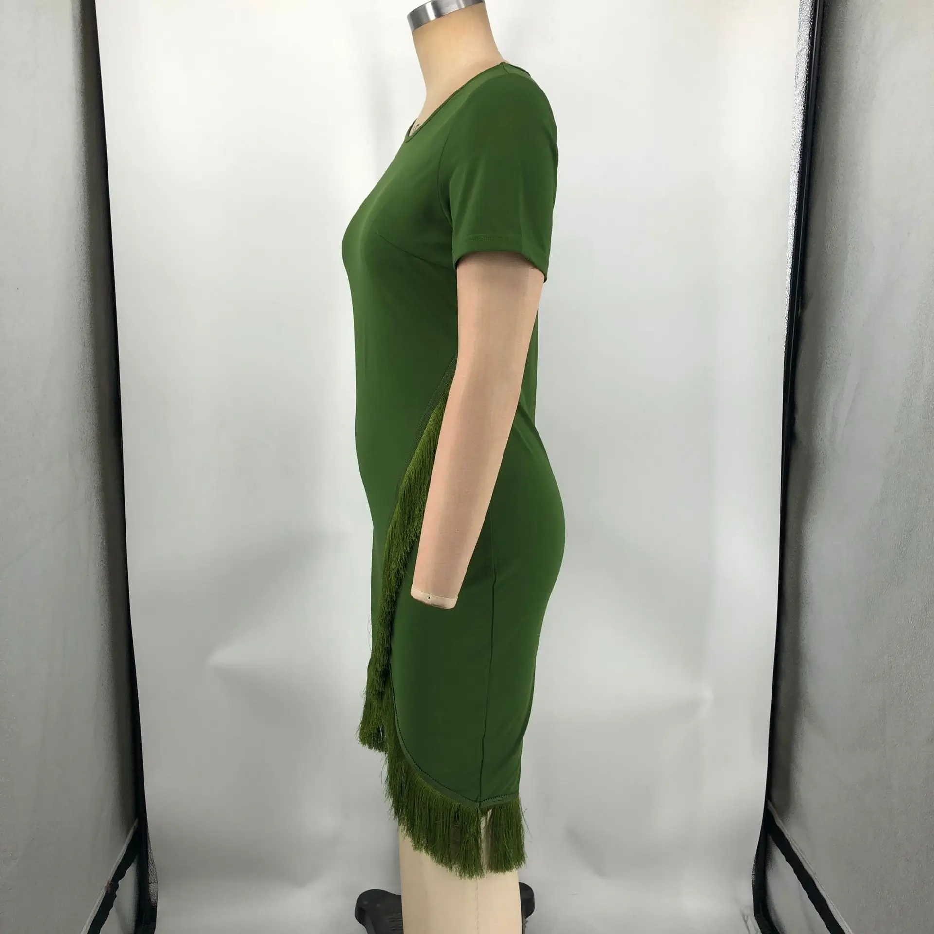 L28674 Felyn 2023 Solid Tassel O-neck Short Sleeve Elegant Mini Dress