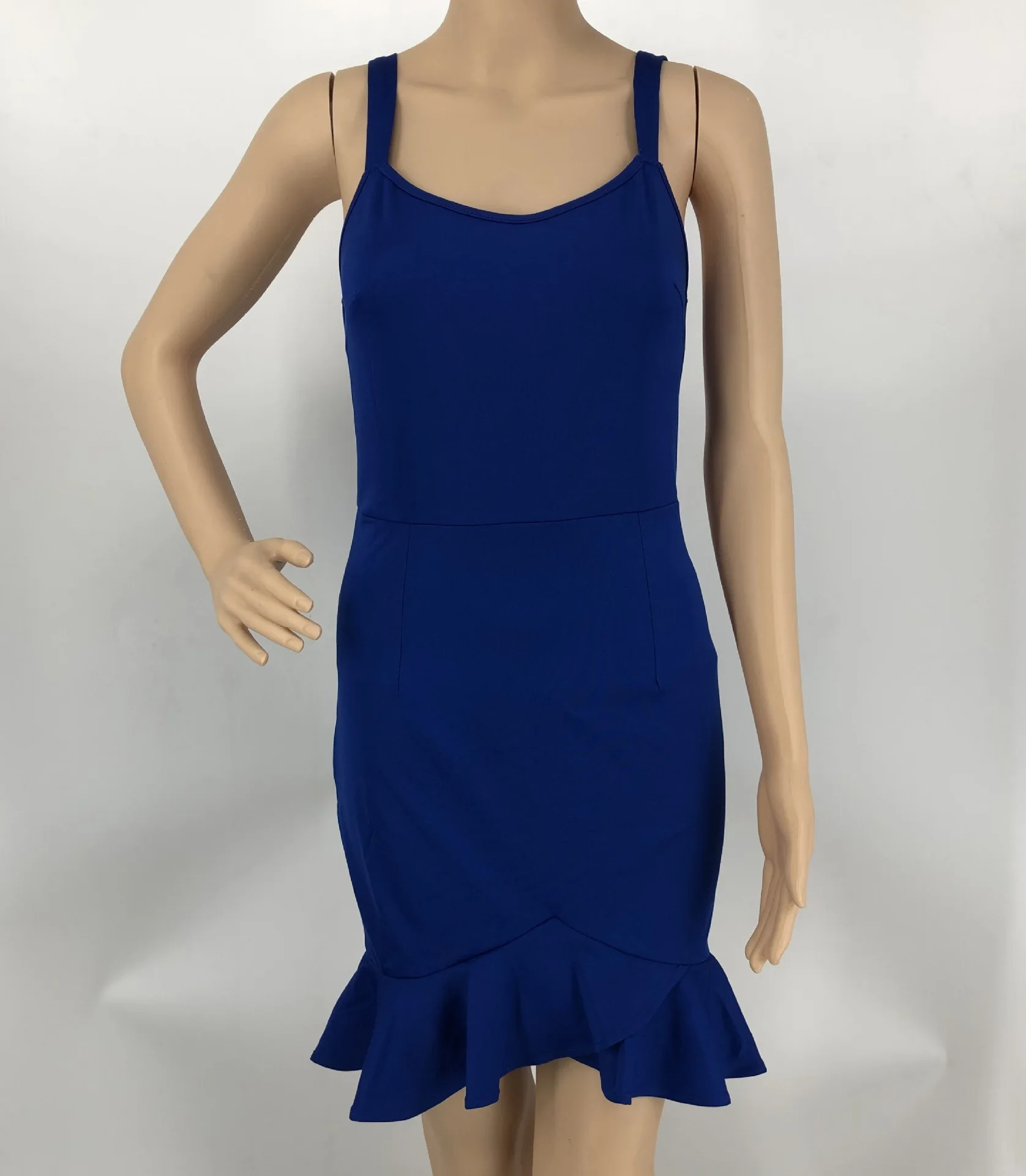 L28707 Fashion Solid Color Straps Ruffle Bodycon Dress