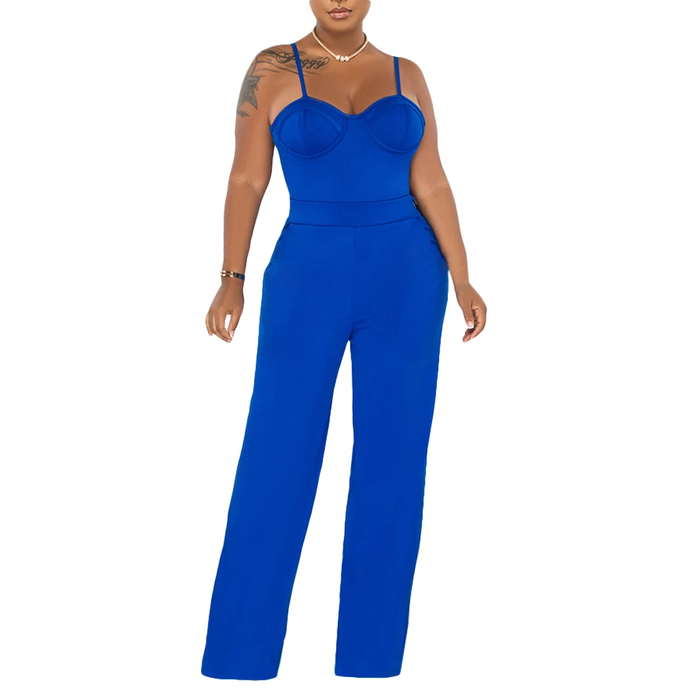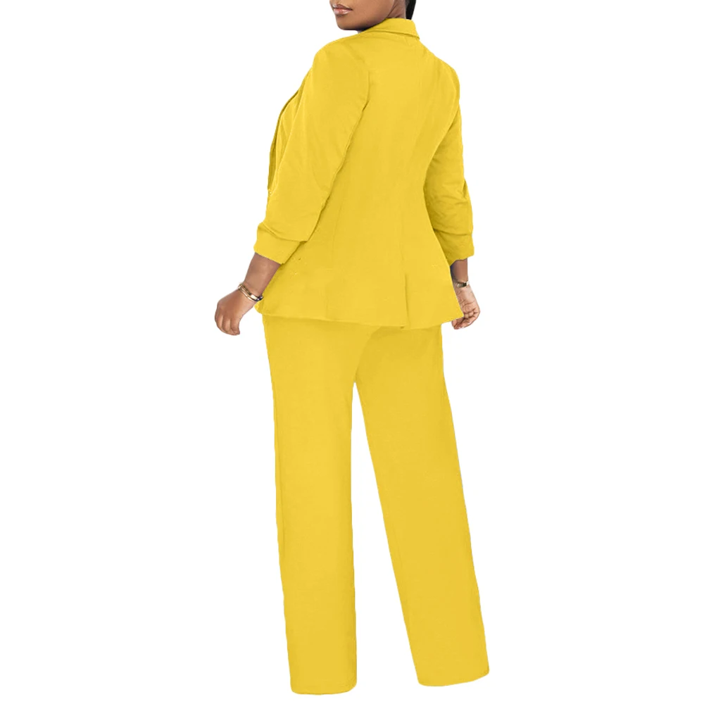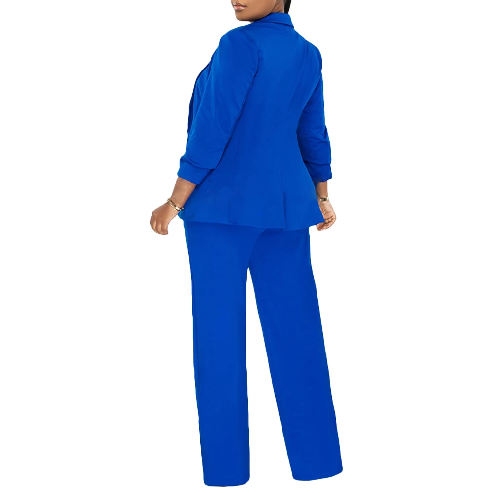L2917 Solid Color Blazer & Wide Leg Jumpsuit Two Piece Set