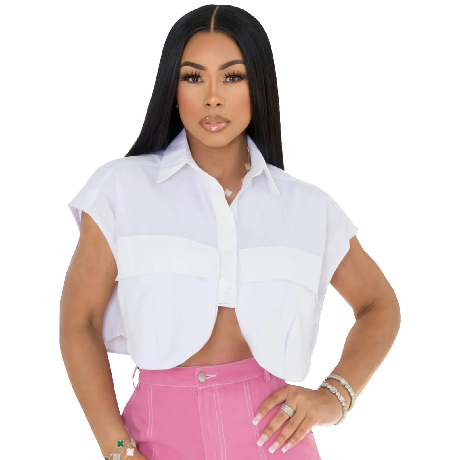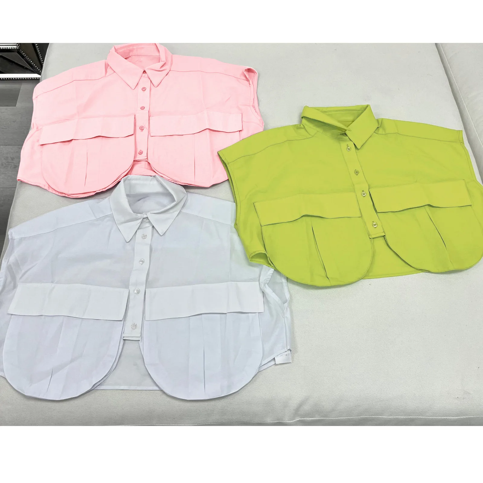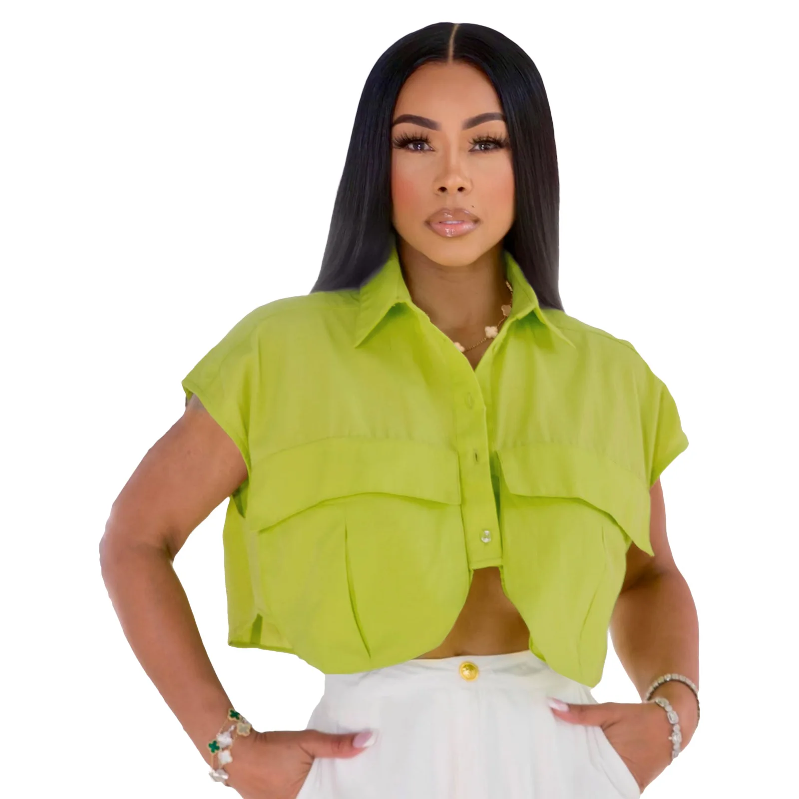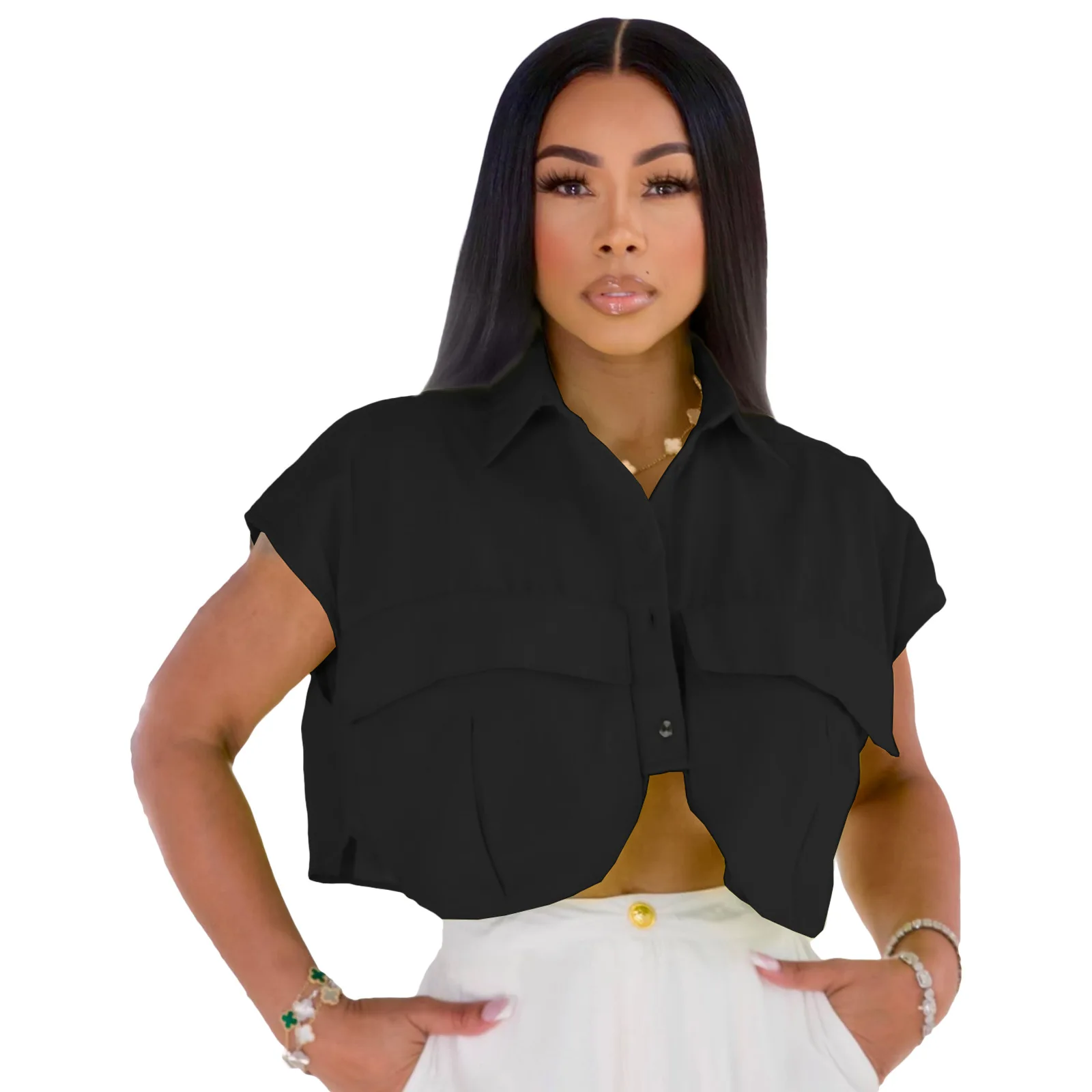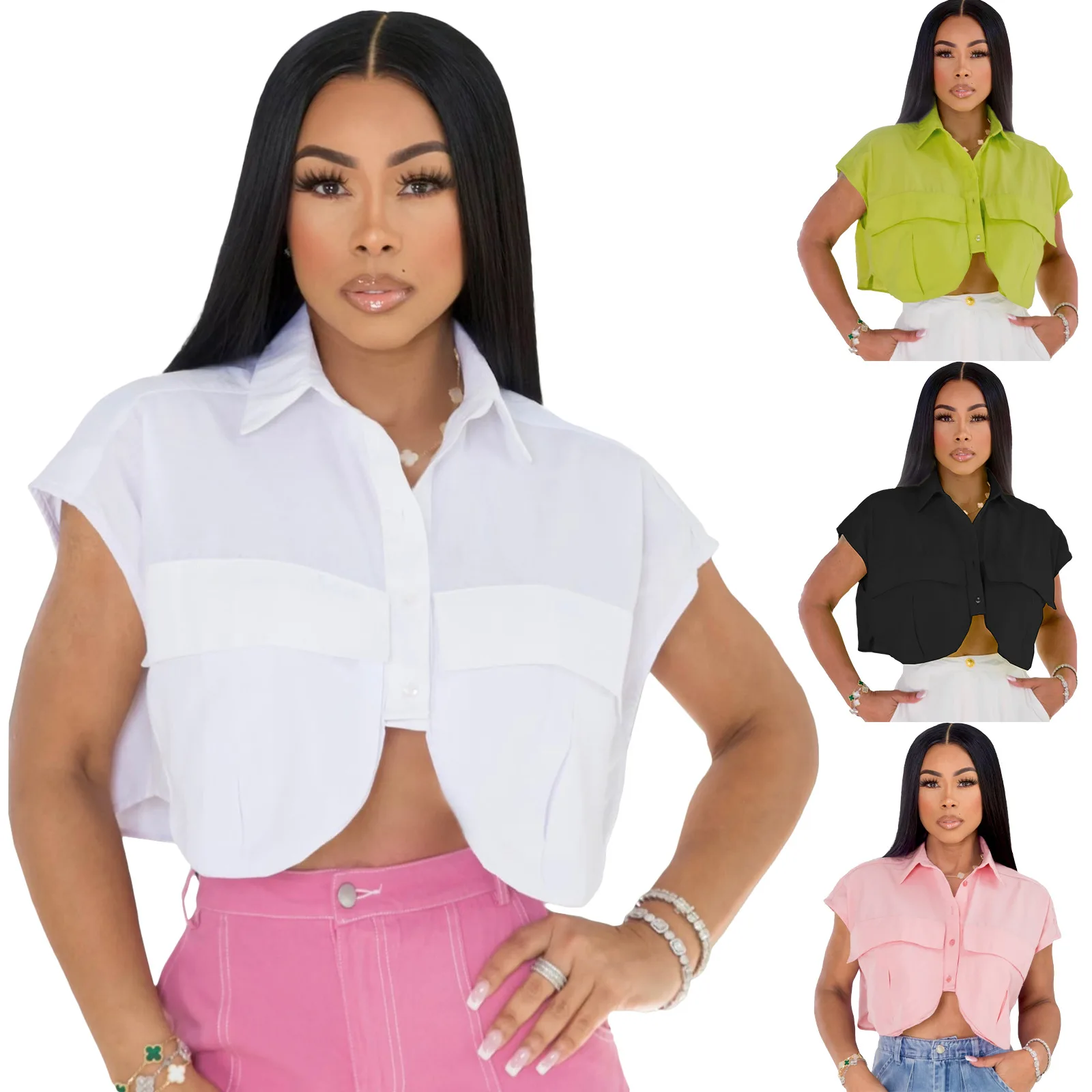 L492 New Arrival Women Short Sleeve Shirt Summer cargo bag sexy short shirt