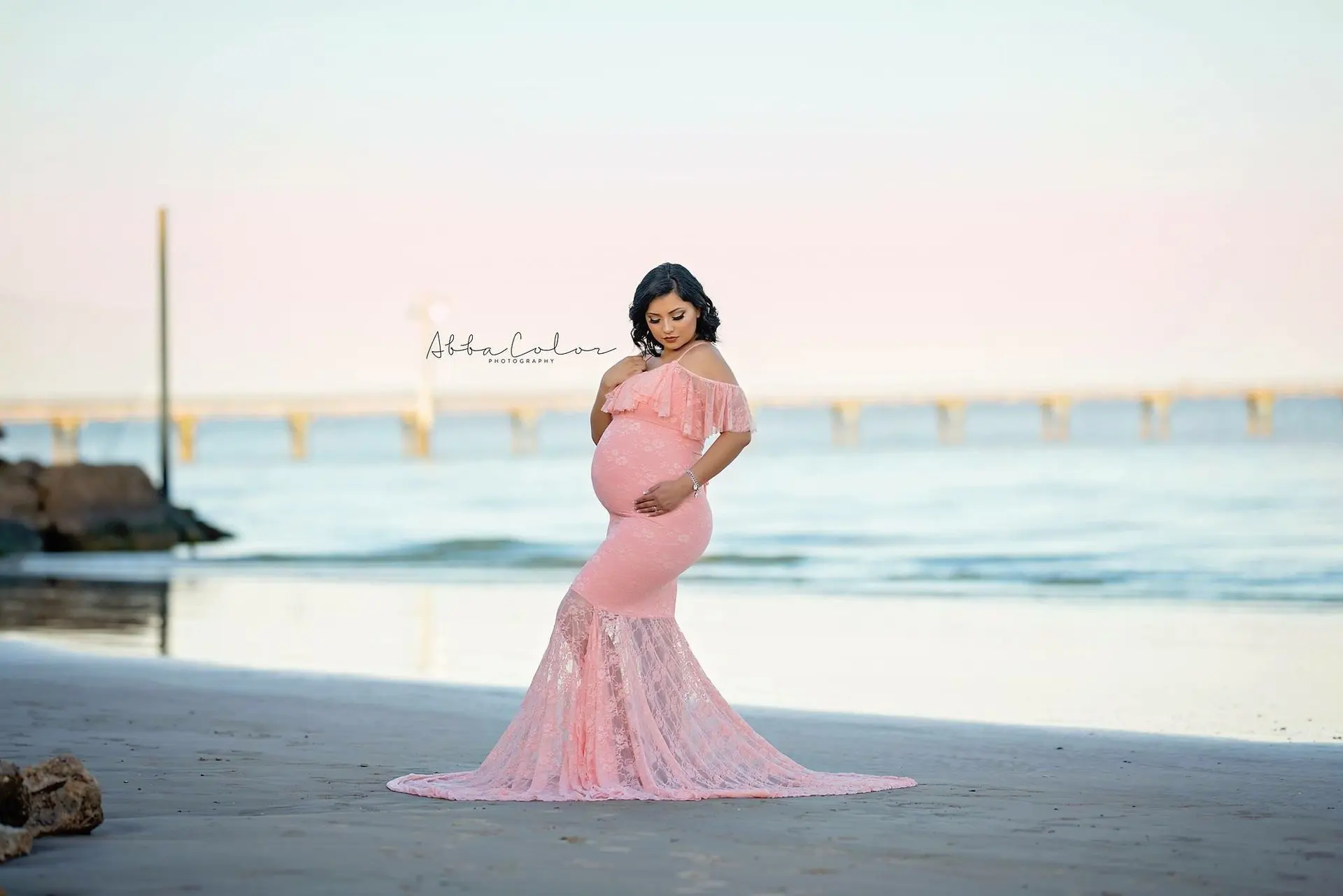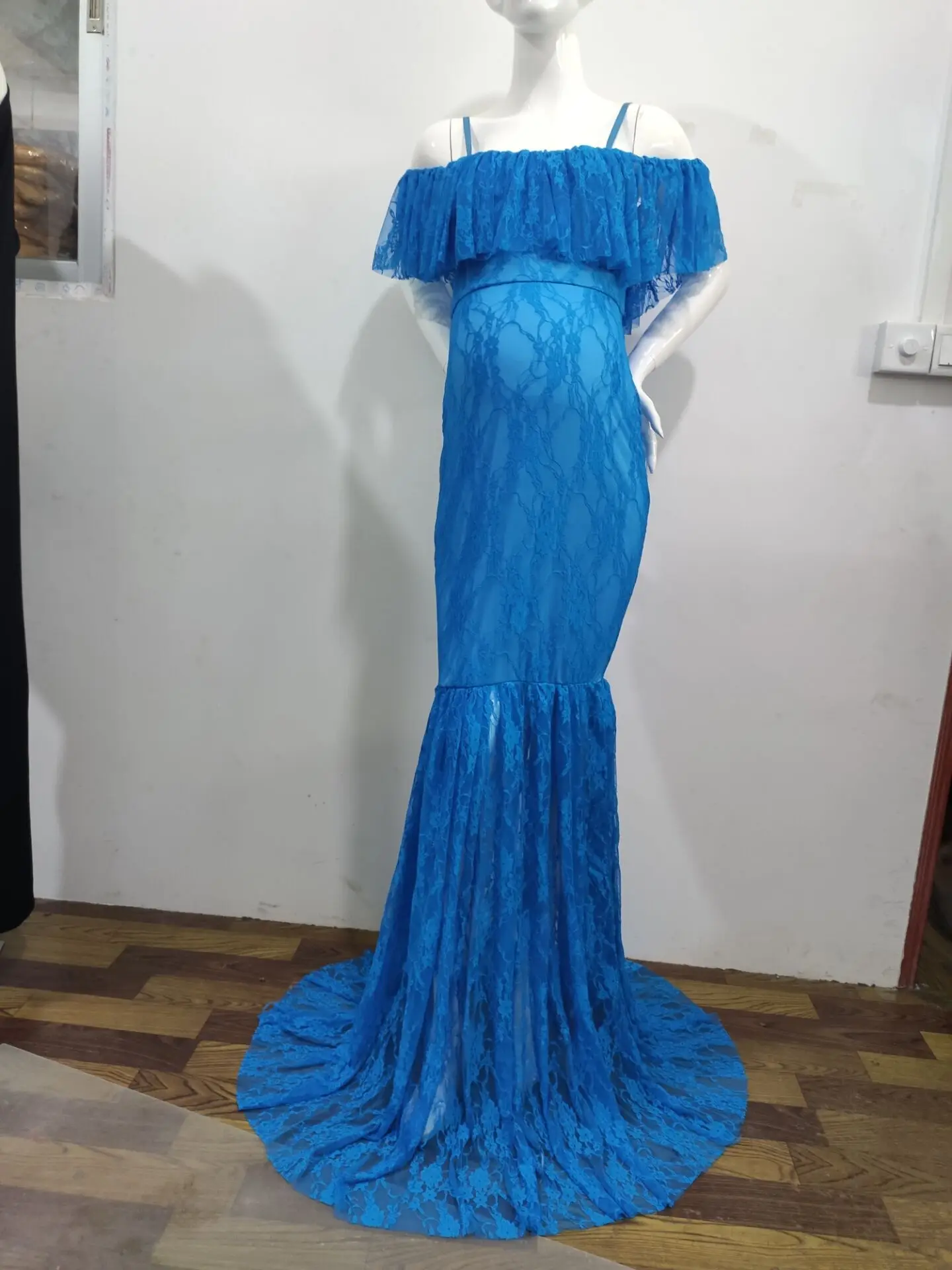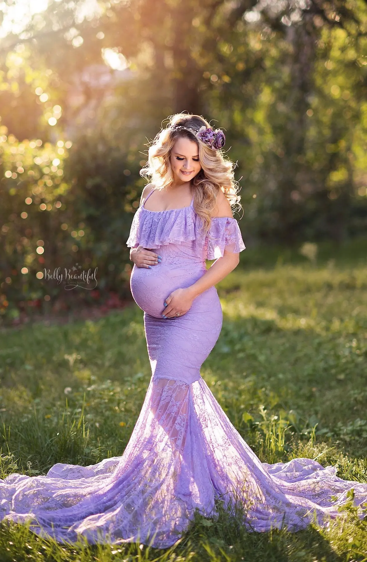 Lace Maternity Ruffle Long Maternity Dresses Photography Pregnant Floor Dress Wedding Off-shoulder Plus Size White Purple Ball
