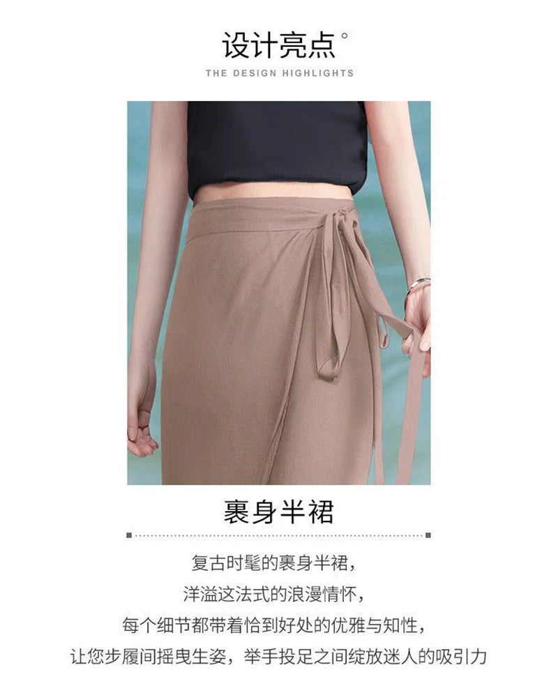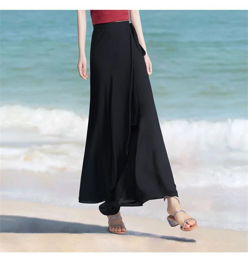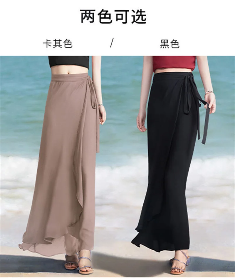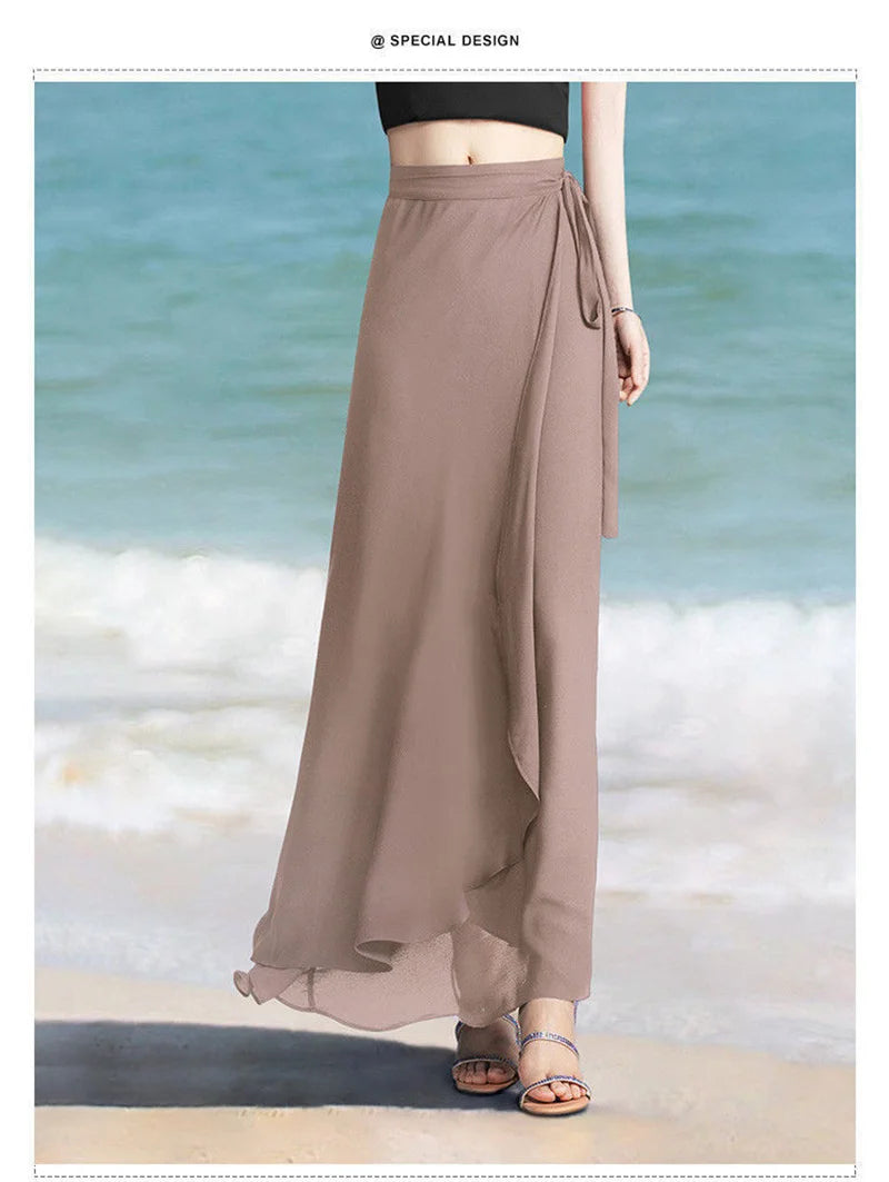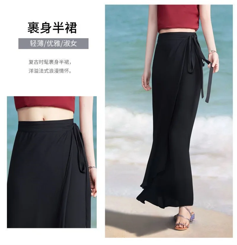 Lace-Up Summer Skirt Holiday style Chiffon Halfskin Skirt Women's 2023 Summer New Thin Dropping Long Wrapped Hip Skirt Khaki Bla