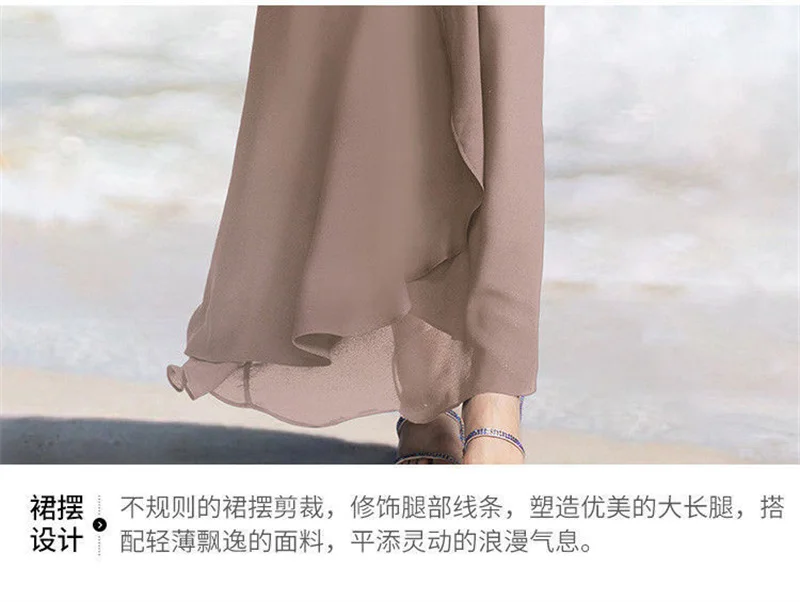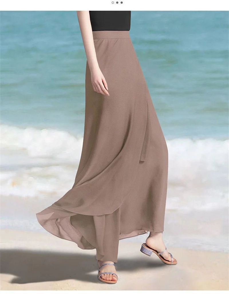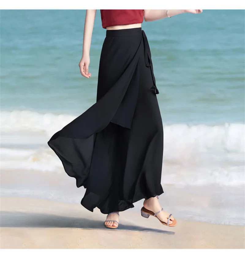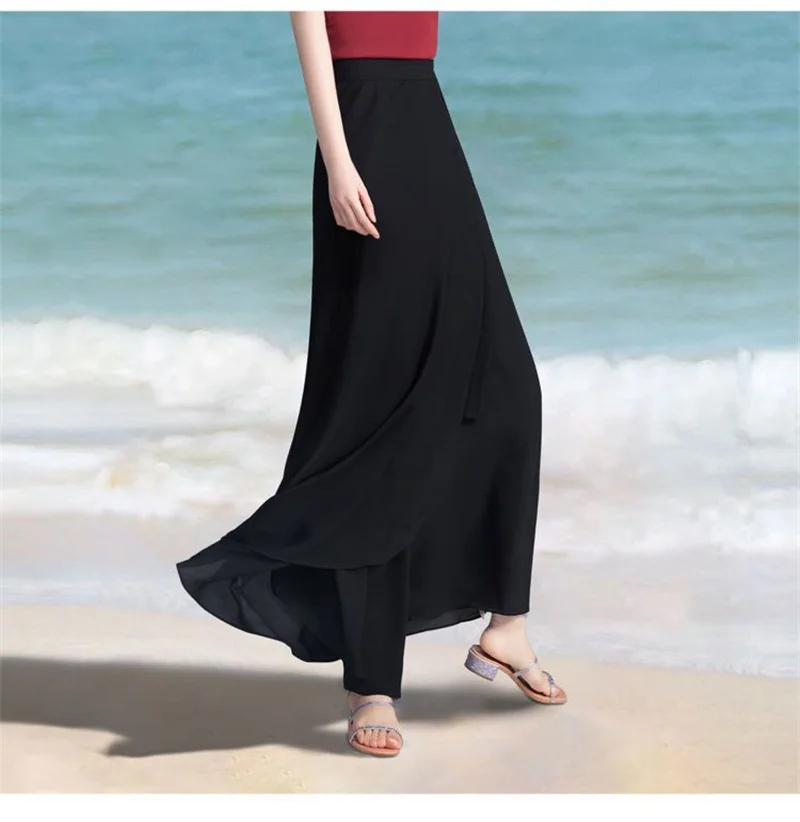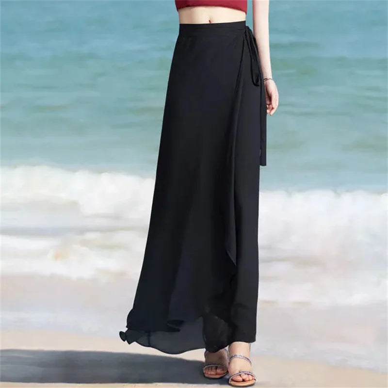 Lace-Up Summer Skirt Holiday style Chiffon Halfskin Skirt Women's 2023 Summer New Thin Dropping Long Wrapped Hip Skirt Khaki Bla