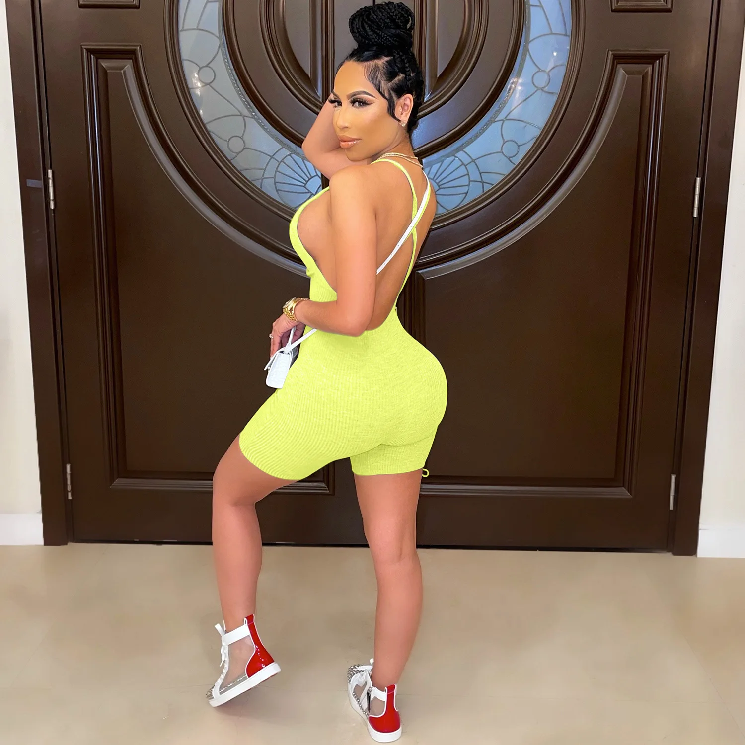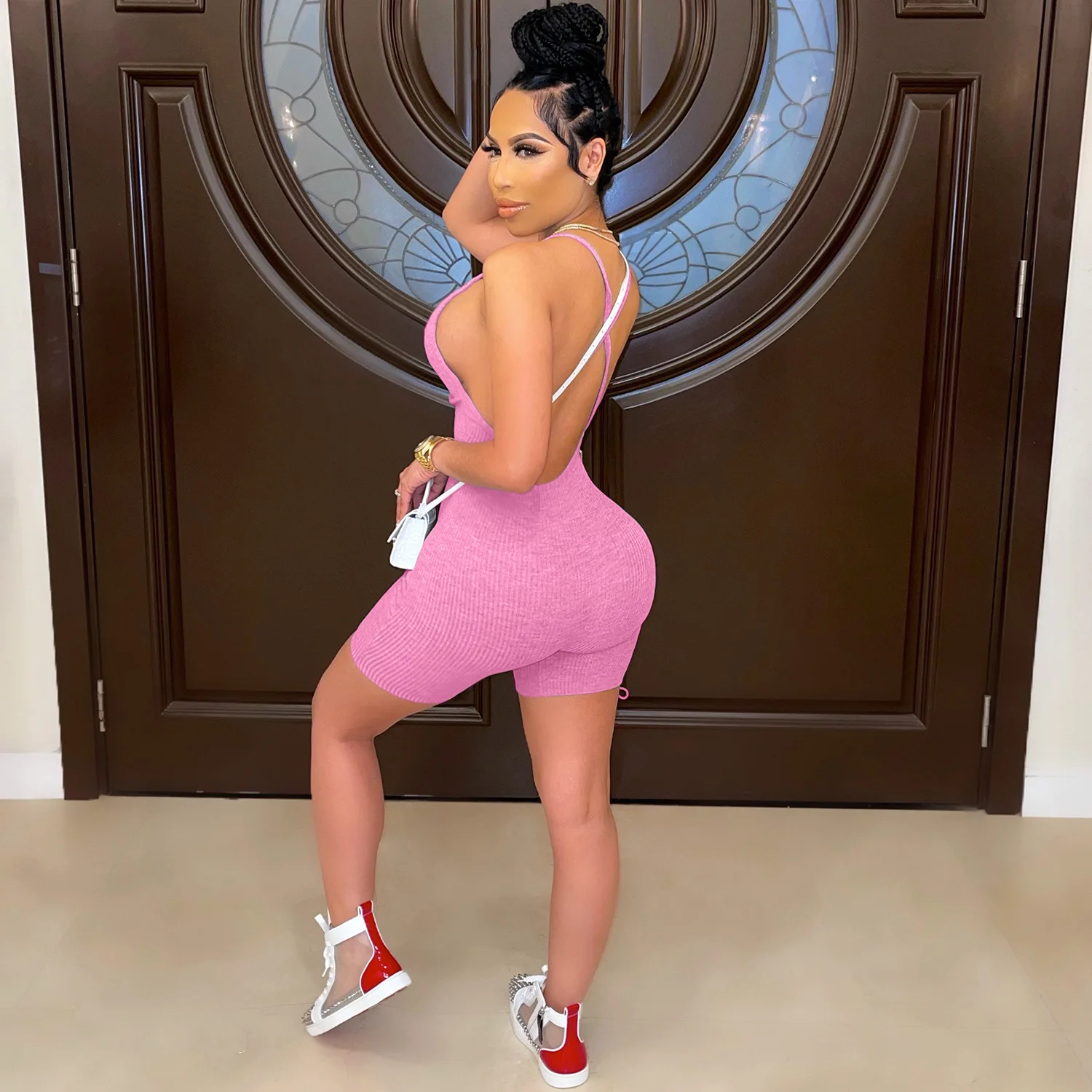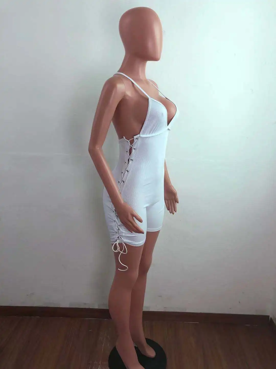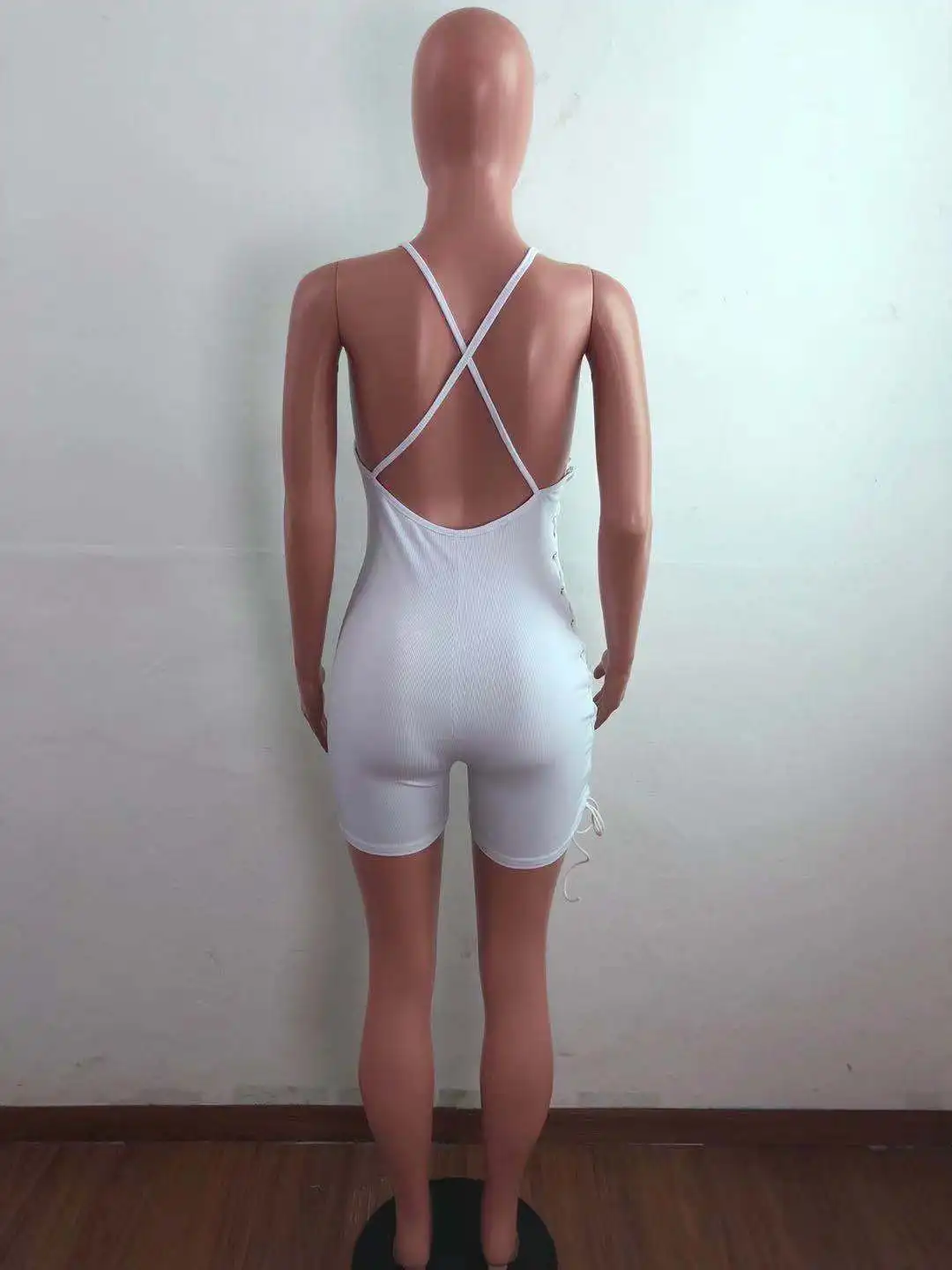 Laced Backless Romper Jumpsuit Shorts Ladies Workout Jumpsuits and Bodysuit Ribbed Halter One Piece Romper Short Jumpsuit