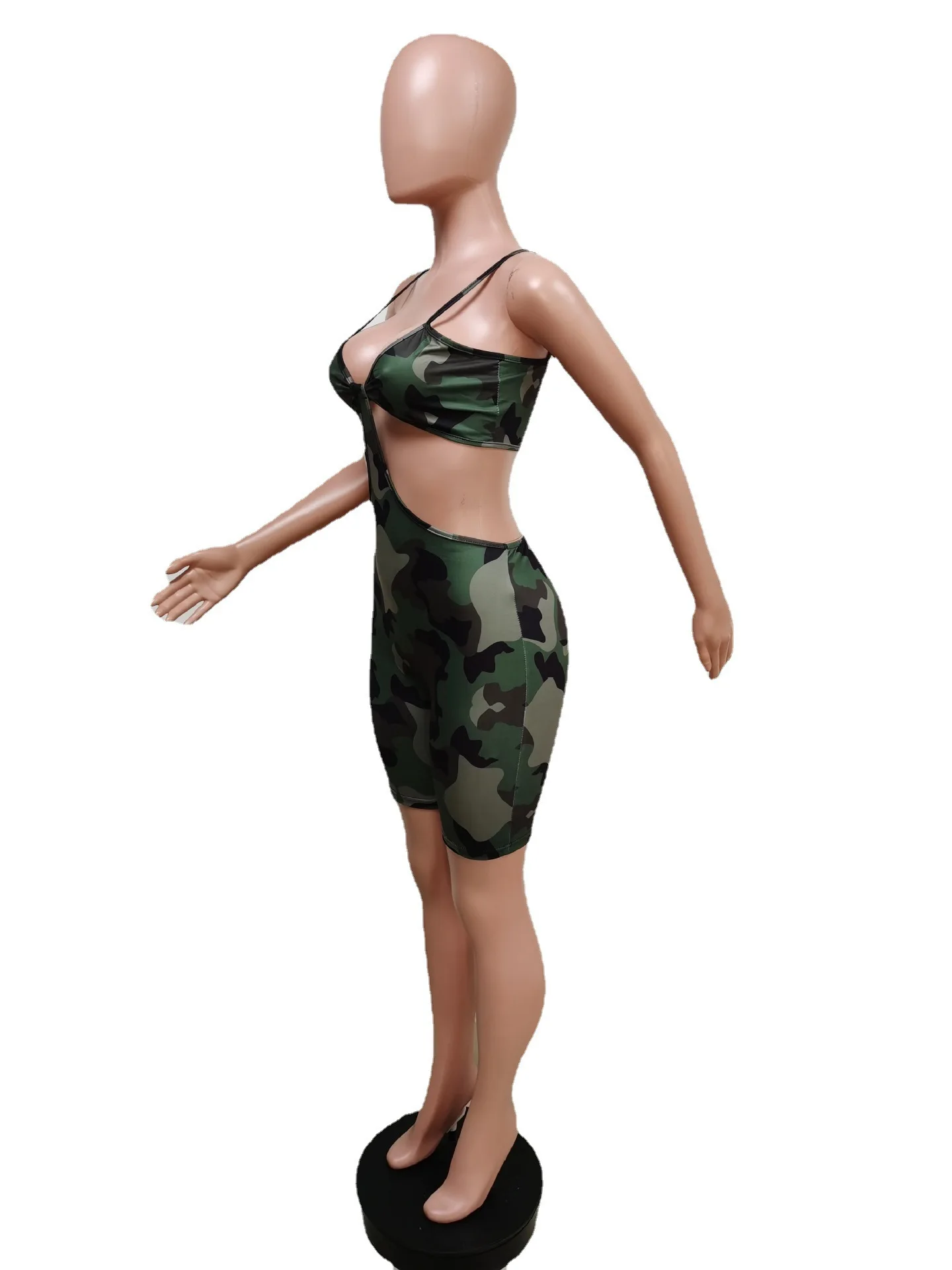 Ladies Bodycon One Piece Strap Jumpsuit Sexy Short Yoga Rompers Women Print Bodysuit Workout Sleeveless Summer Playsuits