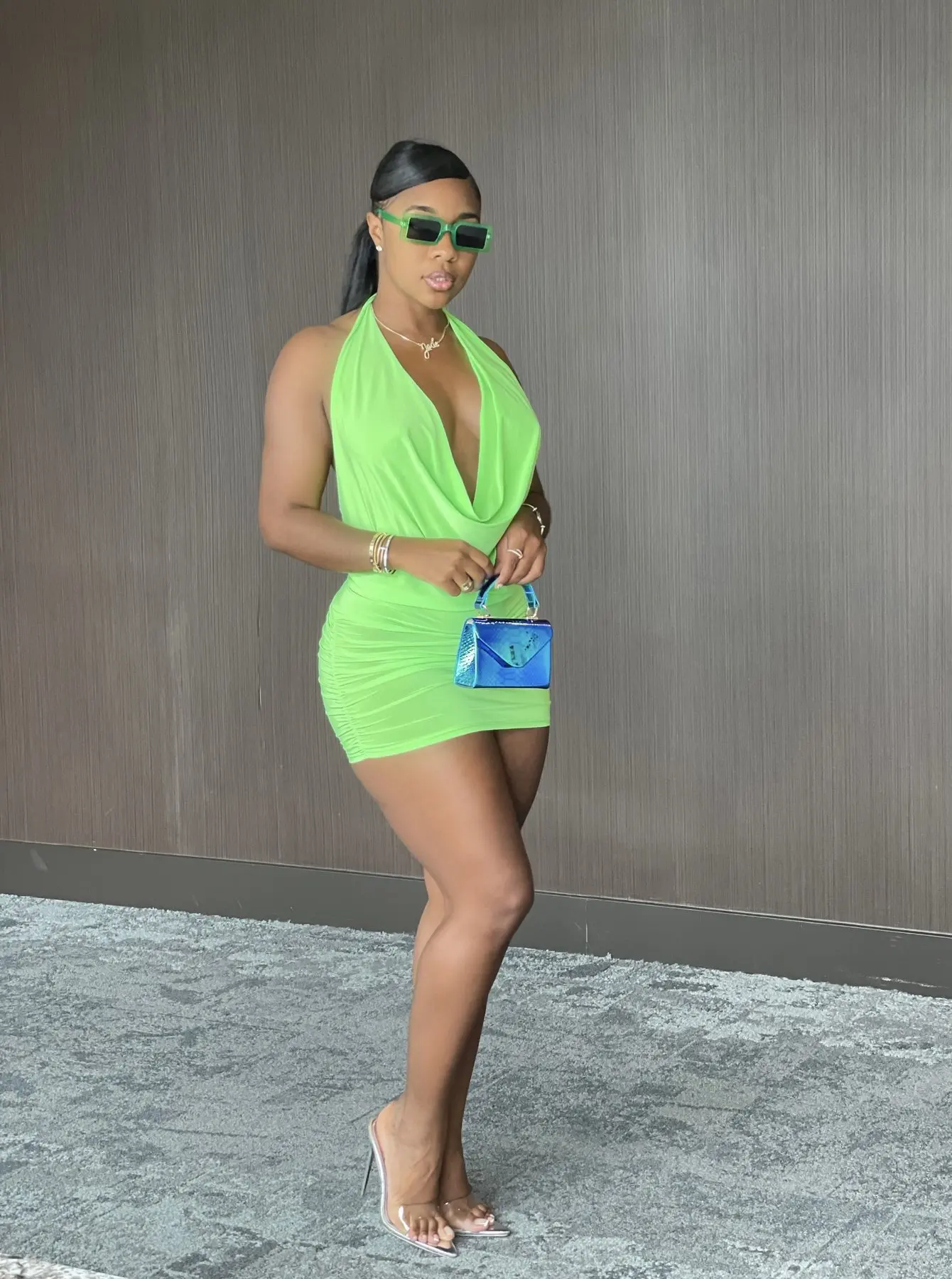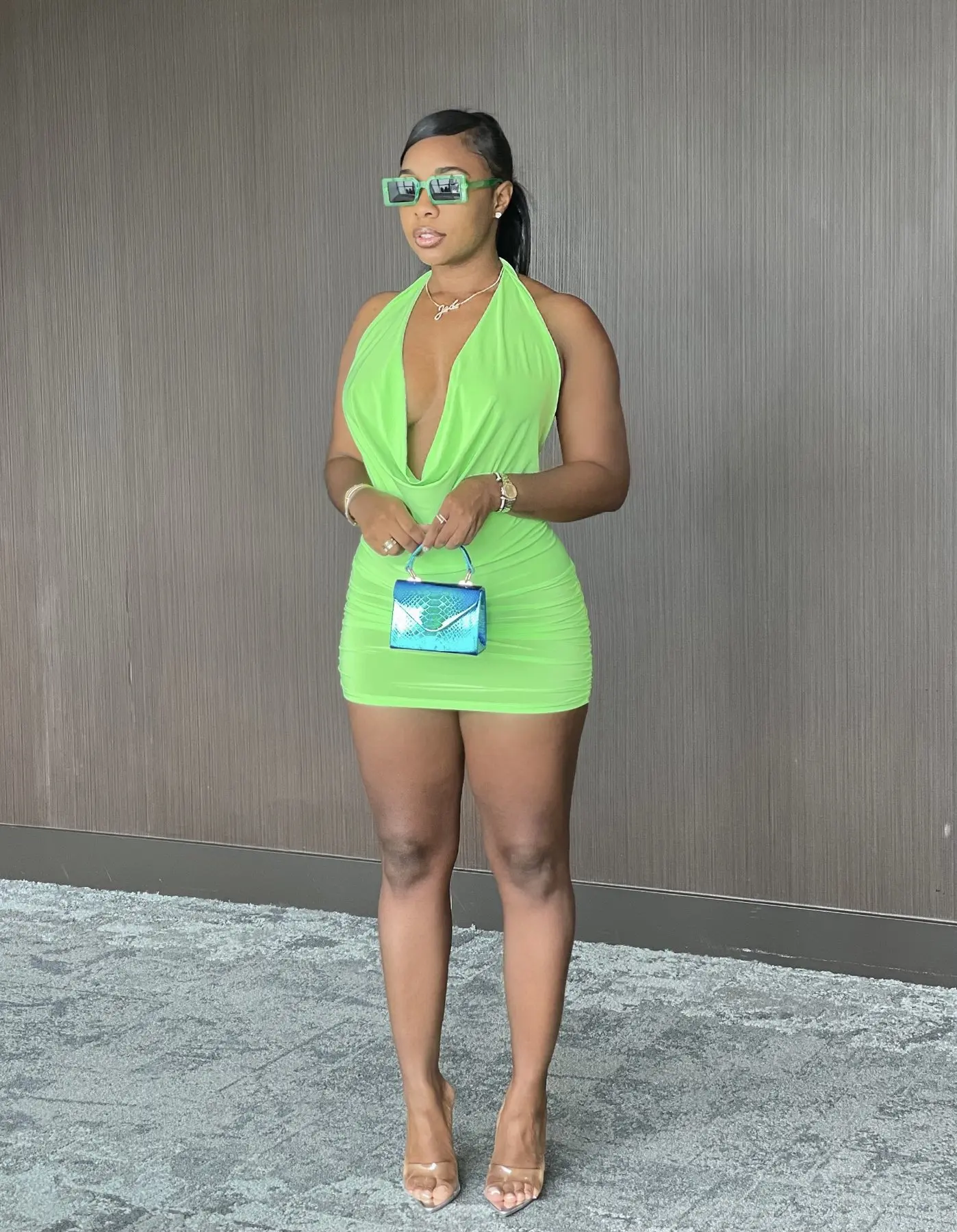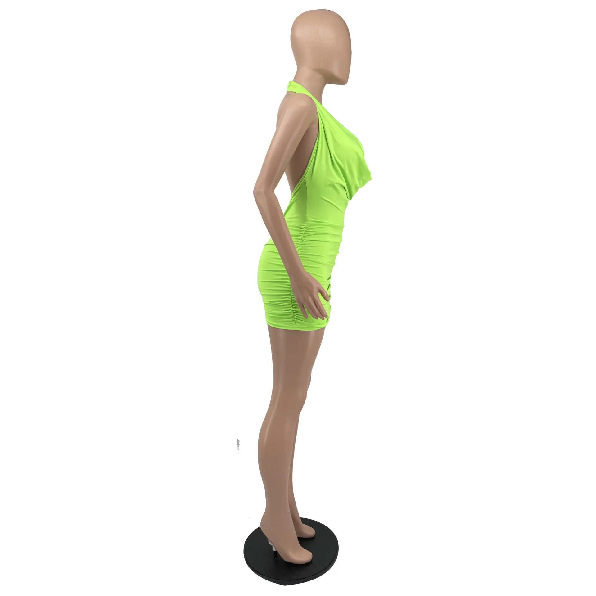 Ladies Casual Pleated Dresses Summer Club Night Dresses Halter Backless Sexy Deep V Neck Party Mini Women Dresses