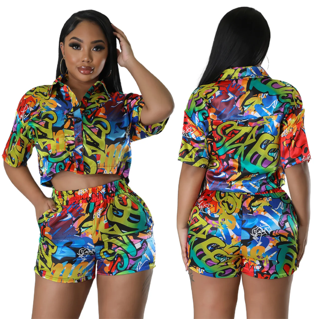 Ladies Casual Wear Short Sets for Women 2023 2 Piece Shorts and Shirt Set Street Crop Tops for Women Graphic Tee Shorts Set
