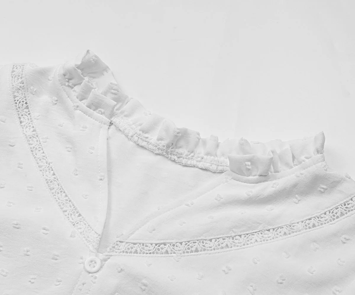 Ladies Chic Half Sleeve V Neck Fashion Shirts Elegant Office Wear Hollow Out White T-Shirt