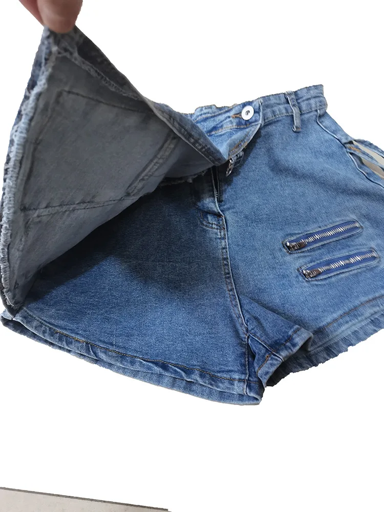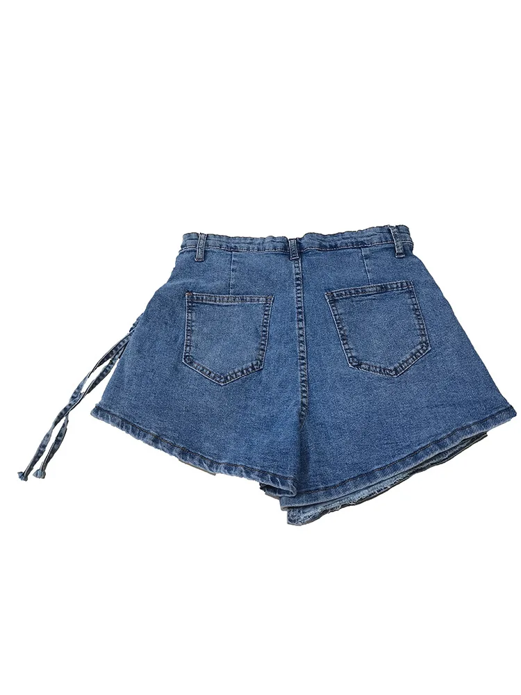 Ladies Elastic Jean Cargo Shorts Trending Summer Street Wear Woman Jeans Skorts Stylish Lace Up Denim Cargo skort for women