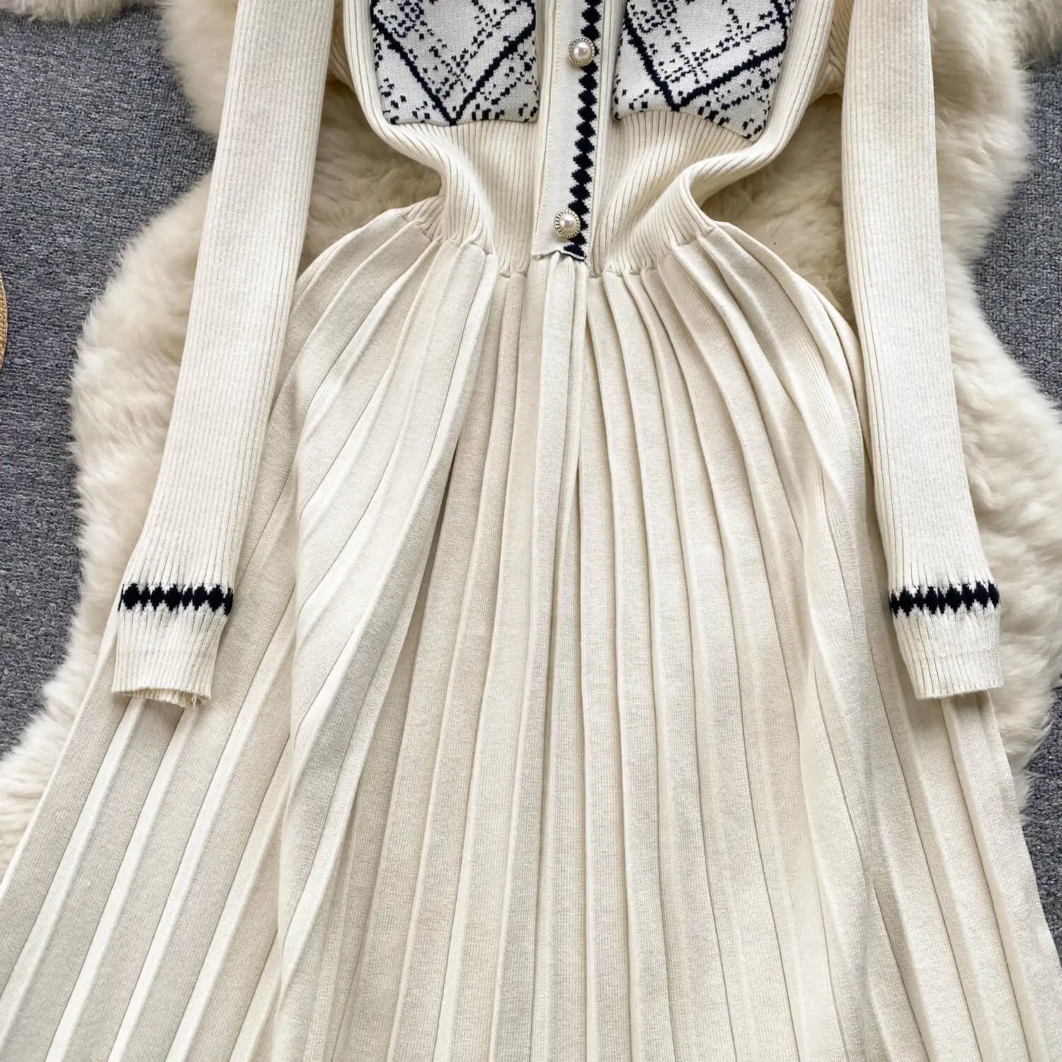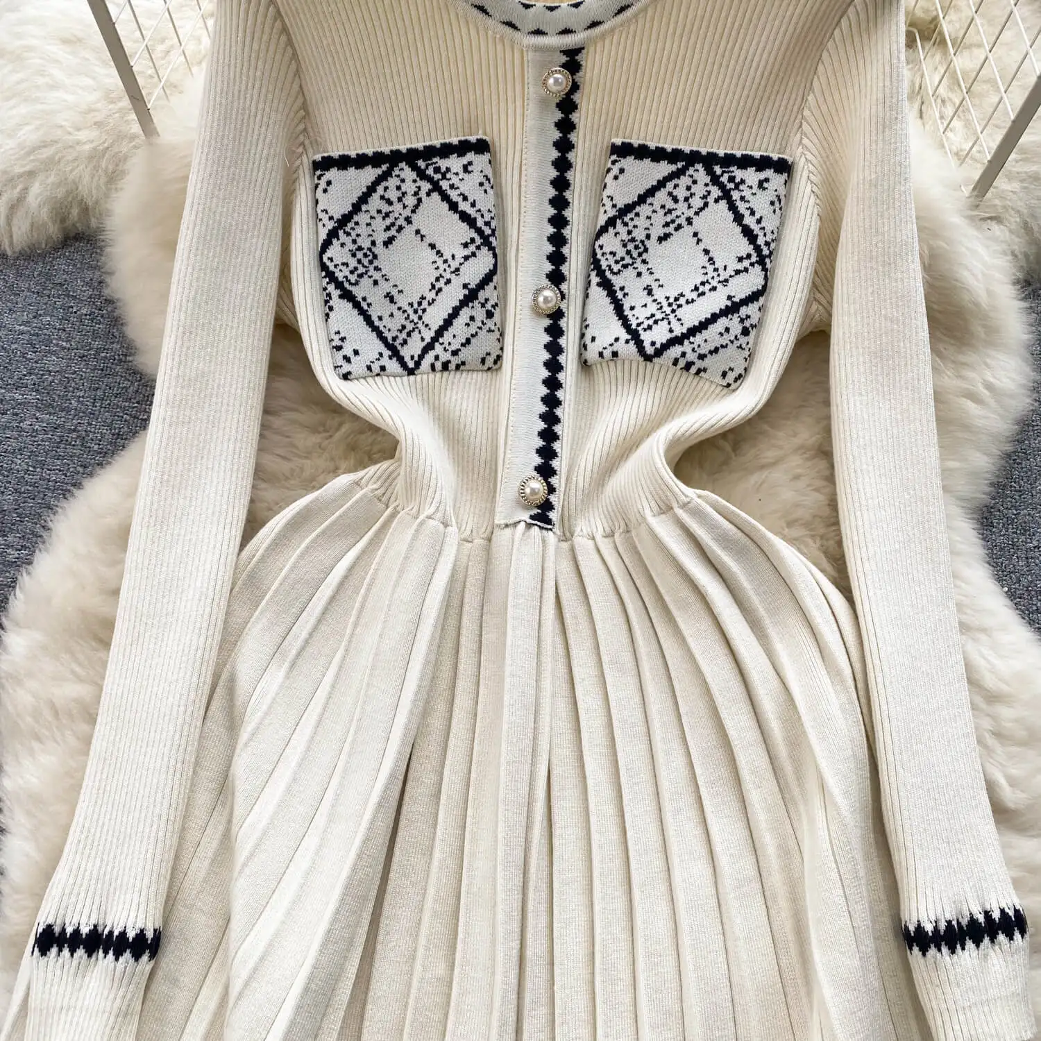 Ladies Long Sleeve Slim Fit Tight Collect Waist Loose Hip Sweater Dress