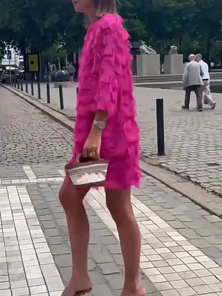 Ladies O Neck Long Sleeve Solid Color Party Dress Tassel Loose Streetwear Midi Dress Elegant Temperament High Waist Office Dress
