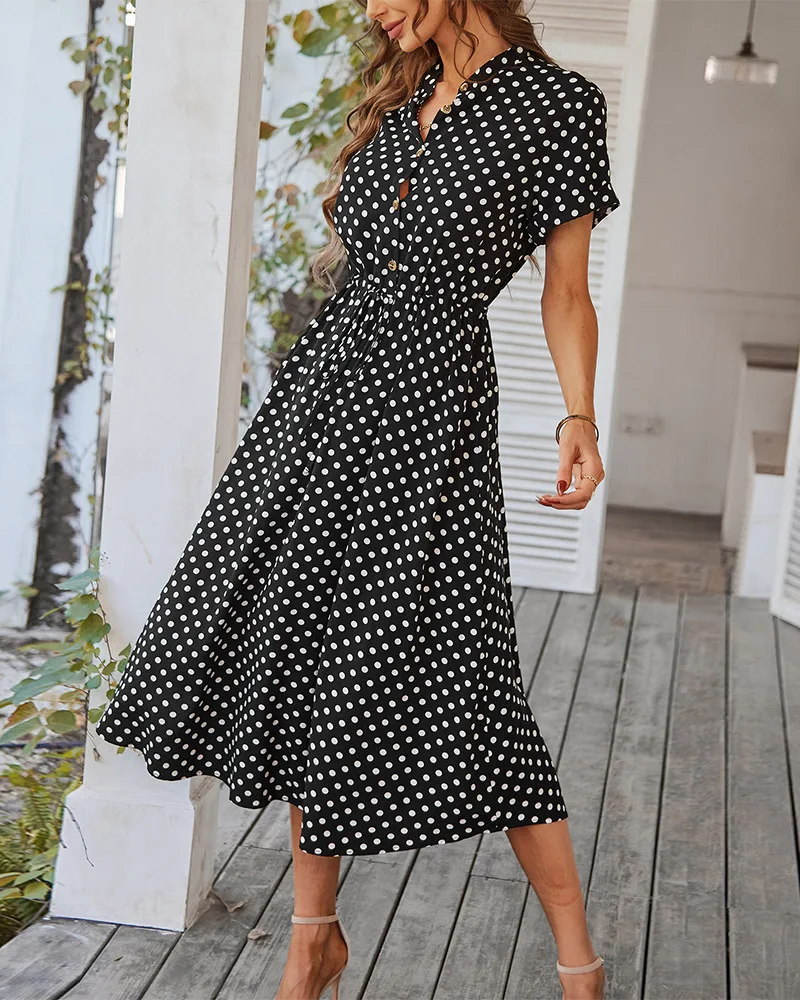Ladies Polka Dot Print Shirt Dress Women Casual Holiday Summer Short sleeve Loose Women Beach Dress