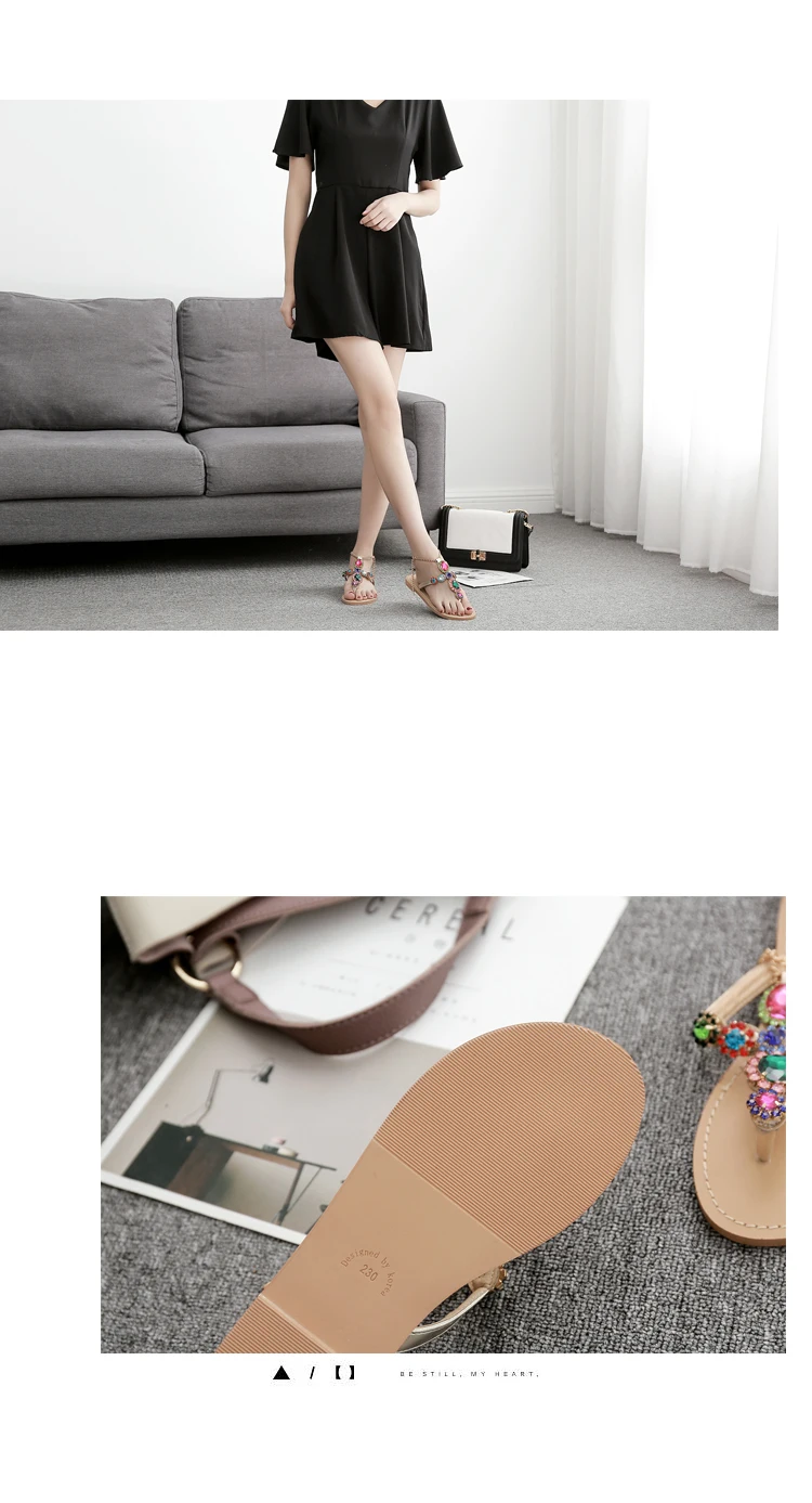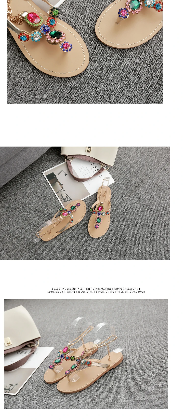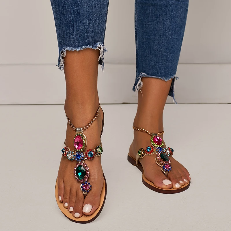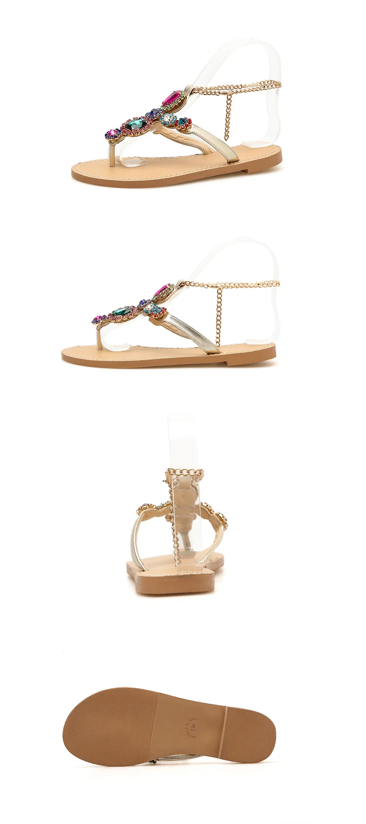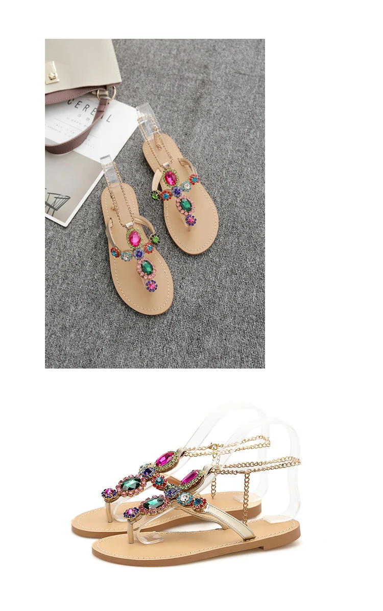 Ladies Sandals Chain Rhinestone Summer Shoes Ladies Beach Flat Sandals XL Flip Flops