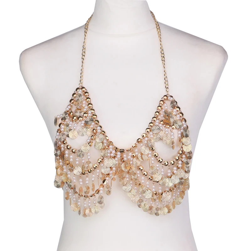 Ladies Sexy Bikini Pearl Chain Shiny Top Bottom Personality Sequined Tassel Body Chains