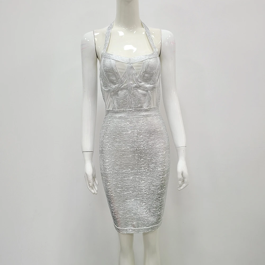 Ladies Sleeveless Sexy Bodycon Beading Rayon Bandage Fashion Cocktail Birthday Party Dress