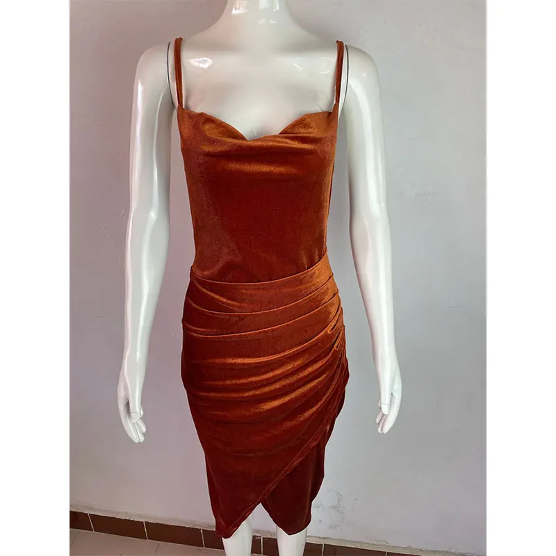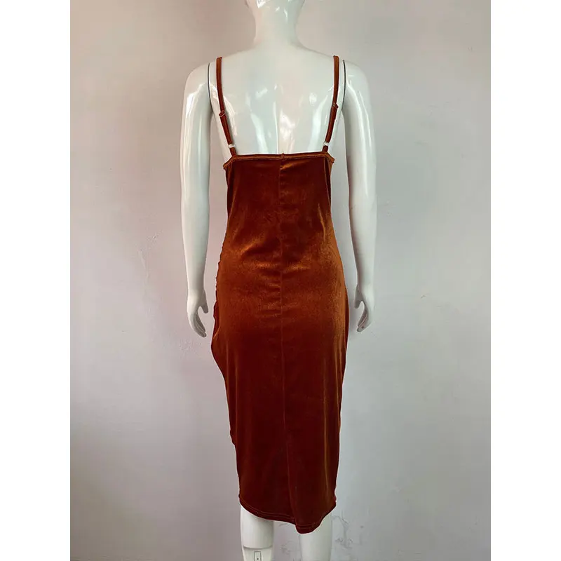 Lady Elegant Dress Skinny PartyTemperament Slit Folds Velvet suspenders Bodycon Evening Dress For Women