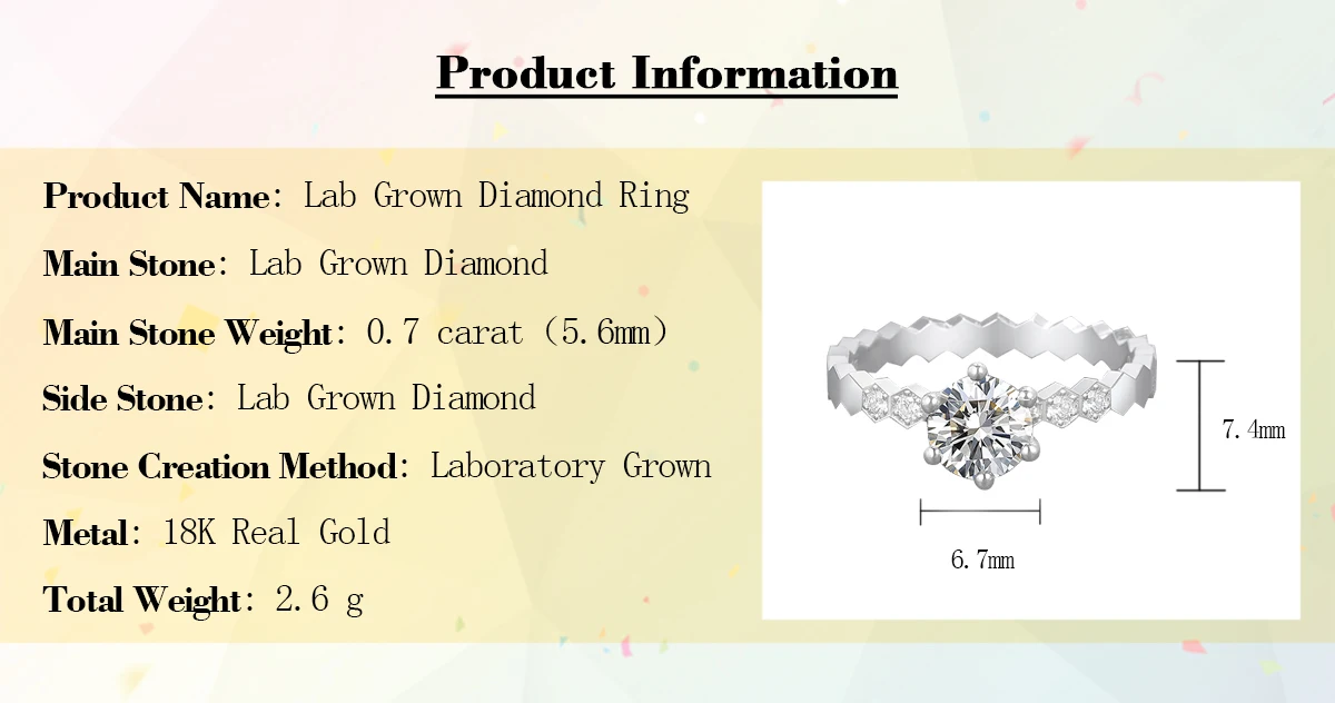 lady gem jewelry synthetic lab made hpht / cvd diamond 18k solid real gold wedding ring