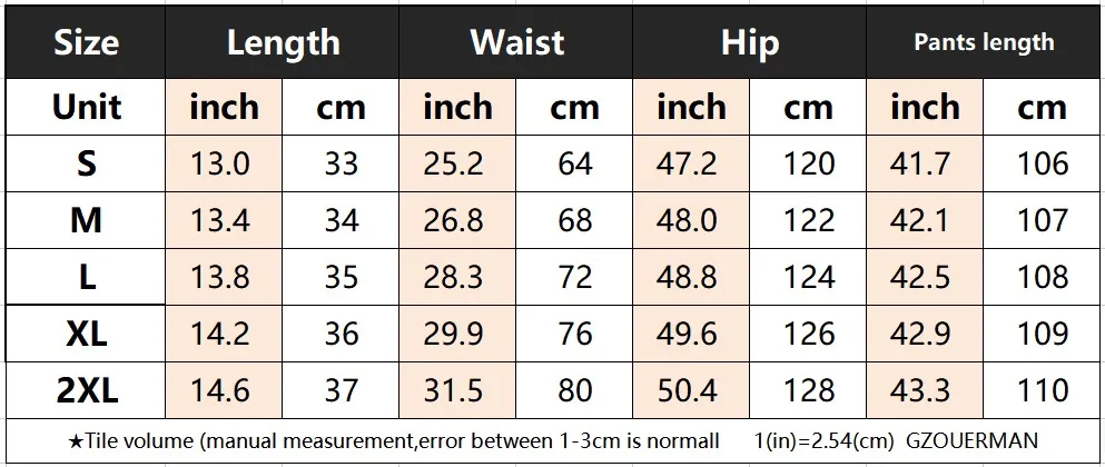 1.Please allow 1-3cm deviation due to manual measurement. 2.Measure the clothes you usually wear but not measure your body to choose size. 3.Choose the right size according to your own measurements combined with our size chart. Attention:Due to the effect of different monitors and cameras, the goods may look a little bit different from pictures shown online. GZOUERMAN |
