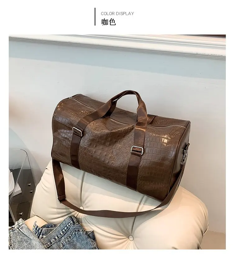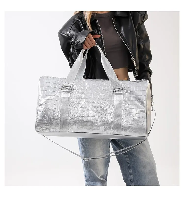 Large Capacity Crocodile Travel Bags Unisex PU Leather Shoulder Bag Business Luggage Bags Trolley Storage Tote For Women Men