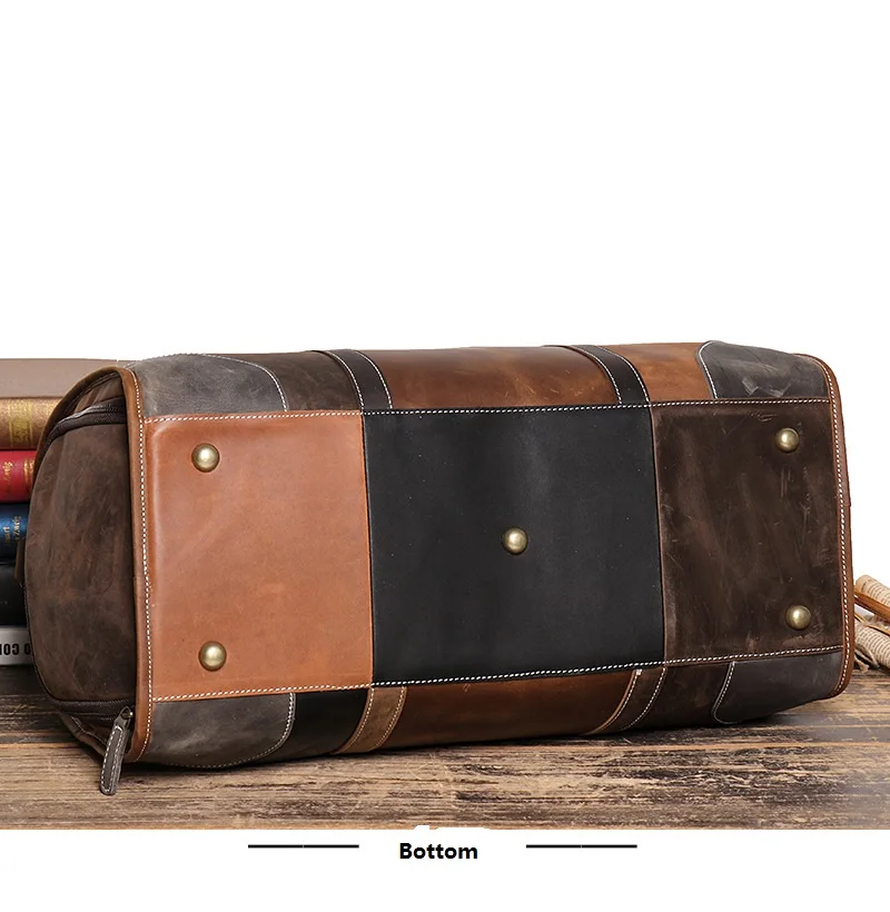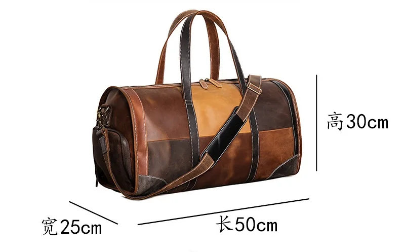 Large Vintage Genuine Leather Women Men Travel Bag Business Male Duffle Bag High Quality Patchwork