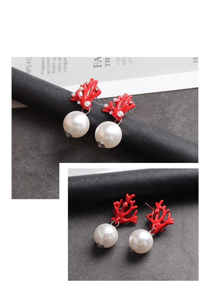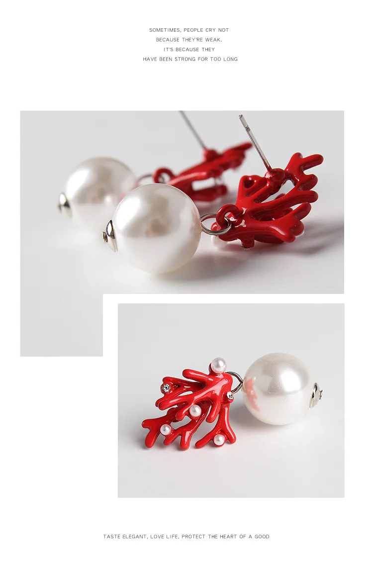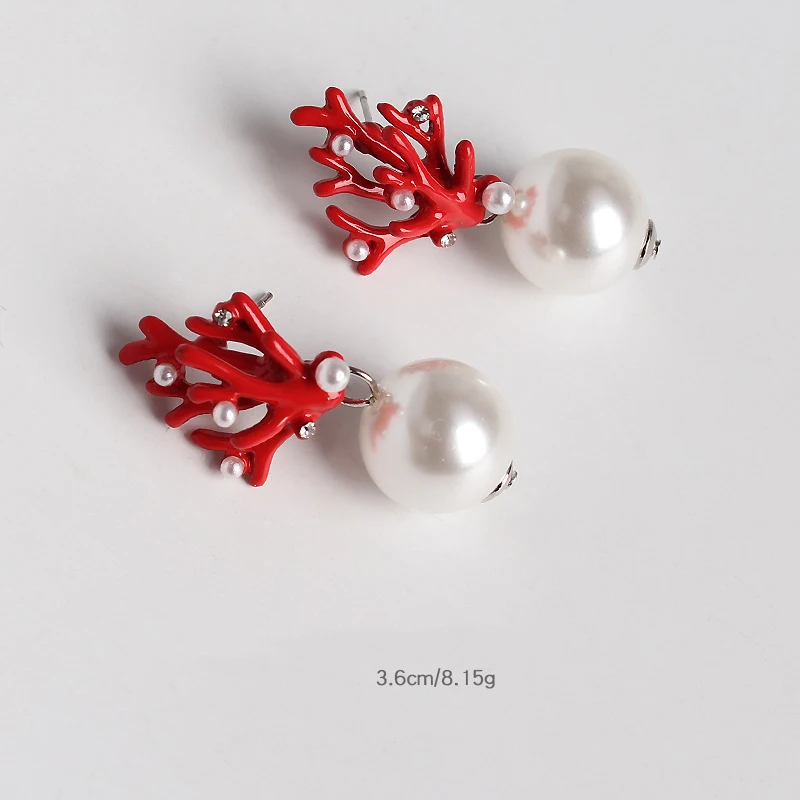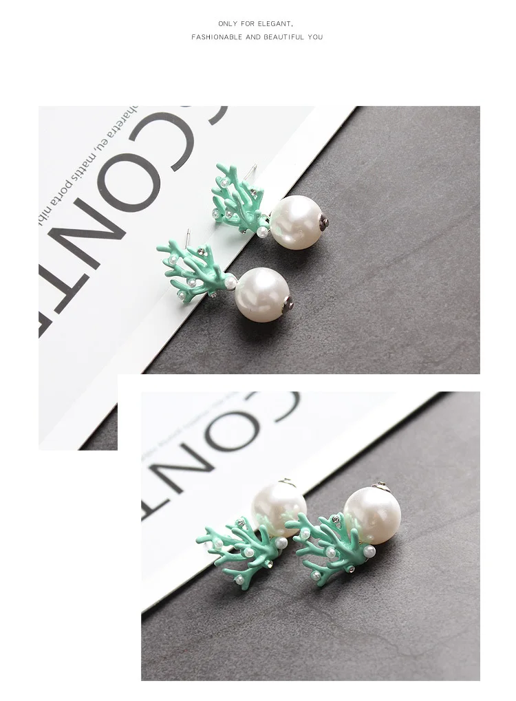Lateefah OEM Drop Shipping Colorful Coral Shape Gold Pearl Statement Earrings Jewelry Women