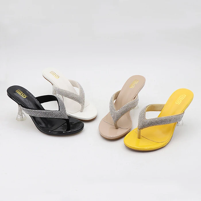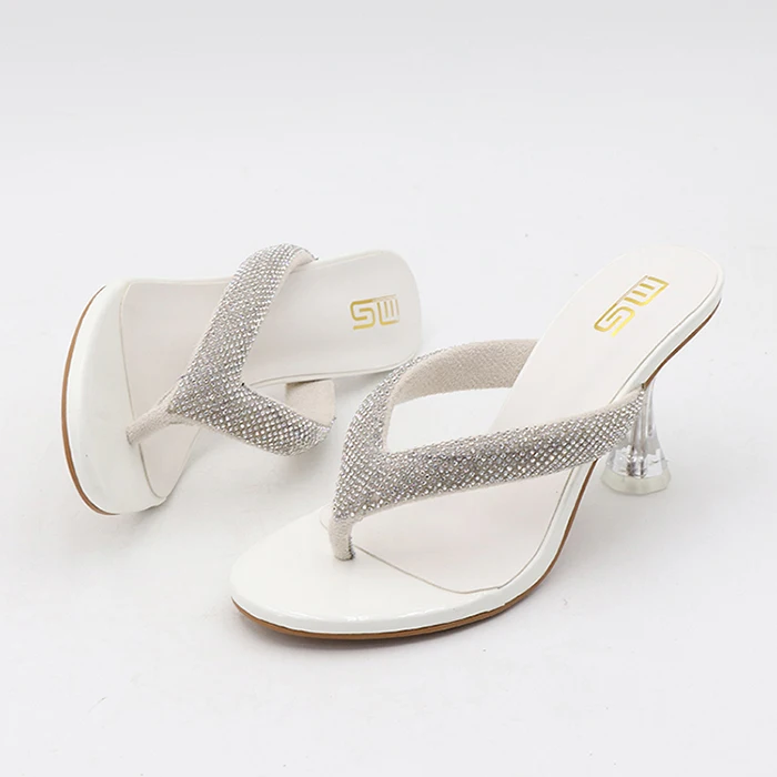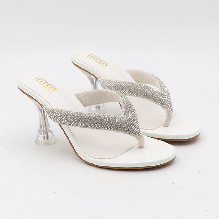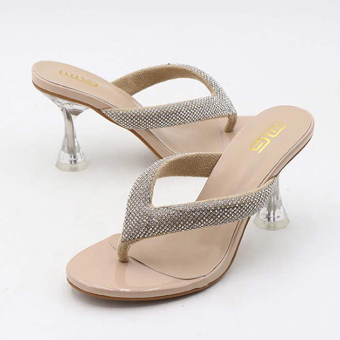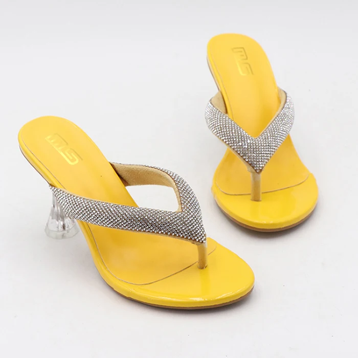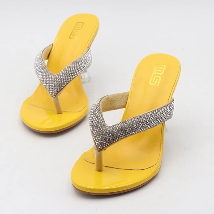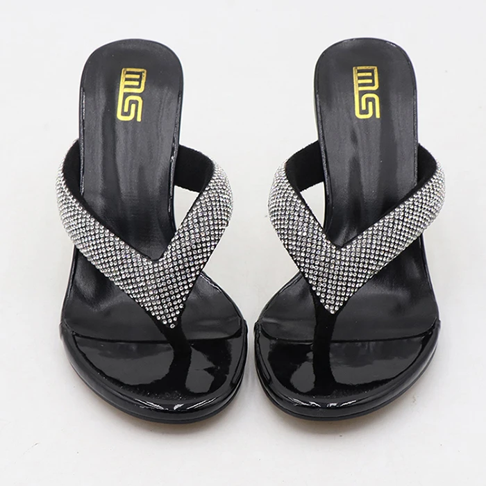 Latest Big Size 42 Party Women Shoes Crystal Heels Solid Color Slippers Outdoor Sandals Diamond Female Flip-Flops Heeled Sandals