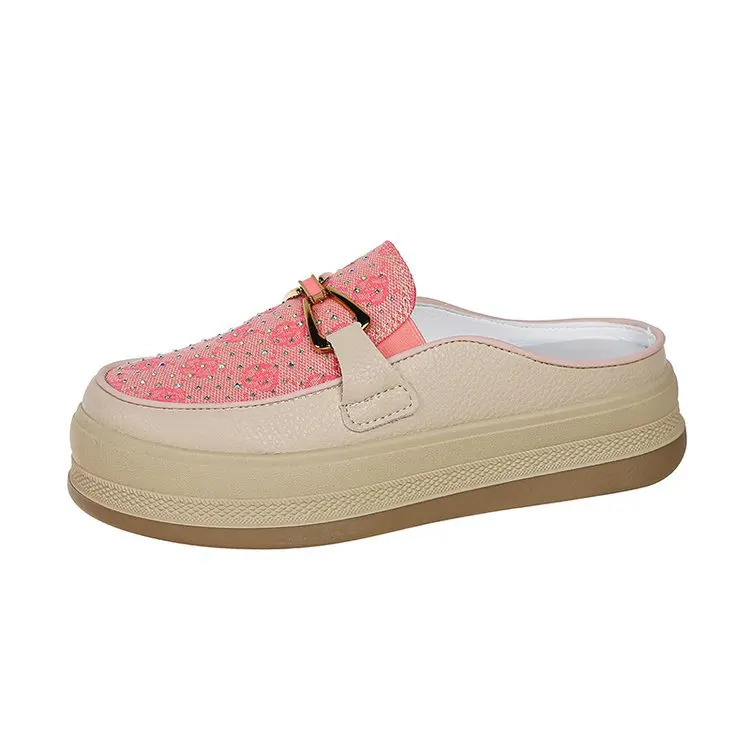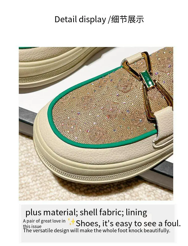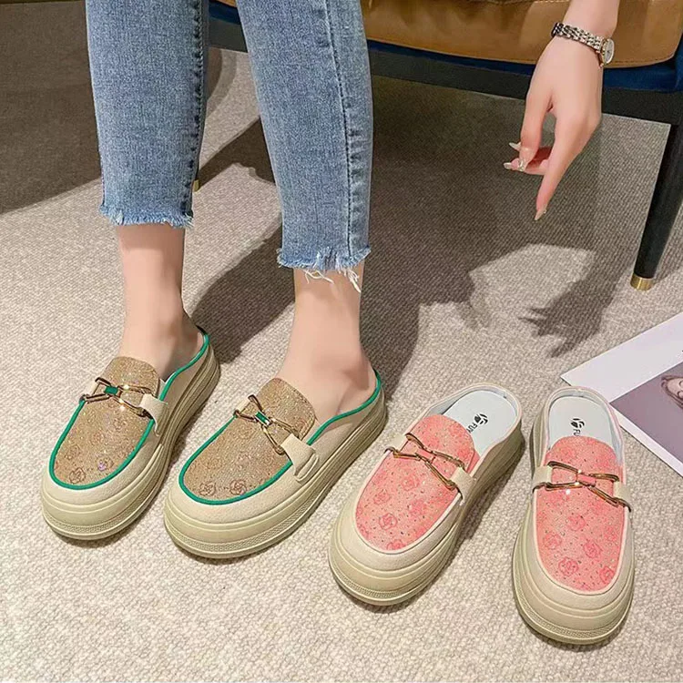 Latest Design Women Casual Flat Low Cut Canvas Shoes Metal Chain Slip-on Shoes Women winter designer slippers