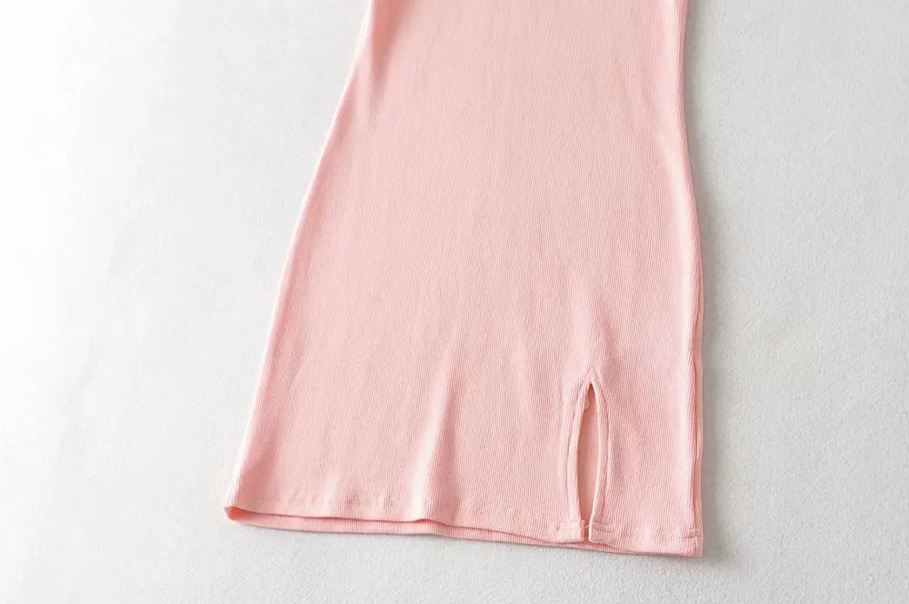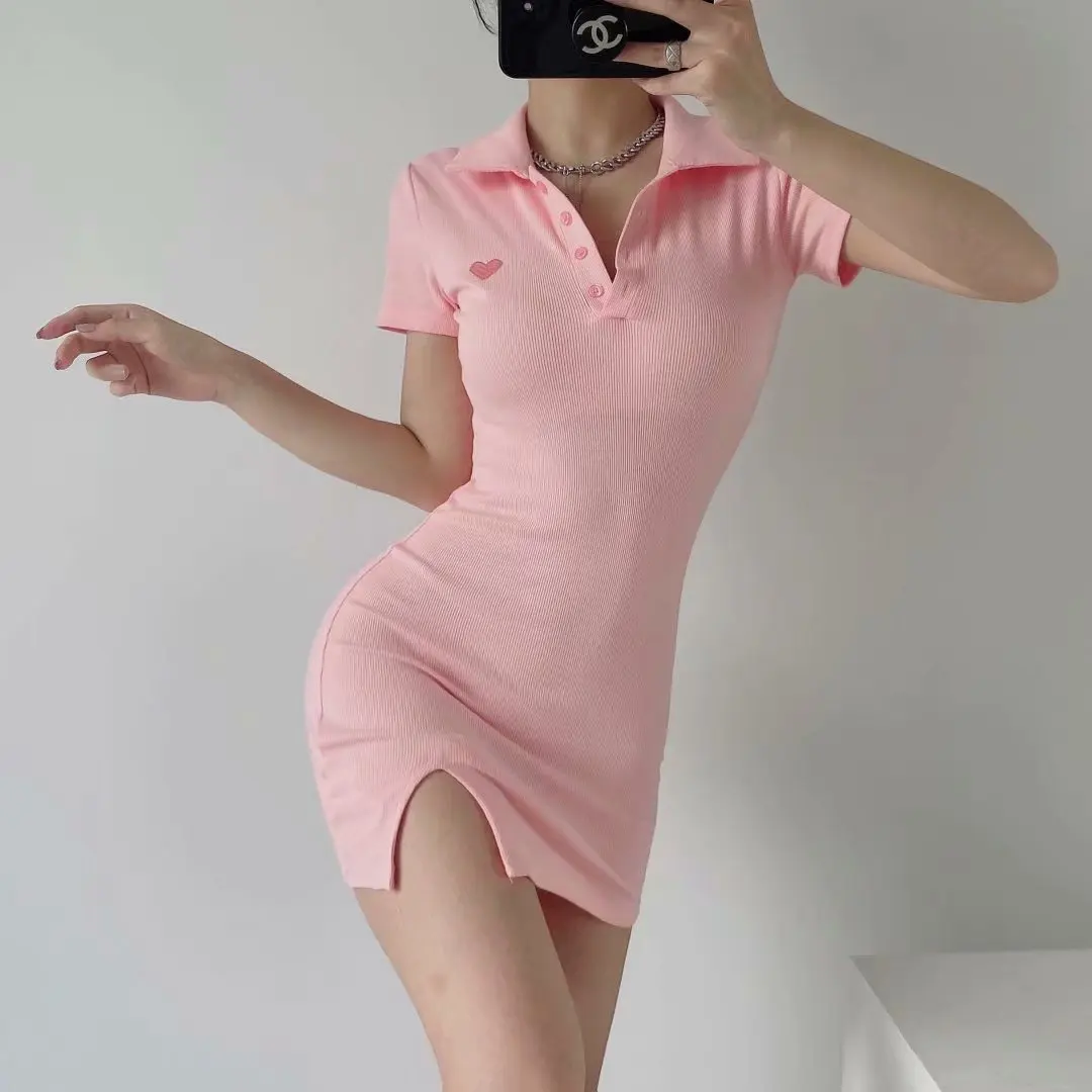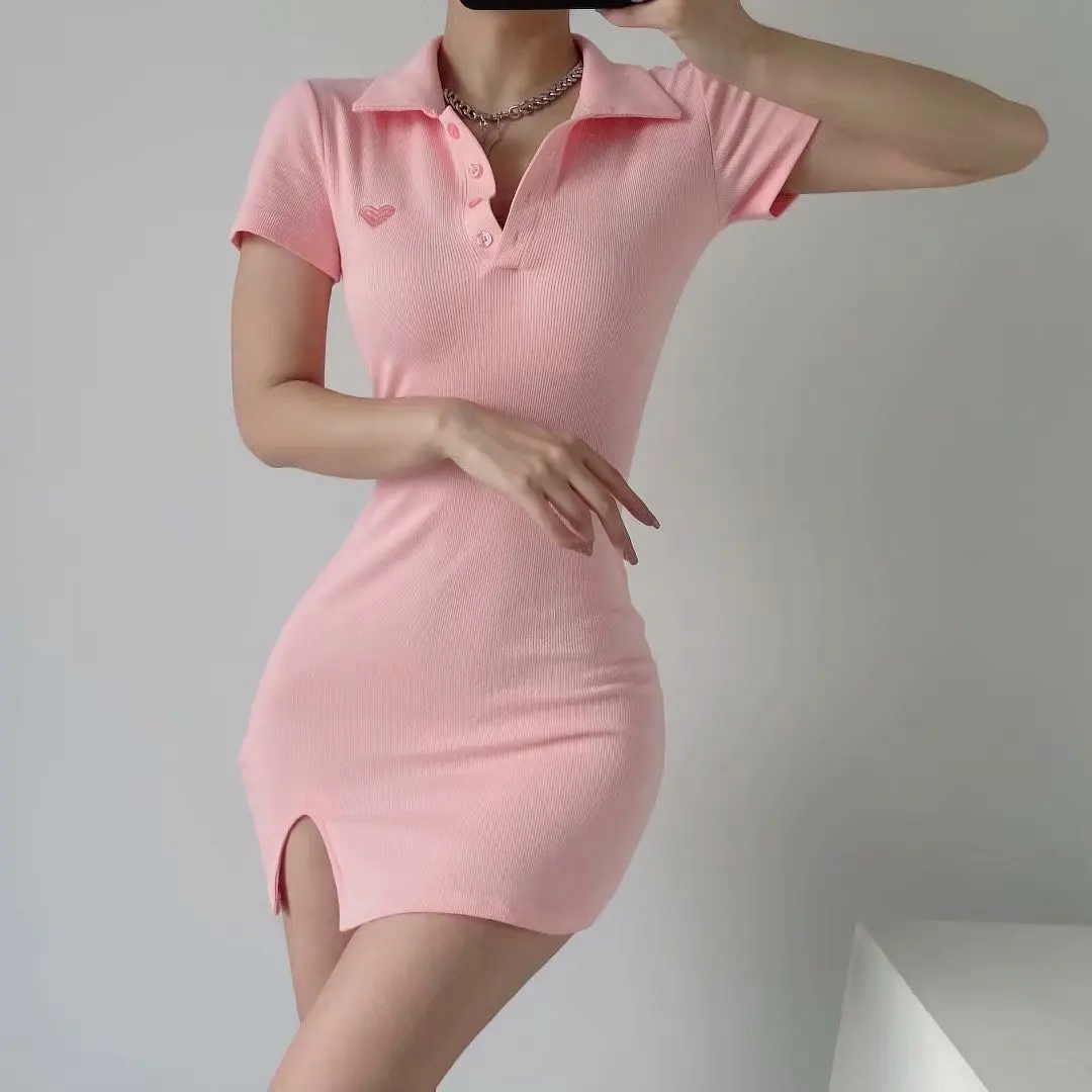 Latest Designs Summer Solid Print Stand Collar Button Bodycon High Slit Casual Dresses Women