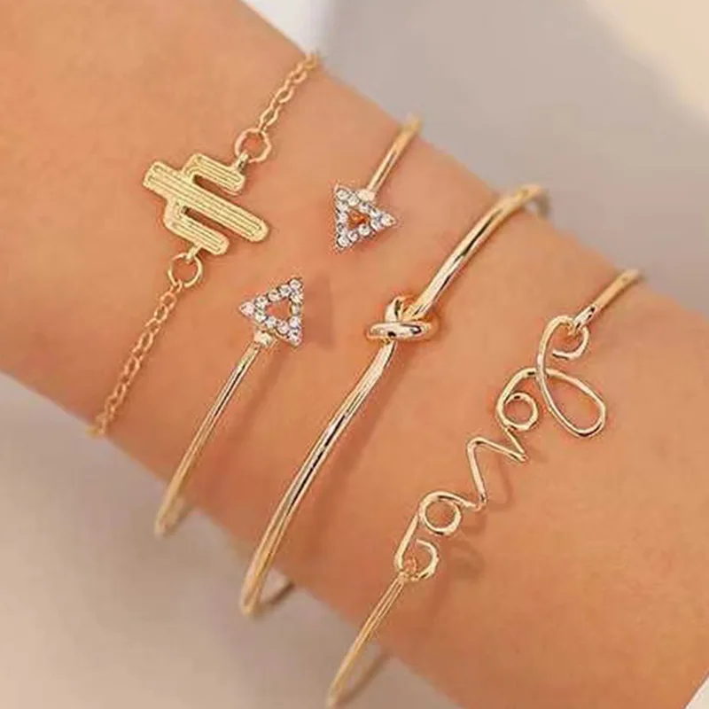 Latest Fashion In 2024 Diamond Bracelet Versatile And Vintage Letter Charms For Bracelets 4-Piece Set Women's Open Bracelet