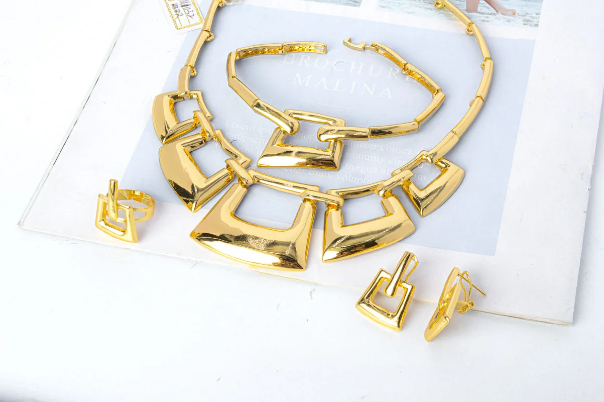Latest Luxury Brazilian Gold Wedding Jewelry Set Italian 24 Carat Gold Plated Bridal Exaggerate Big Jewelry Sets
