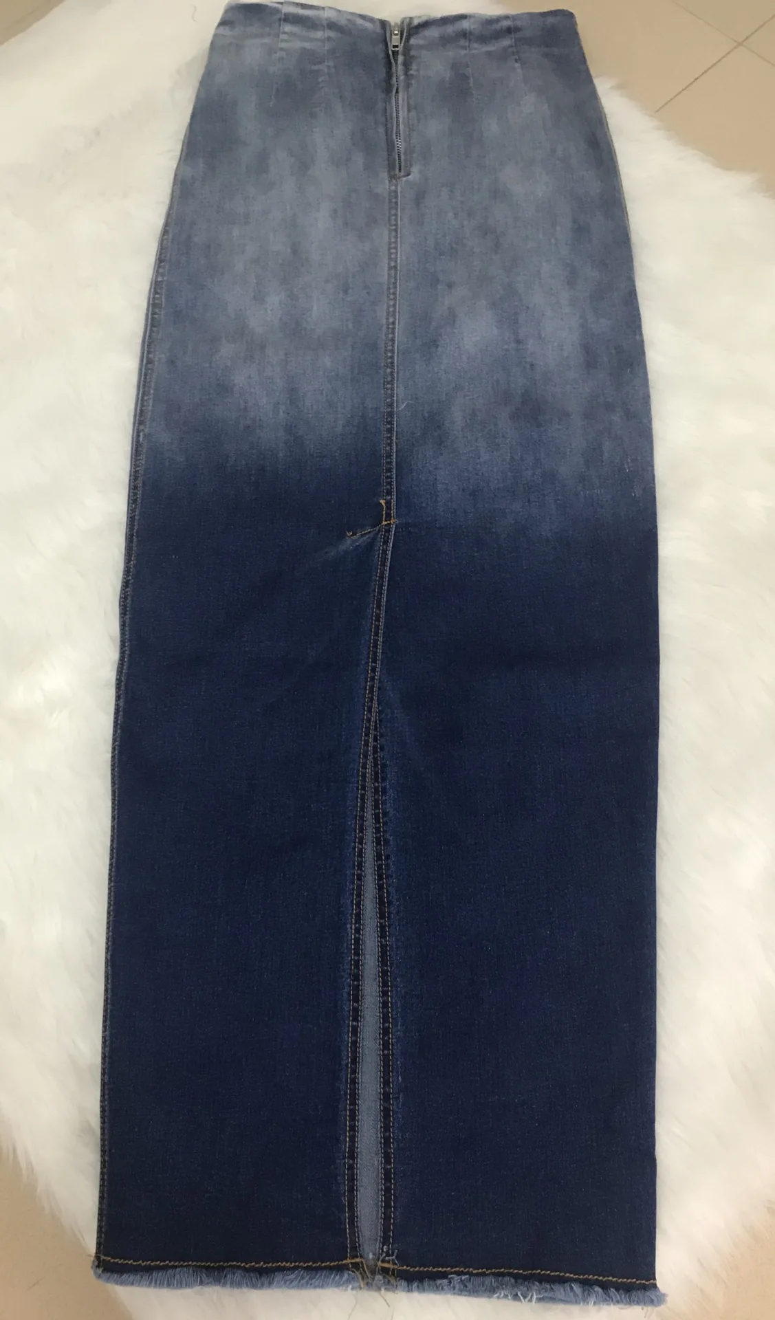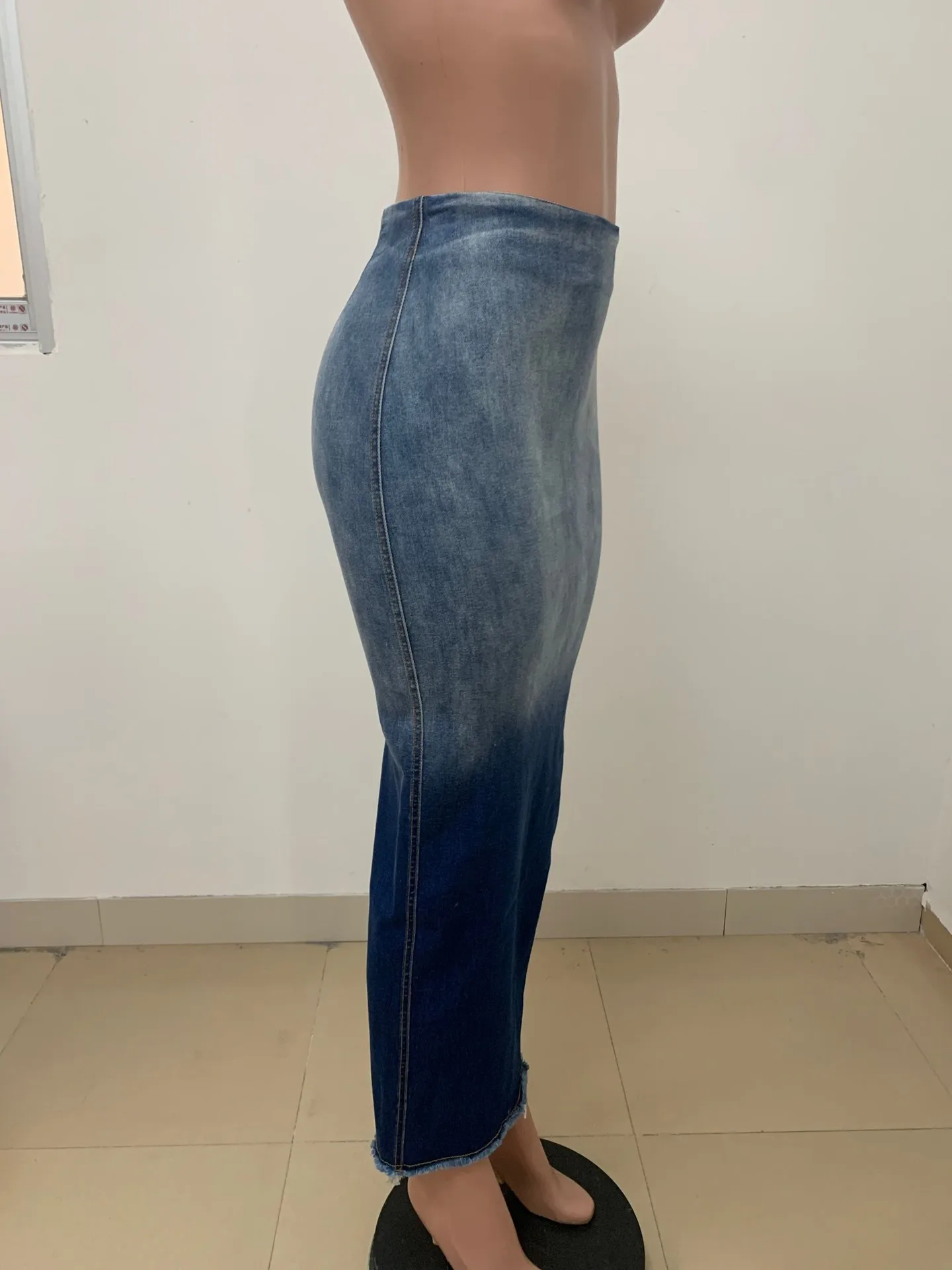 LD1386 2024 New Fall Women Clothes Fashion Slit-fringed Denim Skirt Sexy Denim Bodycon Gradient Women's Skirts