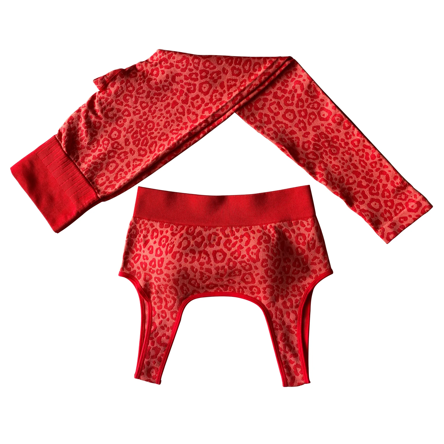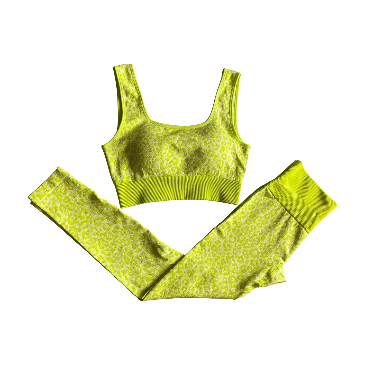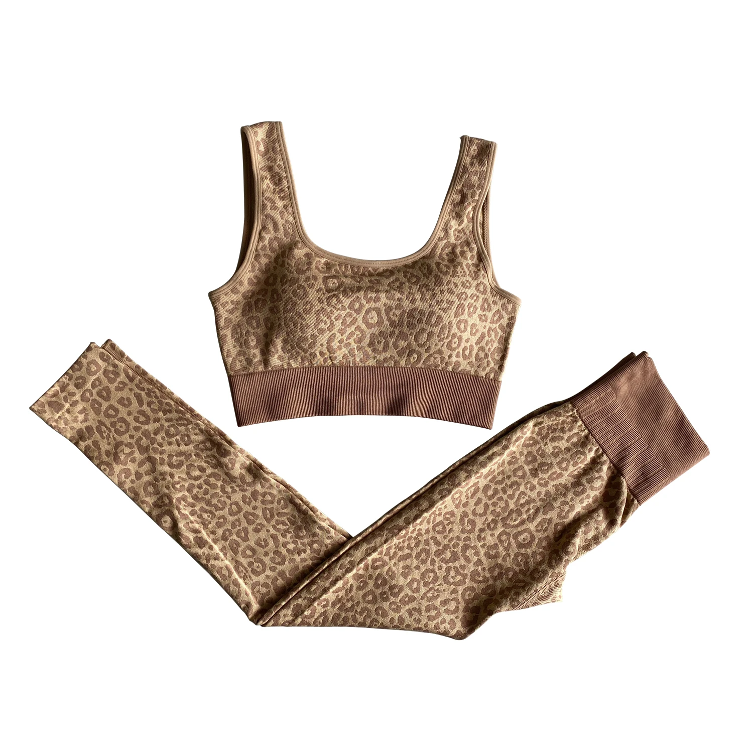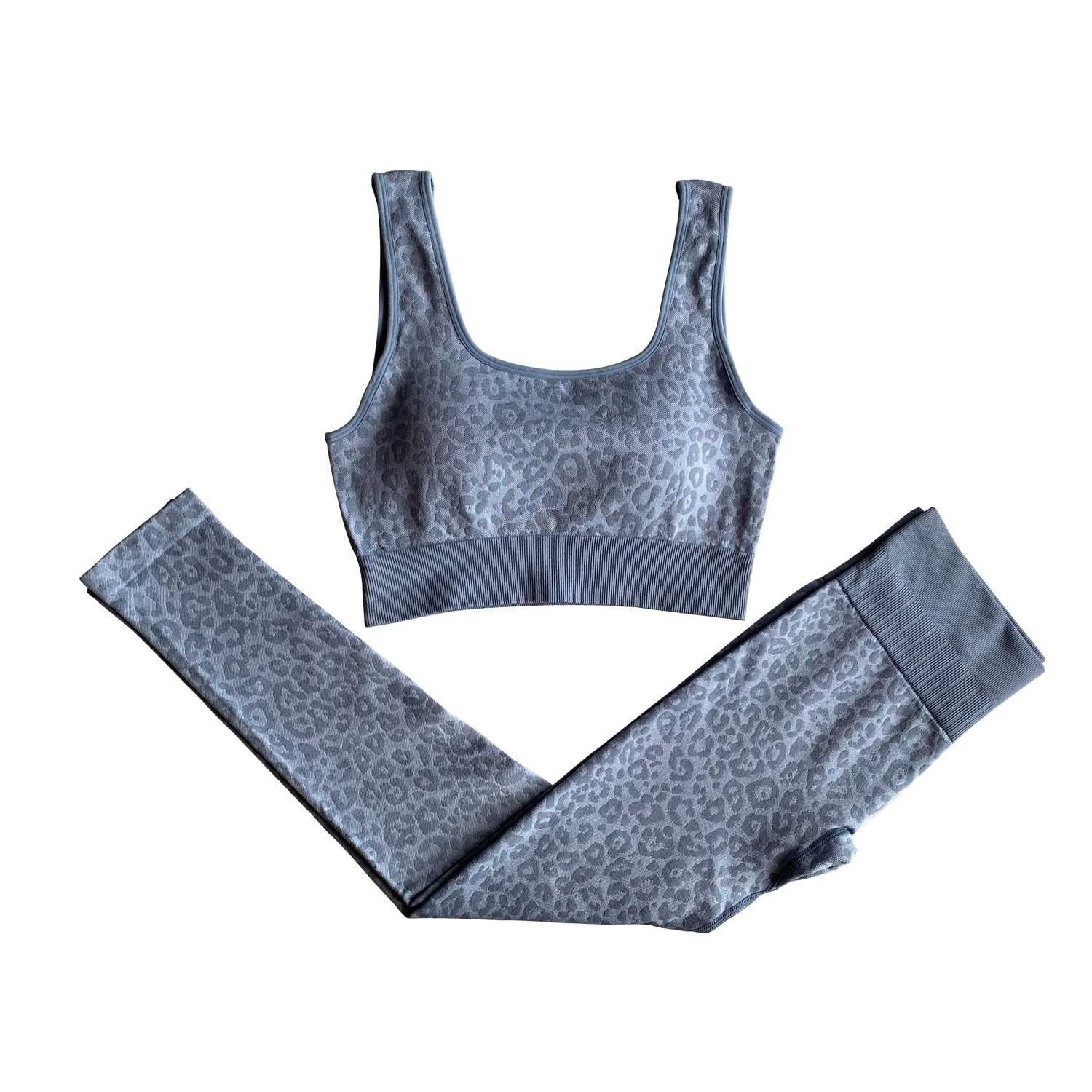 Leopard Embossed Women High Waist Sport Yoga Pants Shiny Yoga Activewear Leggings Compression Workout Sportswear Gym Fitness Set