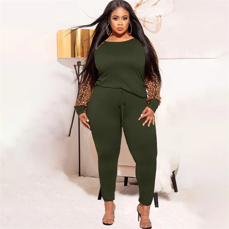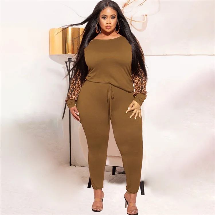 Leopard Print Contrast Color Fashionable Casual Two Piece Plus Size xxxxl Women's Suit Two Piece Set For Ladies