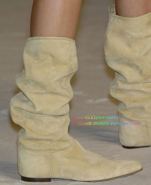 Light Yellow Flat Knee High Boot Women Round Toe Slip On Casual Sexy Fashion Show Long Boot Ladies Suede Comfort Newest Shoes