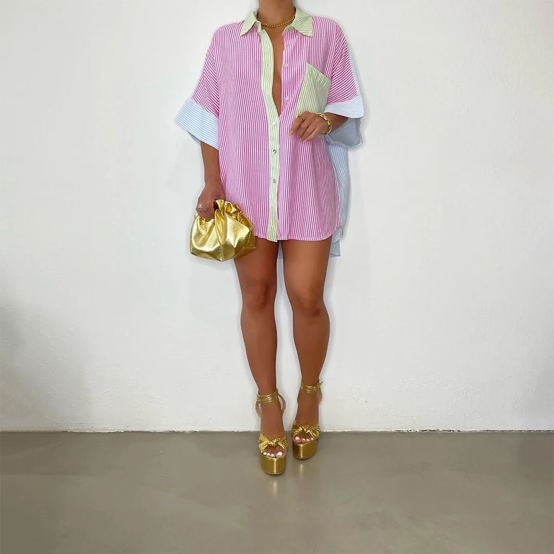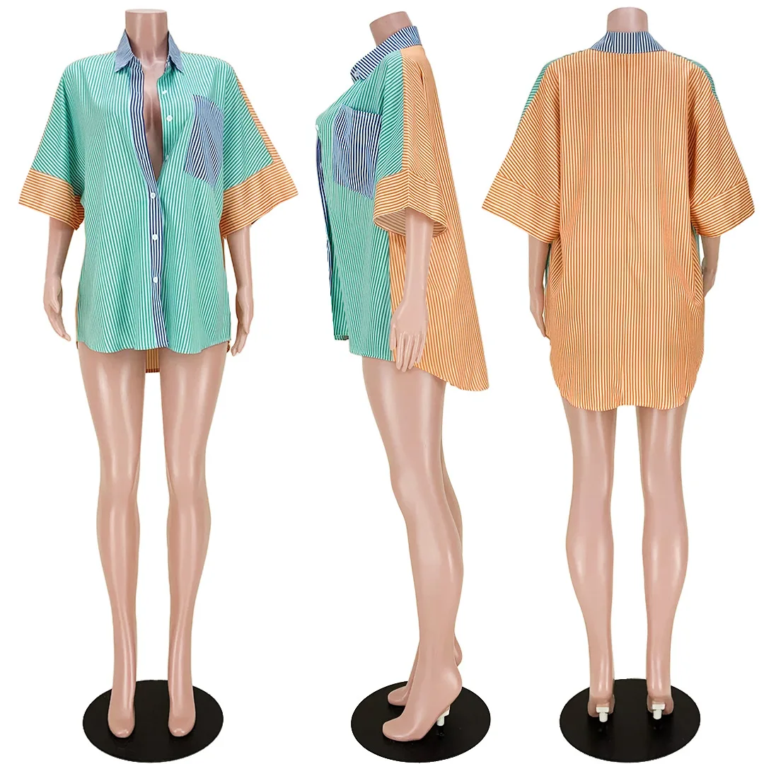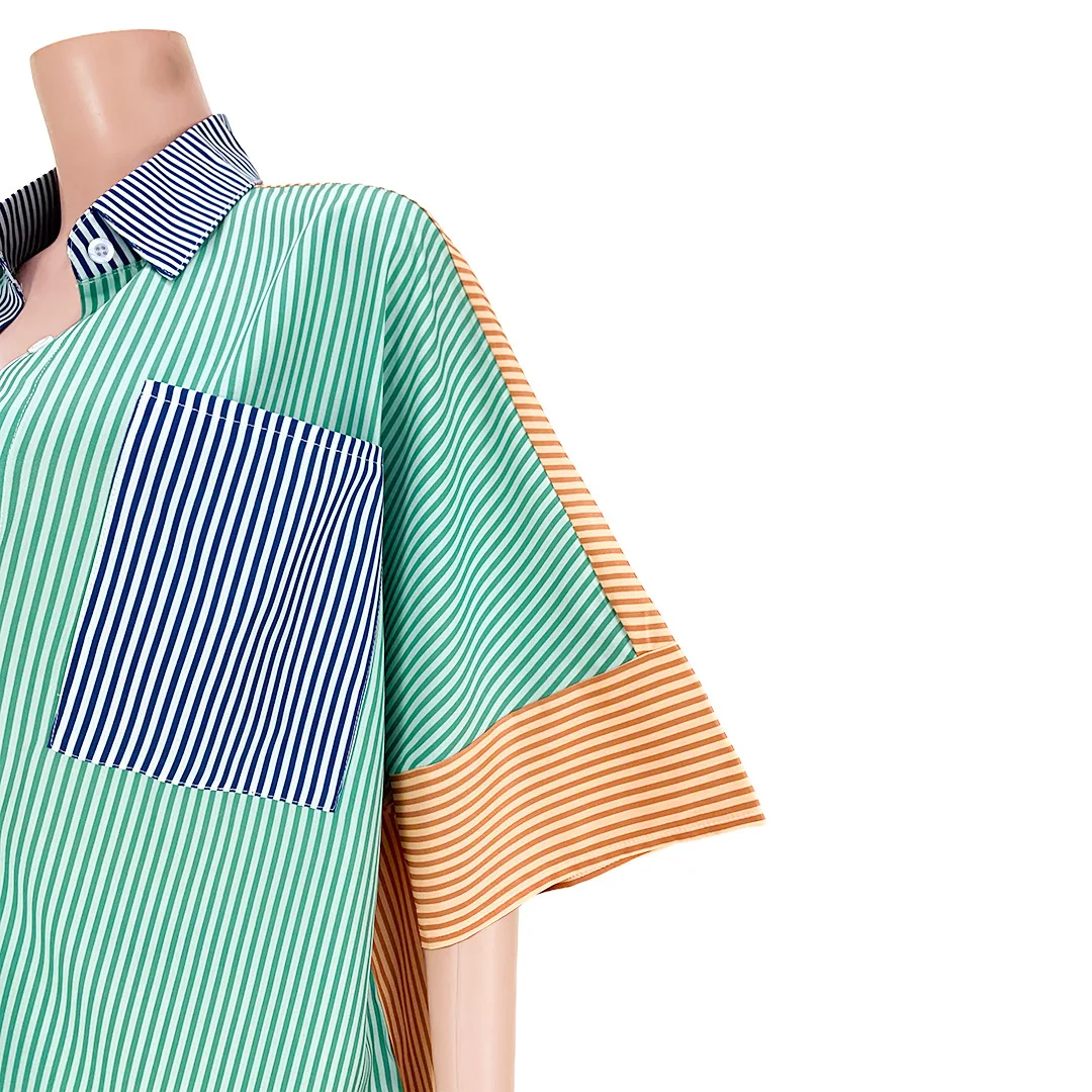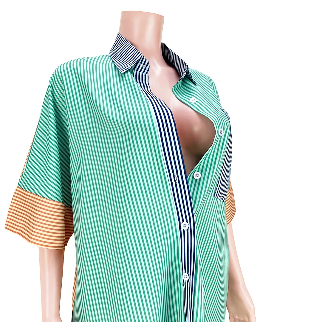 Liu Ming 2024 New Arrivals Women Casual Buttons Striped Long Sleeve T Shirt Tops Loose Blouse