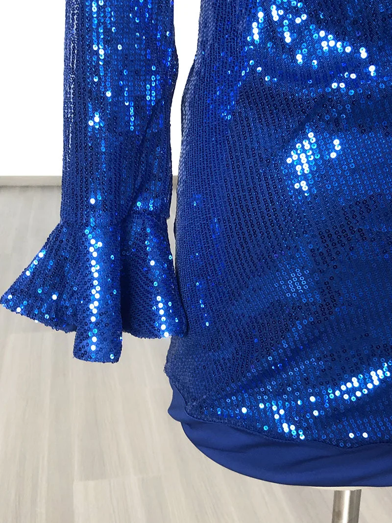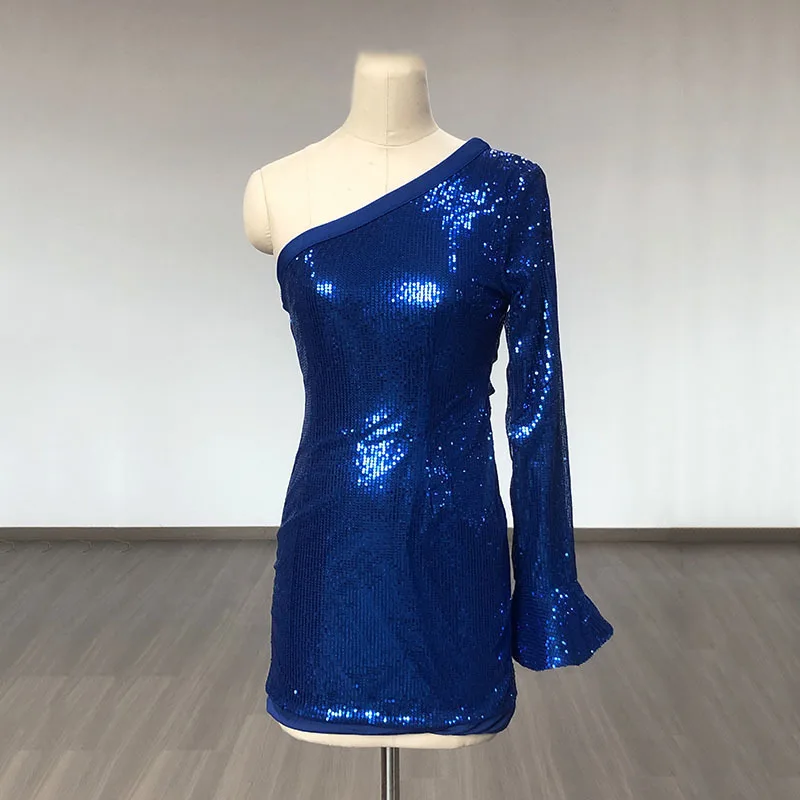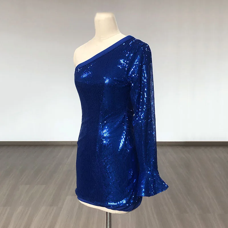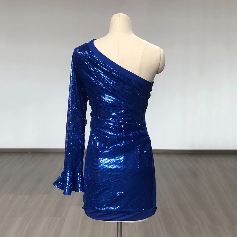 Liu Ming 2024 New Products Chic High Fashion Women Sexy Sequins One Shoulder Long Sleeve Mini Bodycon Party Dresses