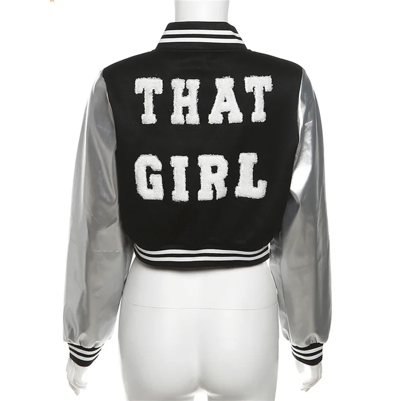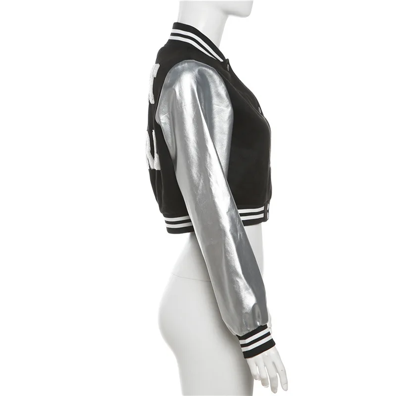 Liu Ming Autumn Winter Latest Products 2024 Fashion Women Crop Jacket Embroidery Letter Printed Button Up Baseball Coat