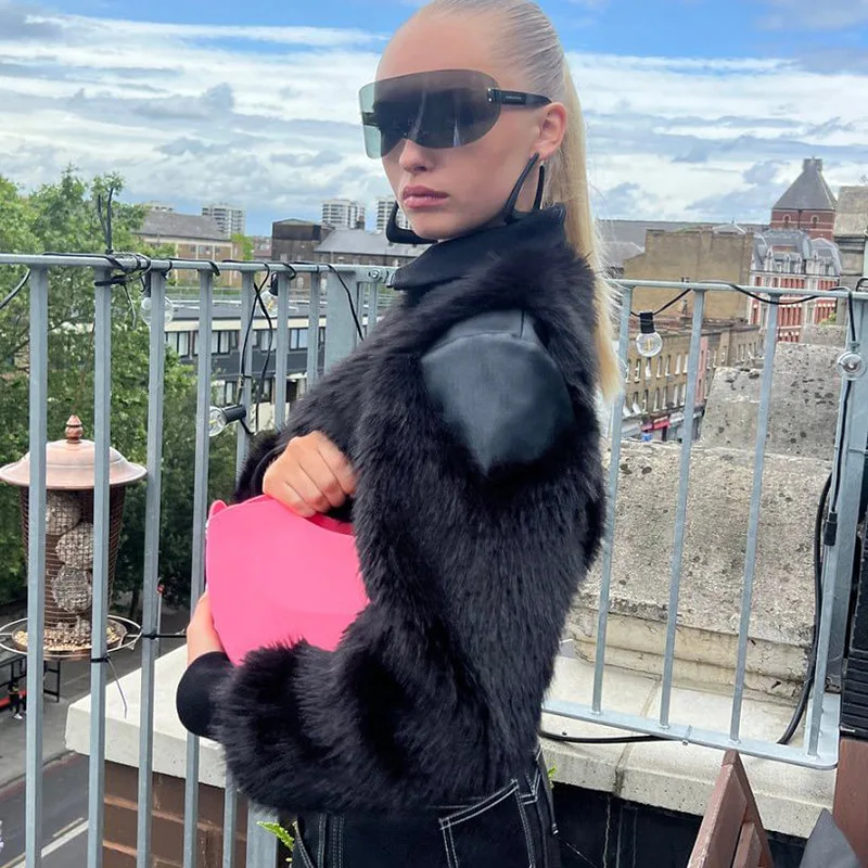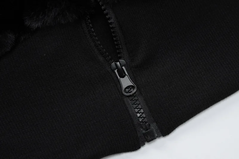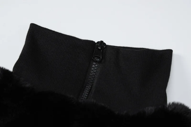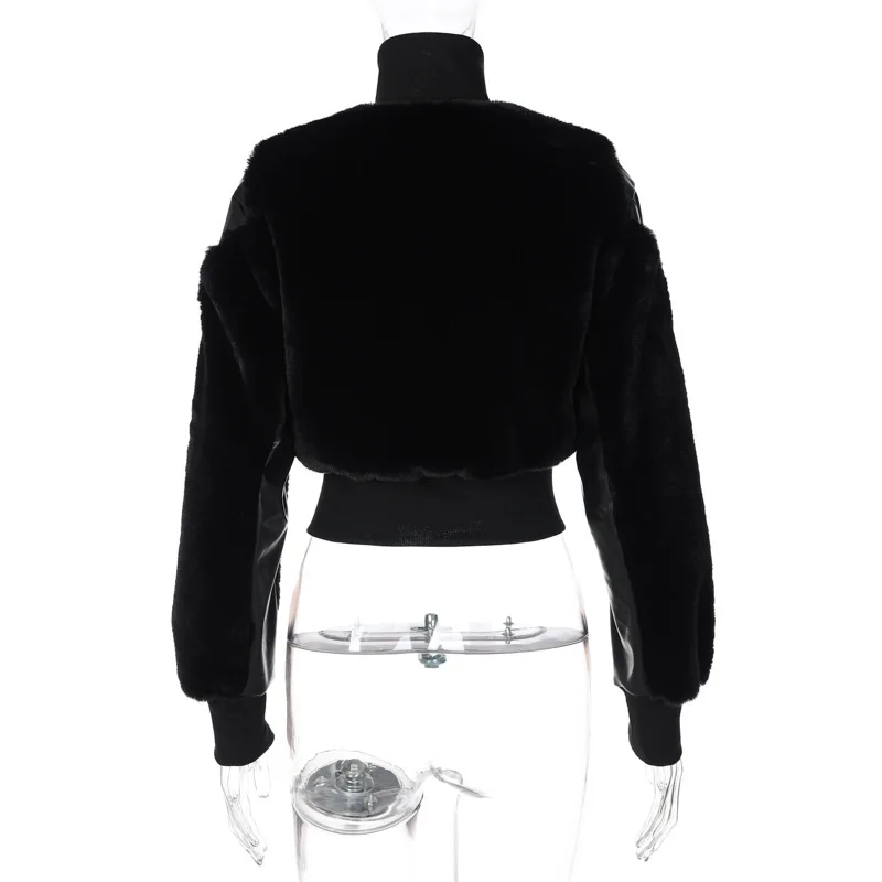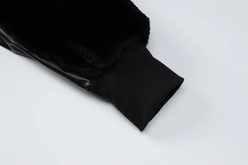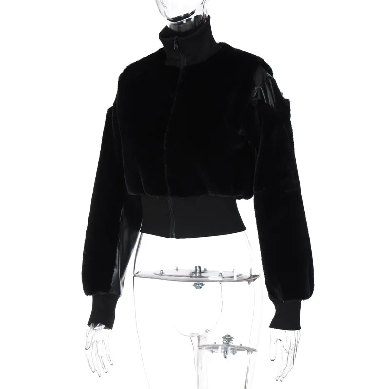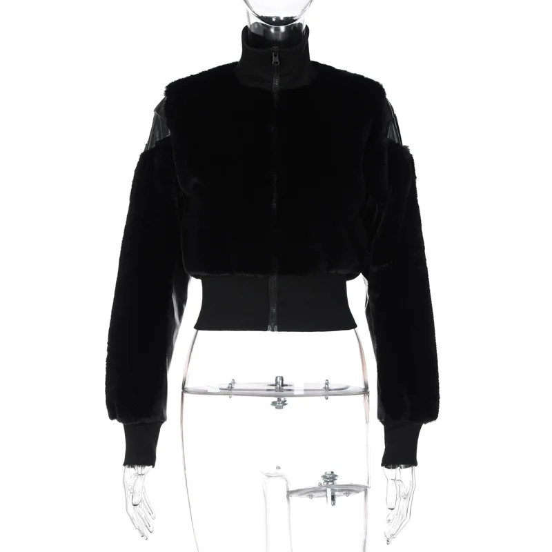 Liu Ming Autumn Winter Women Clothing 2024 Streetwear Black Turtleneck Faux Fur Long Sleeve Zip Up Warm Jacket Coat